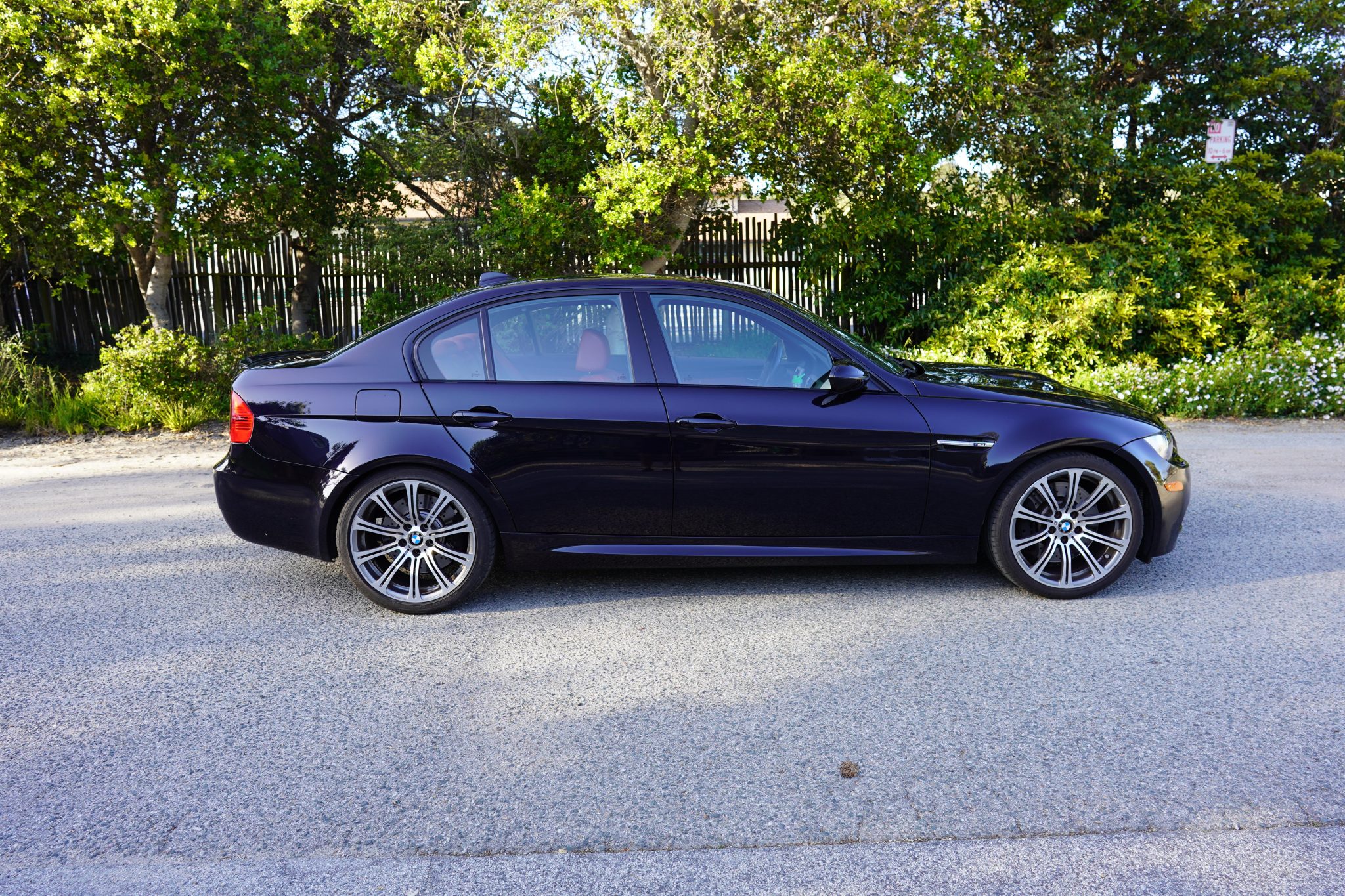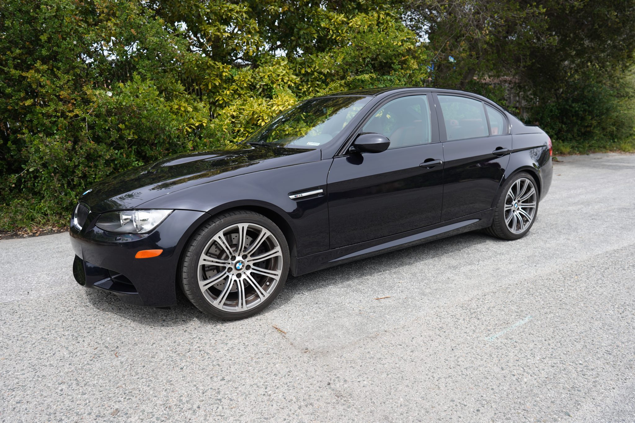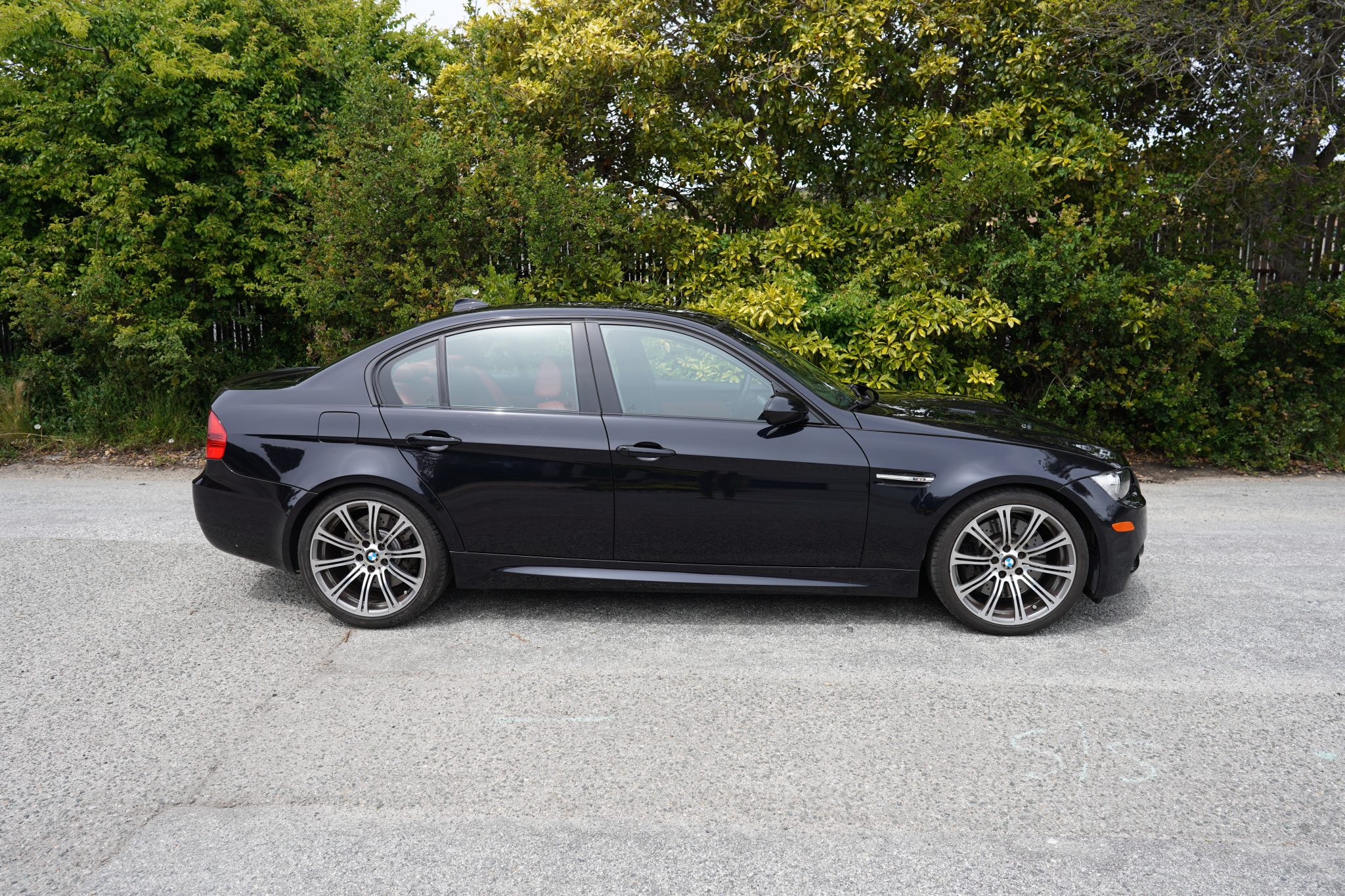 This 2008 BMW M3 sedan spent time in Michigan before the seller’s recent purchase and relocation to California, and they have since added fewer than 500 of the 30k indicated miles. It is powered by a 4.0-liter S65 V8 paired with a six-speed manual transmission and is finished in Jerez Black Metallic over Fox Red Novillo leather. Equipment includes the Premium and Technology packages as well as 19″ forged Style 220 wheels, a limited-slip differential, adaptive xenon headlights, rear parking sensors, heated front sport seats, dual-zone automatic climate control, and cruise control. This E90 M3 is now offered in California with the owner’s manual, service records, an accident-free Carfax report, and a clean Montana title in the name of the seller’s LLC. The car is finished in Jerez Black Metallic and features Shadowline trim and adaptive xenon headlights as well as rain-sensing wipers, a glass sunroof, a trunk lid spoiler, rear parking sensors, and quadruple exhaust outlets. Forged 19″ Style 220 wheels are mounted with Bridgestone Potenza S-04 Pole Position tires. A spare and tire change kit are stored in the trunk. The right-rear wheel has curb marks. The Technology Package specified Electronic Damping Control (EDC), and braking is handled by four-wheel vented and cross-drilled discs measuring 14.2″ and 13.8″ front and rear, respectively. The heated power-adjustable front sport seats are upholstered in Fox Red Novillo leather, and Brushed Aluminum Shadow trim accents the dashboard and doors. Amenities include iDrive with navigation as well as Comfort Access keyless entry, a CD stereo, dual-zone automatic climate control, and cruise control. The multi-function leather-wrapped steering wheel features tri-color stitching and frames an M-branded tachometer, a 200-mph speedometer, a central information display, and gauges for oil temperature and fuel level. The digital odometer indicates 30k miles, fewer than 500 of which were added under current ownership. The 4.0-liter S65 V8 features double-VANOS variable valve timing and was factory rated at 414 horsepower and 295 lb-ft of torque. The seller states that the throttle actuators have been replaced. Power is sent to the rear wheels through a six-speed manual transmission and a Variable M Differential Lock, the fluids for which were reportedly recently changed. The Carfax report notes no accidents or other damage and lists registration history in Michigan and Montana. A manufacturer safety recall was issued in June 2019 for the positive battery cable. The car has not passed a California emissions inspection.