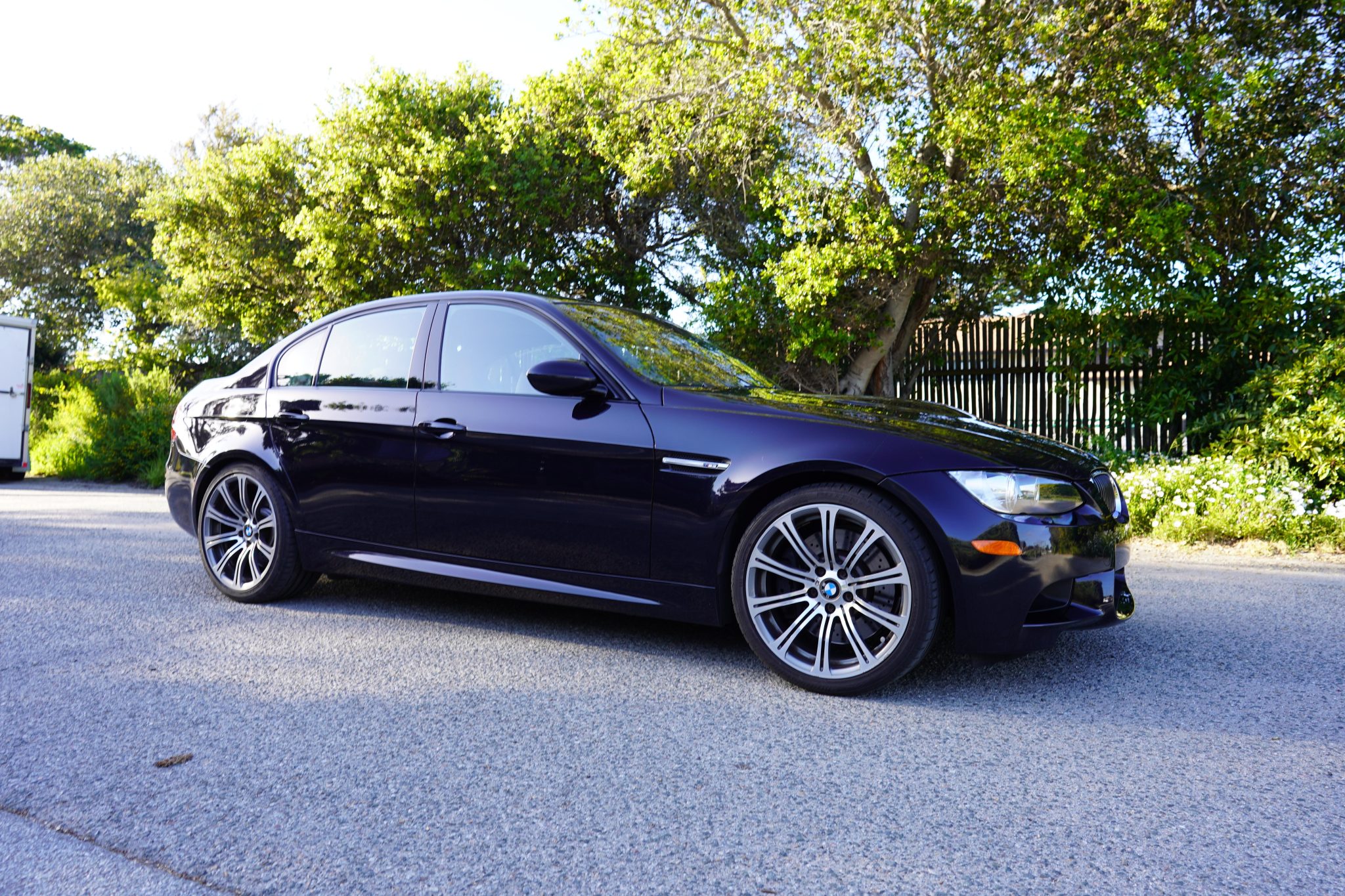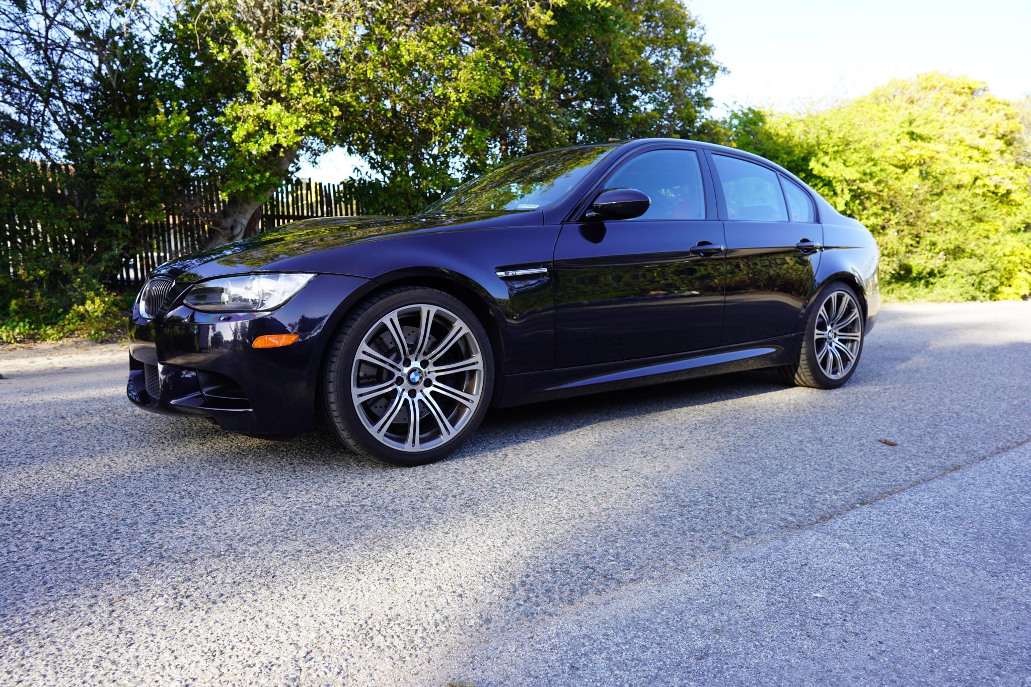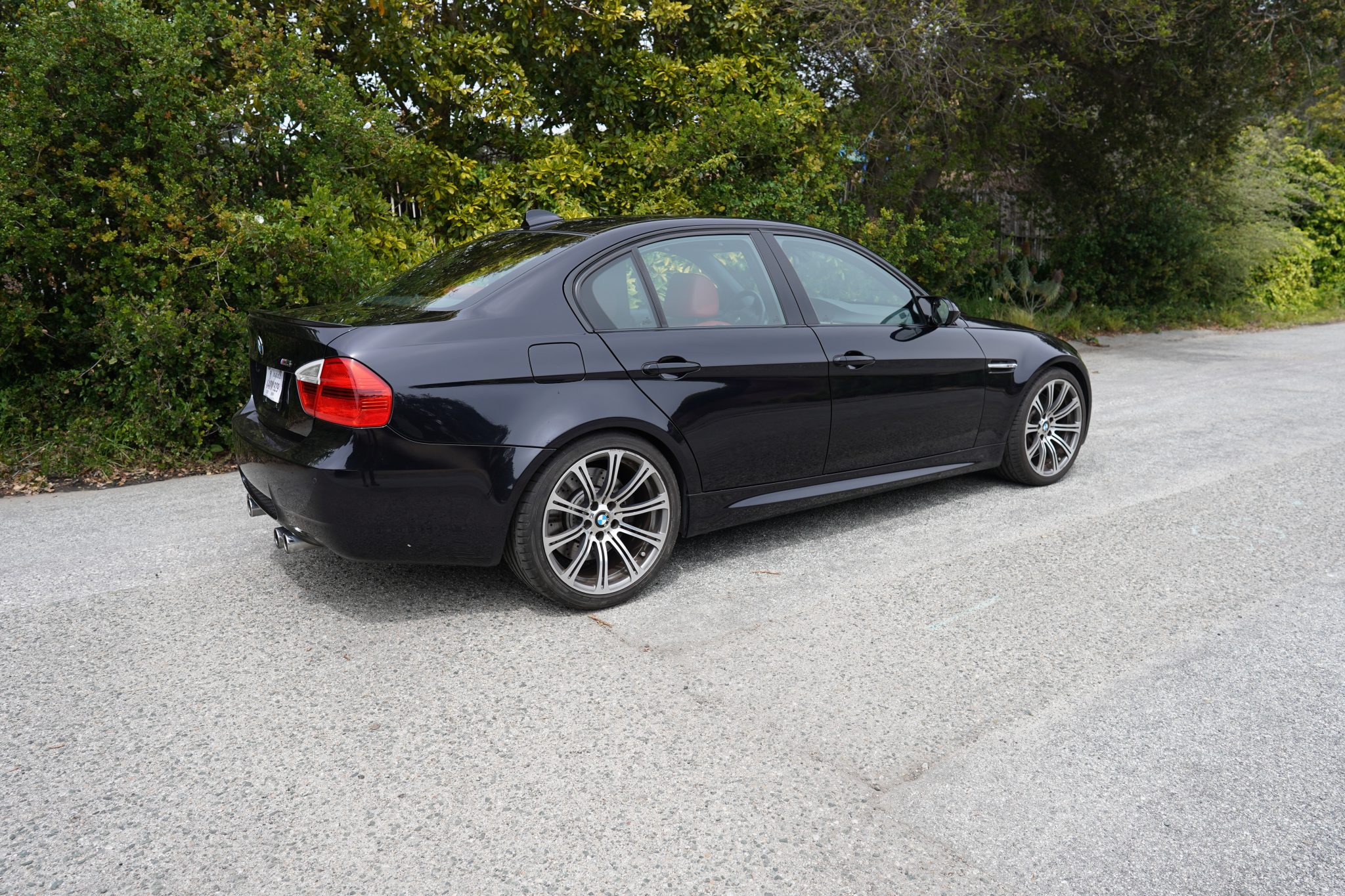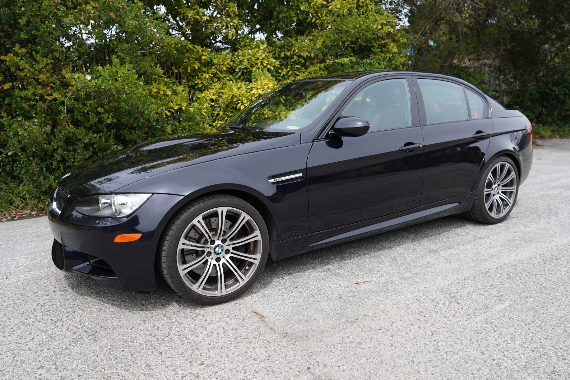 This 2008 BMW M3 sedan spent time in Michigan before the seller’s recent purchase and relocation to California, and they have since added fewer than 500 of the 30k indicated miles. It is powered by a 4.0-liter S65 V8 paired with a six-speed manual transmission and is finished in Jerez Black Metallic over Fox Red Novillo leather. Equipment includes the Premium and Technology packages as well as 19″ forged Style 220 wheels, a limited-slip differential, adaptive xenon headlights, rear parking sensors, heated front sport seats, dual-zone automatic climate control, and cruise control. This E90 M3 is now offered in California with the owner’s manual, service records, an accident-free Carfax report, and a clean Montana title in the name of the seller’s LLC. The car is finished in Jerez Black Metallic and features Shadowline trim and adaptive xenon headlights as well as rain-sensing wipers, a glass sunroof, a trunk lid spoiler, rear parking sensors, and quadruple exhaust outlets. Forged 19″ Style 220 wheels are mounted with Bridgestone Potenza S-04 Pole Position tires. A spare and tire change kit are stored in the trunk. The right-rear wheel has curb marks. The Technology Package specified Electronic Damping Control (EDC), and braking is handled by four-wheel vented and cross-drilled discs measuring 14.2″ and 13.8″ front and rear, respectively. The heated power-adjustable front sport seats are upholstered in Fox Red Novillo leather, and Brushed Aluminum Shadow trim accents the dashboard and doors. Amenities include iDrive with navigation as well as Comfort Access keyless entry, a CD stereo, dual-zone automatic climate control, and cruise control. The multi-function leather-wrapped steering wheel features tri-color stitching and frames an M-branded tachometer, a 200-mph speedometer, a central information display, and gauges for oil temperature and fuel level. The digital odometer indicates 30k miles, fewer than 500 of which were added under current ownership. The 4.0-liter S65 V8 features double-VANOS variable valve timing and was factory rated at 414 horsepower and 295 lb-ft of torque. The seller states that the throttle actuators have been replaced. Power is sent to the rear wheels through a six-speed manual transmission and a Variable M Differential Lock, the fluids for which were reportedly recently changed. The Carfax report notes no accidents or other damage and lists registration history in Michigan and Montana. A manufacturer safety recall was issued in June 2019 for the positive battery cable. The car has not passed a California emissions inspection.