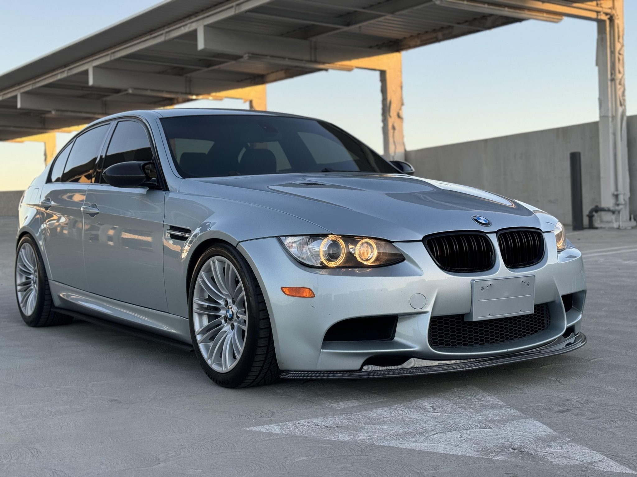 This 2008 BMW M3 sedan has remained registered in Virginia and Arizona and it has been fitted with H&R springs, carbon-fiber-look exterior accents, 15mm wheel spacers, an aFe Power intake, and an aftermarket exhaust system. It is powered by a 4.0-liter V8 paired with a six-speed manual transmission and is finished in Silverstone Metallic over Bamboo Beige Novillo leather upholstery. The car has 76k miles and is further equipped with 18″ Style 219 wheels, a limited-slip differential, xenon headlights, power-adjustable front seats, a CD stereo, dual-zone automatic climate control, and cruise control. This E90 M3 was acquired by the selling dealer in 2024 and is now offered in California with a clean Carfax report and a clean Arizona title. The car was optioned without a sunroof and is finished in Silverstone Metallic with a carbon-fiber rear diffuser along with carbon-fiber-look accents. Additional details include Shadowline trim and xenon headlights as well as rain-sensing wipers, a trunk lid spoiler, a front splitter, side skirt extensions, window tint, black kidney grilles, and quadruple exhaust outlets. Scuffs on the front bumper cover are noted by the seller, who states that the front end has been covered with protective film. The 18″ Style 219 wheels feature 15mm spacers and are mounted with Continental tires. The car features Dynamic Stability Control (DSC) and H&R lowering springs, and braking is handled by four-wheel vented and cross-drilled discs measuring 14.2″ and 13.8″ front and rear, respectively. The left-rear wheel has curb damage, and a brake fluid flush was performed and the front brake pads were replaced under current ownership. The power-adjustable front seats are upholstered in Bamboo Beige Novillo leather, and Titanium Shadow trim accents the dashboard and doors. Interior appointments include a CD stereo, dual-zone automatic climate control, aluminum pedals, carpeted floor mats, and cruise control. The multi-function leather-wrapped steering wheel features tri-color stitching and frames an M-branded tachometer, a 200-mph speedometer, a central information display, and gauges for oil temperature and fuel level. The digital odometer indicates 76k miles, approximately 3k of which were added under current ownership. The 4.0-liter S65 V8 features double-VANOS variable valve timing and has been fitted with an aFe Power intake. An oil change was performed and the differential fluid was replaced in preparation for the sale. Power is sent to the rear wheels through a six-speed manual transmission and a Variable M Differential Lock. An aftermarket exhaust system has been installed. The Carfax report is free of accidents or other reported damage. The car most recently passed a California smog test in January 2025.