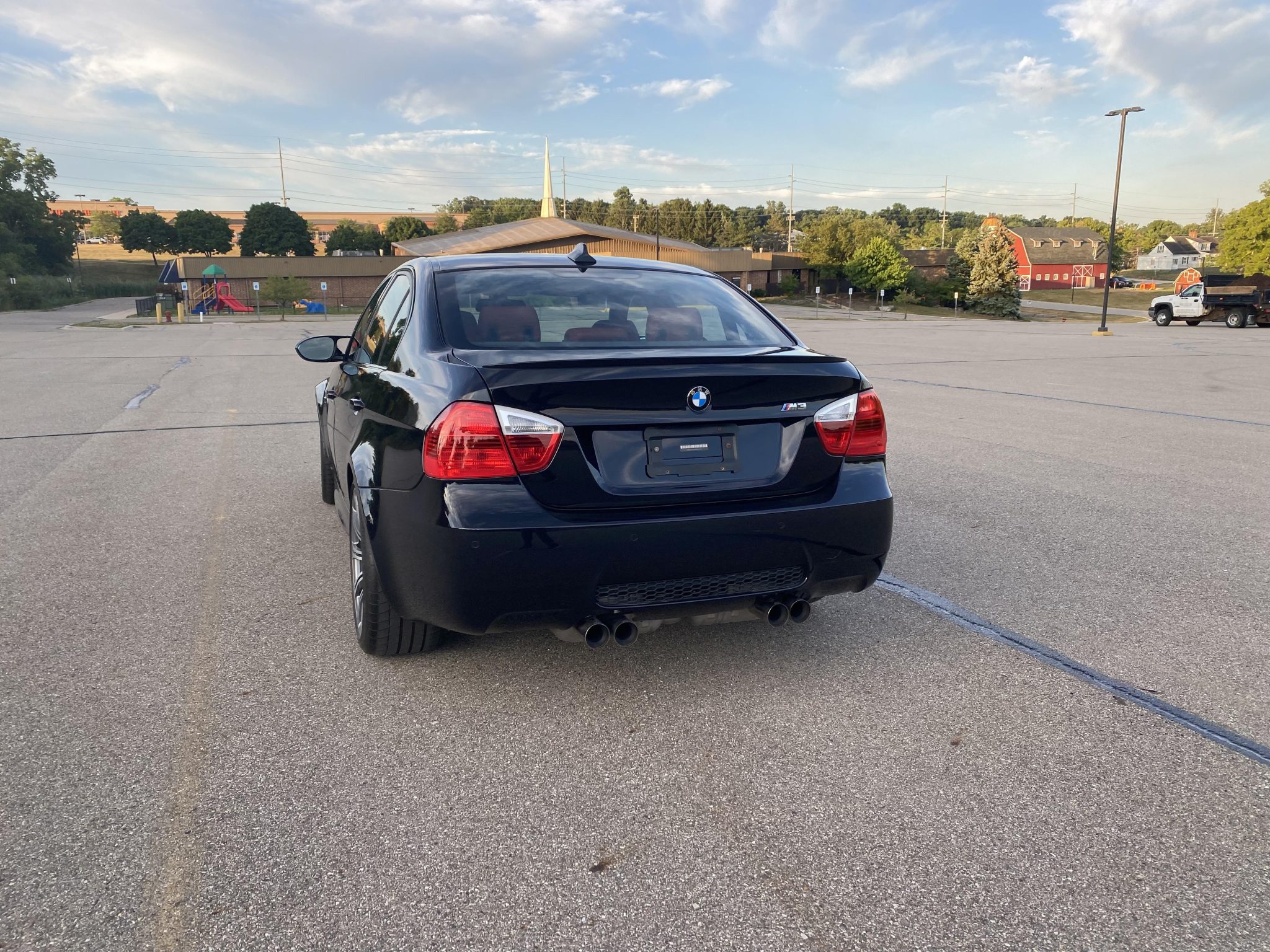 This 2008 BMW M3 sedan remained with its original owner until 2021 and was acquired by the seller on BaT in August 2022. It is finished in Jerez Black Metallic over Fox Red Novillo leather and equipped with the Cold Weather, Premium, and Technology packages along with an M Performance exhaust system, 19″ forged Style 220 wheels, a limited-slip differential, xenon headlights, rear parking sensors, Enhanced Premium Sound, heated front seats, and navigation. Power is provided by a 4.0-liter V8 paired with a six-speed manual transmission. This E90 M3 has 48k miles and is offered with a window sticker, an owner’s manual, a clean Carfax report, and a clean Massachusetts title in the seller’s name. The car is finished in Jerez Black Metallic and features Shadowline trim and adaptive xenon headlights with washers as well as a glass sunroof, a trunk lid spoiler, rain-sensing wipers, rear parking sensors, and quadruple exhaust outlets. The front markers have been blacked out. The windshield washer fluid pump was reportedly replaced in 2021. A missing piece of the front-left fender near the headlight is noted, as well as scuffs on the rear bumper cover and dings on the doors. Forged 19″ Style 220 wheels are mounted with 245/35 front and 265/35 rear Bridgestone Potenza Sport tires that the seller reports were fitted in March 2024. The car features Electronic Damping Control (EDC) and Dynamic Stability Control (DSC). Braking is handled by four-wheel vented and cross-drilled discs measuring 14.2″ and 13.8″ front and rear, respectively. 90mm wheel studs are installed. The DSC pump is said to have been replaced in 2021 and a right wheel speed sensor was replaced in preparation for the sale. The heated and power-adjustable front sport seats are upholstered in Fox Red Novillo leather, and Brushed Aluminum Shadow trim accents the dashboard and doors. Hartge pedal covers have been added, and amenities include iDrive with navigation, Enhanced Premium Sound, Comfort Access keyless entry, a CD stereo, a power rear sunshade, manual side sunshades, dual-zone automatic climate control, and cruise control. The blower motor assembly was reportedly replaced in 2022. The multi-function steering wheel features tri-color stitching and frames an M-branded tachometer, a 200-mph speedometer, a central information display, and gauges for oil temperature and fuel level. The digital odometer indicates 48k miles, approximately 14k of which were added under current ownership. The 4.0-liter S65 V8 features double-VANOS variable valve timing and was factory rated at 414 horsepower and 295 lb-ft of torque. The throttle acuators were replaced in early 2022 and an ignition coil was replaced in 2023. Power is sent to the rear wheels through a six-speed manual transmission and a Variable M Differential Lock. An M Performance exhaust system is fitted. The engine ground strap is said to have been replaced in preparation for the sale. The window sticker lists initial delivery to Preston BMW of Warren, Ohio, along with factory equipment, colors, options, and a total suggested retail price of $68,920. The Carfax report is free of accidents or other reported damage.