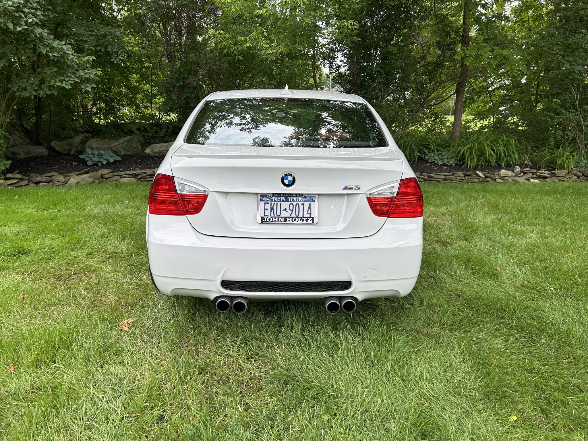 This 2008 BMW M3 sedan was purchased new by the seller from Holtz House of Vehicles in Rochester, New York, and it was optioned without iDrive or a sunroof and with the Premium Package. Powered by a 4.0-liter V8 paired with a six-speed manual transmission, the car is finished in Alpine White over Fox Red Novillo leather. Equipment includes 18″ Style 219 wheels, a limited-slip differential, xenon headlights, dual-zone automatic climate control, a BMW Professional CD stereo, and cruise control. This E90 M3 is offered with a window sticker, manufacturer’s literature, service records, a clean Carfax report, and a clean New York title in the seller’s name. The car is finished in Alpine White (300) and was optioned without a sunroof. Exterior details include Shadowline trim and adaptive xenon headlights as well as rain-sensing wipers, power-folding side mirrors, a trunk lid spoiler, and quadruple exhaust outlets. There is a ding on the right rear door and roof, rock chips and scrapes on the underside of the front bumper cover, and scratches on the rear bumper cover. Close-up photographs of the exterior finish and trim are shown in the gallery below. The 18″ Style 219 wheels are fitted with Michelin Pilot Super Sport tires that were mounted in 2023. The car features Dynamic Stability Control (DSC), and braking is handled by four-wheel vented and cross-drilled discs measuring 14.2″ and 13.8″ front and rear, respectively. The brake fluid was changed in 2022. The power-adjustable front sport seats are upholstered in Fox Red Novillo leather, and Brushed Aluminum Shadow trim accents the dashboard and doors. Amenities include BMW Assist, a BMW Professional CD stereo, dual-zone automatic climate control, and cruise control. Wear on the driver’s seat and shift knob are noted by the seller, and a Car Access System (CAS) module was replaced in 2025. The multifunction leather-wrapped steering wheel features tri-color stitching and frames an M-branded tachometer, a 200-mph speedometer, a central information display, and gauges for oil temperature and fuel level. The digital odometer indicates 81k miles, all of which were added under current ownership. The 4.0-liter S65 V8 features double-VANOS variable valve timing and was factory rated at 414 horsepower and 295 lb-ft of torque. The spark plugs and throttle actuators were replaced in 2017, the valve cover gaskets were replaced in 2022, and the starter and battery ground strap were replaced and the oil was changed in 2025. Power is sent to the rear wheels through a six-speed manual transmission and a Variable M Differential Lock. The window sticker lists initial delivery to Holtz House of Vehicles in Rochester, New York, as well as factory colors, equipment, and a Total Suggested Retail Price of $58,370. The Carfax report is free of accidents or other reported damage.