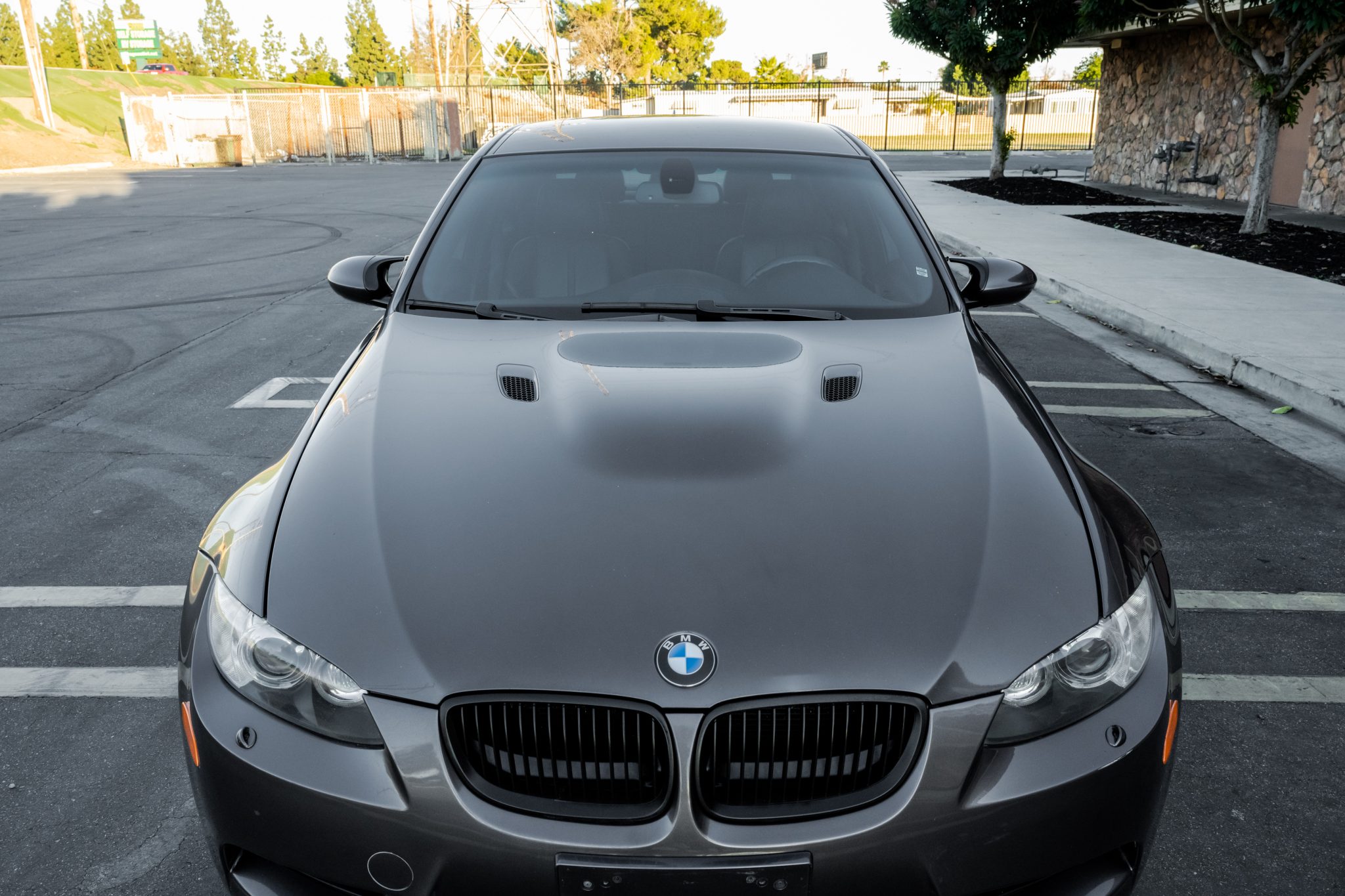 This 2008 BMW M3 sedan is powered by a 4.0-liter V8 paired with a six-speed manual transmission and is finished in Sparkling Graphite Metallic over black leather upholstery. Equipment includes the Premium and Technology packages in addition to 19″ forged Style 220 wheels, a limited-slip differential, adaptive xenon headlights, rear parking sensors, a rear spoiler, heated power-adjustable front seats, navigation, a CD stereo, dual-zone automatic climate control, and cruise control. The car spent time in multiple states prior to the selling dealer’s acquisition in 2022 and now has 98k miles. This E90 M3 is offered in California with factory literature, a clean Carfax report, and a clean Idaho title. The car is finished in Sparking Graphite Metallic and features Shadowline trim and adaptive xenon headlights as well as rain-sensing wipers, a trunk lid spoiler, rear parking sensors, and quadruple exhaust outlets. A dent is located on the hood, and scrapes are present on the underside of the front bumper cover. Forged 19″ Style 220 wheels are mounted with staggered-width Falken Azenis FK510 tires. The car features Dynamic Stability Control (DSC), and braking is handled by four-wheel vented and cross-drilled discs measuring 14.2″ and 13.8″ front and rear, respectively. Curb damage is located on the left-front wheel. The heated power-adjustable front sport seats are upholstered in black leather, and Carbon Structure Leather trim accents the dashboard and doors. Amenities include iDrive infotainment, navigation, rear sunshades, carpeted floor mats, Comfort Access keyless entry, a CD stereo, driver-seat position memory settings, a trunk-mounted aftermarket subwoofer, dual-zone automatic climate control, and cruise control. Wear is visible on the front seats. The multi-function leather-wrapped steering wheel features tri-color stitching and frames an M-branded tachometer, a 200-mph speedometer, a central information display, and gauges for oil temperature and fuel level. The digital odometer indicates 98k miles. Wear is visible on the steering wheel. The 4.0-liter S65 V8 features double-VANOS variable valve timing and was factory rated at 414 horsepower and 295 lb-ft of torque. The car passed an emissions inspection in February 2022. Power is sent to the rear wheels through a six-speed manual transmission and a Variable M Differential Lock. Additional photos of the underside are provided in the gallery below. The Carfax report shows no accidents or other damage and lists history in Washington, Montana, Idaho, and California.