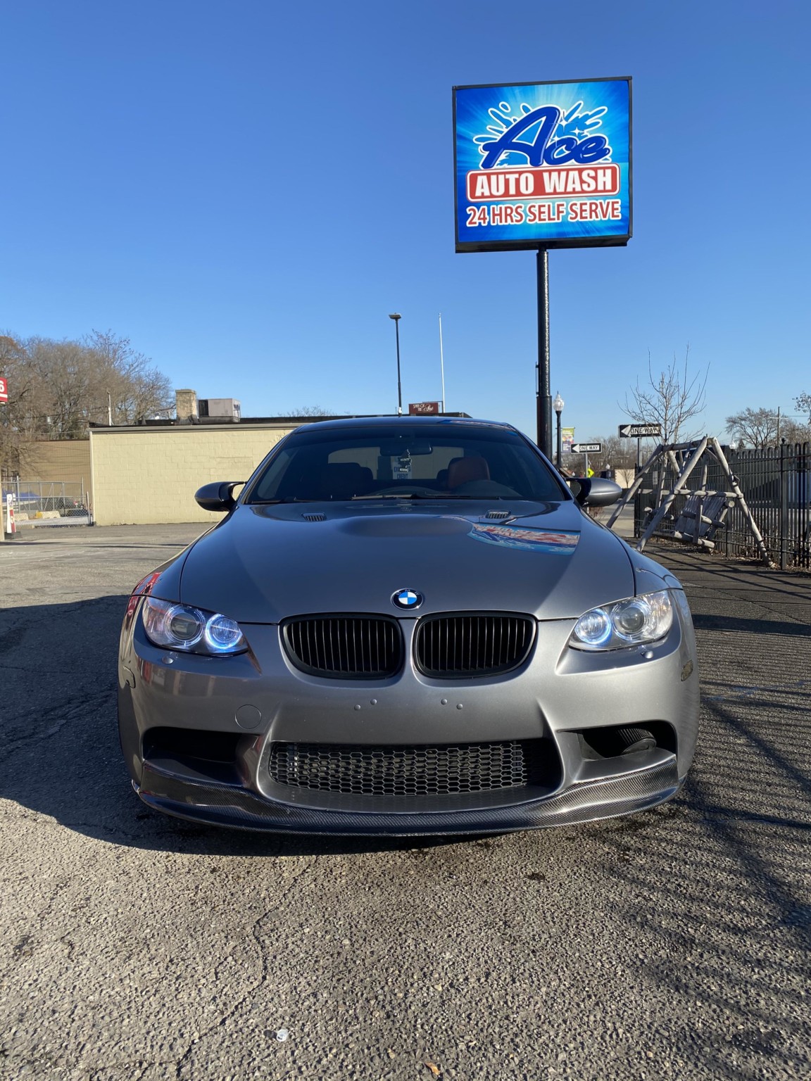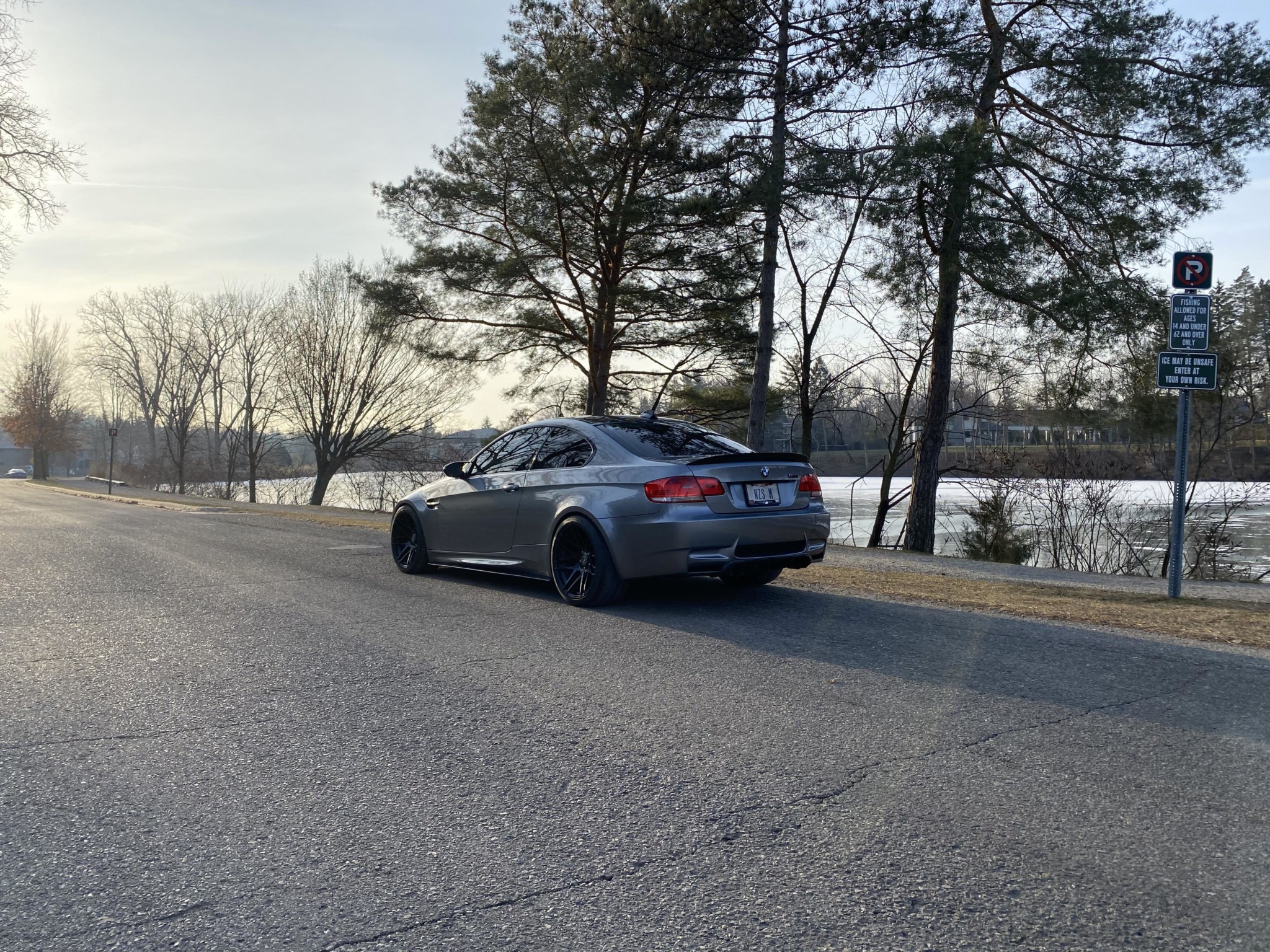 This 2008 BMW M3 is powered by a 4.0-liter V8 which has been modified with an ESS VT2-625 supercharger and is mated to a six-speed manual transmission. The car is finished in gray over red leather and equipped with the Premium, Technology, and Cold Weather packages as well as rain-sensing windshield wipers and satellite radio. Additional modifications consist of a Megan Racing exhaust system, Forgestar wheels, carbon fiber aero pieces, black kidney grilles, and more. Service since the seller’s acquisition in 2015 included replacement of the connecting rod bearings in 2016 and the throttle actuators, water pump, thermostat, and temperature sensors in May 2019. This E92 M3 shows 69k miles and is offered with a window sticker, manufacturer’s literature, a clean Carfax report, and a clean Ohio title in the seller’s mother’s name. The Space Gray Metallic (A52) finish is accented by a factory carbon fiber roof, and additional carbon fiber trim installed under current ownership includes a front lip, rear spoiler, diffuser, and side skirts. Black kidney grilles and M3 badges have also been added along with Lux Angel running lights featuring adjustable white color temperature. Forgestar F14 wheels measuring 19″x9.5″ front and 19″x11″ rear are wrapped in Bridgestone and Michelin tires, with the latter said to have been replaced within the past 3k miles. New brake pads were reportedly installed at 55k, and replacement tire pressure monitoring sensors were fitted in the past 500 miles. The cabin is upholstered in Fox Red extended Novillo leather with a two-tone dashboard and door panels, while the floors are trimmed with charcoal carpets. The car is equipped with the Cold Weather, Premium, and Technology packages which include power-adjustable and heated front seats with adjustable side bolsters, carbon leather interior trim, Comfort Access keyless entry and engine starting, navigation, and satellite radio. Motorpsort-branded instrumentation consists of a 200-mph speedometer, a tachometer with a variable redline, and gauges for fuel level and oil temperature. The digital odometer shows 69k miles, of which approximately 21k have been added by the seller. The 4.0-liter V8 has been modified with a ESS VT2-625 supercharger featuring a 94mm pulley, an ECU tune that reportedly allows for increased boost of approximately eight pounds, and a Megan Racing exhaust system. Treated BE connecting rod bearings were installed in 2016, and replacement throttle actuators are said to have been fitted at 68k miles. Additional service included transmission and differential fluid changes at 55k as well as installation of a new water pump, thermostat, temperature sensors, and coolant in May 2019. A factory campaign to replace the battery terminals was reportedly completed at 68k along with installation of a replacement battery. Oil changes are said to have been performed every 5k miles under current ownership, with the most recent at 64k. Power is sent to the rear wheels through a six-speed manual transmission and a variable locking M differential. The window sticker shows an original MSRP of $67,845 including just over $11k in options. The December 2019 Carfax report shows no accidents or other damage and lists history in New Jersey, Delaware, Ohio, and Michigan. An exhaust note video can be viewed below. https://youtu.be/srrUwsgivSE