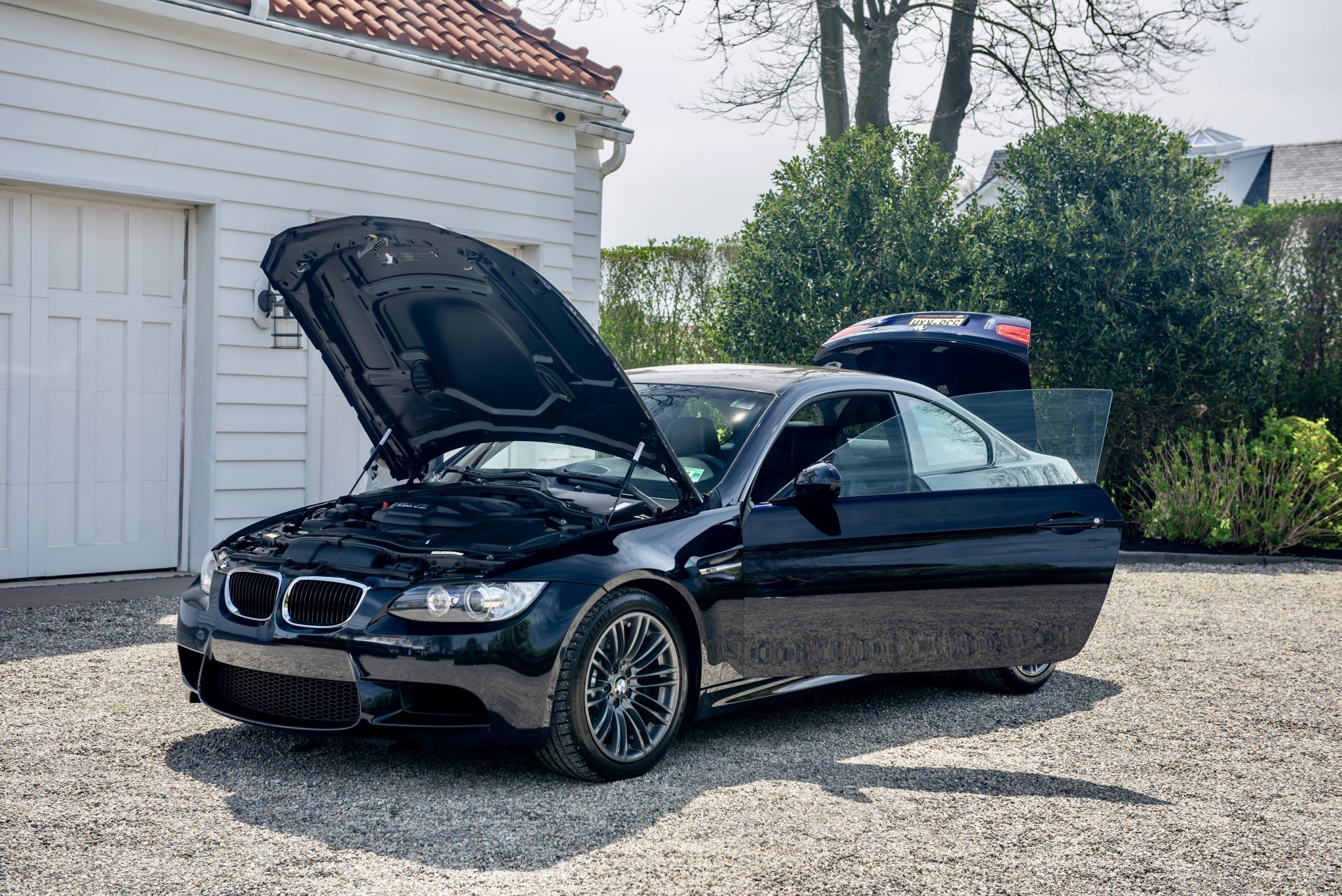 This 2008 BMW M3 coupe was purchased new by the current owner and now has 46k miles following history in New Jersey. Finished in Jerez Black Metallic over Black Novillo leather, the car is powered by a 4.0-liter S65 V8 paired with a six-speed manual transmission. Equipment includes an M Performance exhaust, a European-style front bumper cover, a carbon-fiber roof panel, 18″ Style 219 wheels, adaptive xenon headlights, heated front sport seats, and iDrive with navigation. Work in March 2025 included replacing the rod bearings and bolts as well as the thermostat, oil level sensor, and coolant temperature sensor. This E92 M3 is now offered by the seller on behalf of the current owner at no reserve with the owner’s manual, service records, the removed factory exhaust and bumper, a clean Carfax report, and a clean New Jersey title in the owner’s name. The car is finished in Jerez Black Metallic (A73) with Shadowline trim, and a European-style front bumper cover was installed in 2019. Other exterior details comprise a carbon-fiber roof panel, adaptive xenon headlights, a trunk lid spoiler, rear parking sensors, and auto-dimming mirrors. The 18″ Style 219 wheels are mounted with Michelin Pilot Sport 4S tires. Braking is handled by four-wheel vented and cross-drilled discs measuring 14.2″ and 13.8″ front and rear, respectively. The heated power-adjustable front sport seats are upholstered in Black Novillo leather, and Titanium Shadow trim accents the dashboard and doors. Amenities include iDrive with navigation as well as dual-zone automatic climate control and cruise control. The leather-wrapped steering wheel features tri-color stitching and frames an M-branded tachometer, a 200-mph speedometer, a central information display, and auxiliary gauges. The digital odometer indicates 46k miles. The 4.0-liter S65 V8 features double-VANOS variable valve timing and was factory rated at 414 horsepower and 295 lb-ft of torque. The connecting rod bearings and bolts were replaced in March 2025 along with the oil level sensor, thermostat, and coolant temperature sensor. Power is sent to the rear wheels through a six-speed manual transmission and a Variable M Differential Lock. An M Performance exhaust system is installed. The removed factory exhaust and front bumper cover are included with the car. The Carfax report is free of accidents or other reported damage.