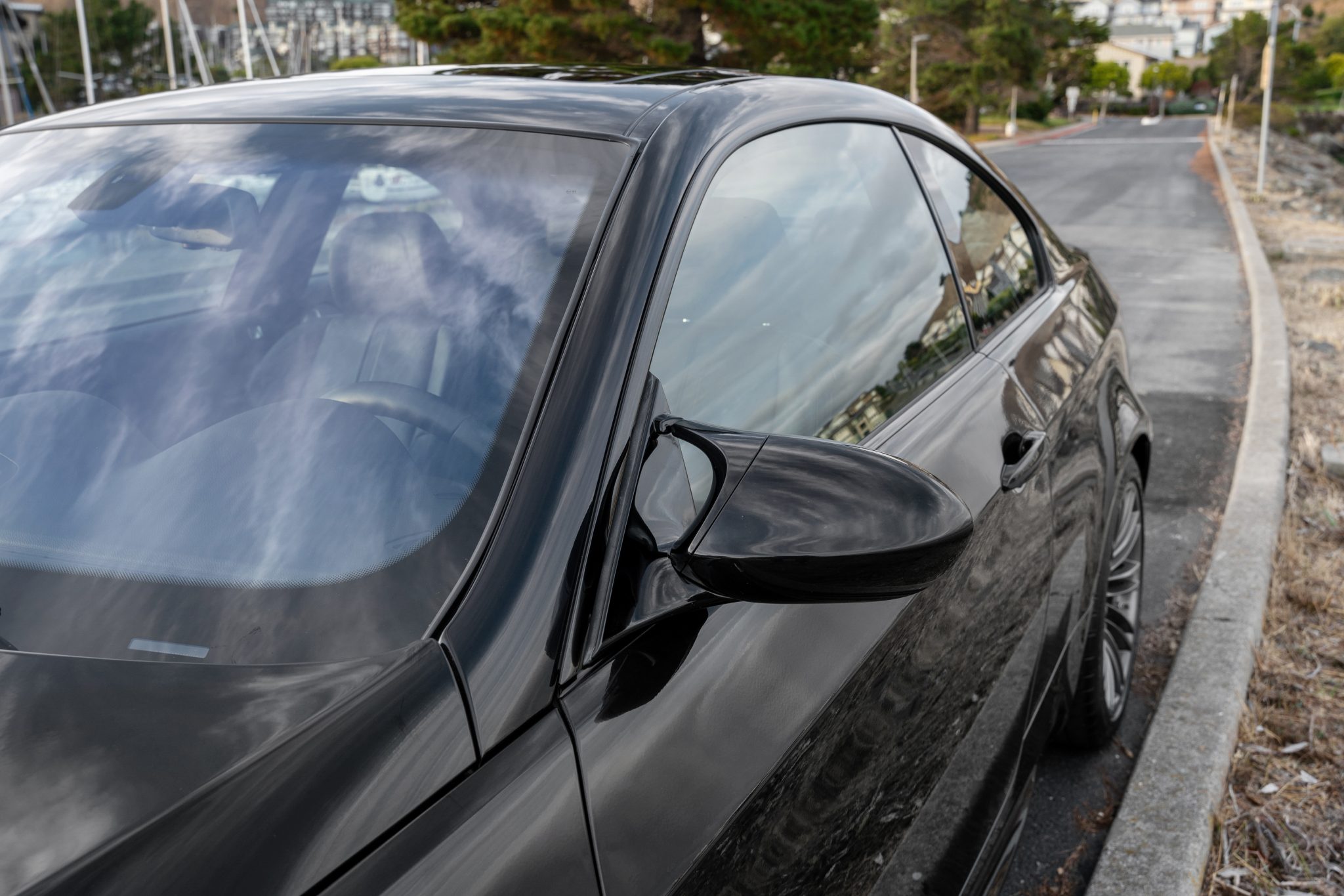 This 2008 BMW M3 coupe has been registered in California since new and was purchased by the seller in October 2012. Powered by a 4.0-liter V8 paired with a six-speed manual transmission, it is finished in Jerez Black Metallic over black Novillo leather upholstery. The car was optioned with the Premium and Technology packages and is equipped with 18″ Style 260M wheels, a limited-slip differential, Electronic Damping Control, xenon headlights, heated front seats, navigation, dual-zone automatic climate control, a factory CD stereo, optional Enhanced Premium Sound, and a powered rear sunshade. An oil change and brake-fluid flush were carried out in June 2022, and the seller states that the throttle-actuator bearings were replaced in March 2023. This E92 M3 has 74k miles and is now offered with a window sticker, owner’s manuals, a clean Carfax report, and a clean California title in the seller’s name. The car is finished in Jerez Black Metallic with Shadowline trim and is equipped with adaptive xenon headlights, power-folding mirrors, rain-sensing wipers, a powered glass sunroof, a trunk lid spoiler, and quadruple exhaust outlets. Photos showing chipped paint on the front of the car are provided in the gallery below. Satin-Chrome-finished 18″ Style 260M wheels are mounted with a mixed set of Michelin Pilot Super Sport and Pilot Sport 4 S tires. The car features Dynamic Stability Control (DSC), and braking is handled by four-wheel vented and cross-drilled discs measuring 14.2″ and 13.8″ front and rear, respectively. The brake fluid was flushed in June 2022, and scrapes on two of the wheels can be viewed in the gallery. The heated power-adjustable front sport seats as well as the two-place split-folding rear bench are upholstered in Black Novillo leather, and Carbon Structure Leather trim accents the dashboard and door panels. Additional appointments include iDrive with navigation as well as Comfort Access keyless entry, a CD stereo, the Enhanced Premium Sound system, dual-zone automatic climate control, cruise control, and a powered rear sunshade. One of the rear-seat LATCH-anchor covers is missing, and wear on the front-seat bolsters is shown in the gallery. The multi-function leather-wrapped steering wheel features tri-color stitching and frames an M-branded 9k-rpm tachometer, a 200-mph speedometer, a central information display, and gauges for oil temperature and fuel level. The digital odometer indicates 74k miles, approximately 40k of which were added under current ownership. Wear on the steering-wheel trim is depicted in the gallery. The 4.0-liter S65 V8 features double-VANOS variable valve timing and was factory rated at 414 horsepower and 295 lb-ft of torque. Records indicate the oil was most recently changed in June 2022, and the seller states that the throttle-actuator bearings were replaced in March 2023. Power is sent to the rear wheels through a six-speed manual transmission and a Variable M Differential Lock. The window sticker lists initial delivery to BMW Concord in California, factory colors and equipment, and a total suggested retail price of $67,350. The Carfax report indicates no accidents or other damage and lists history in California since new.