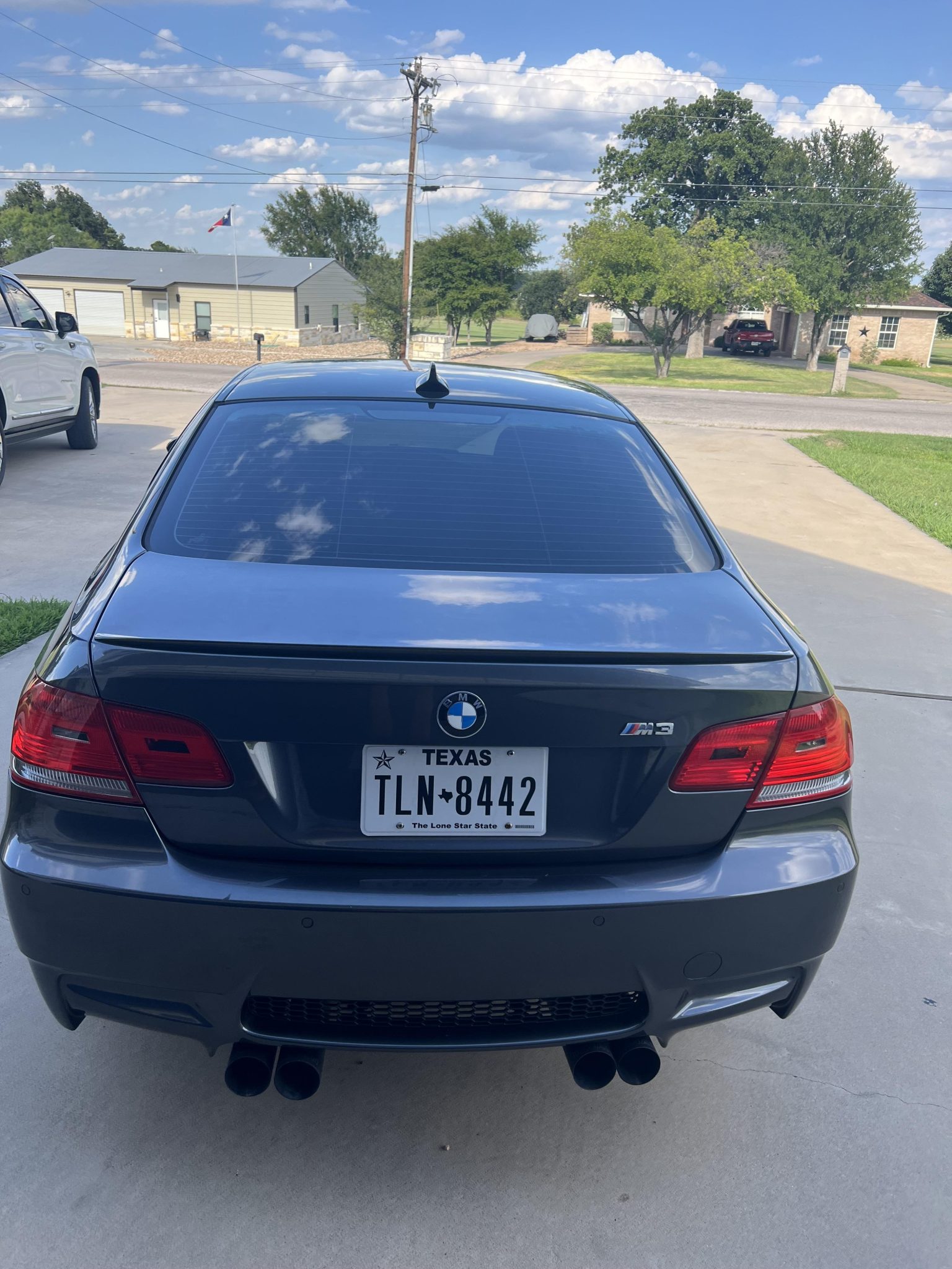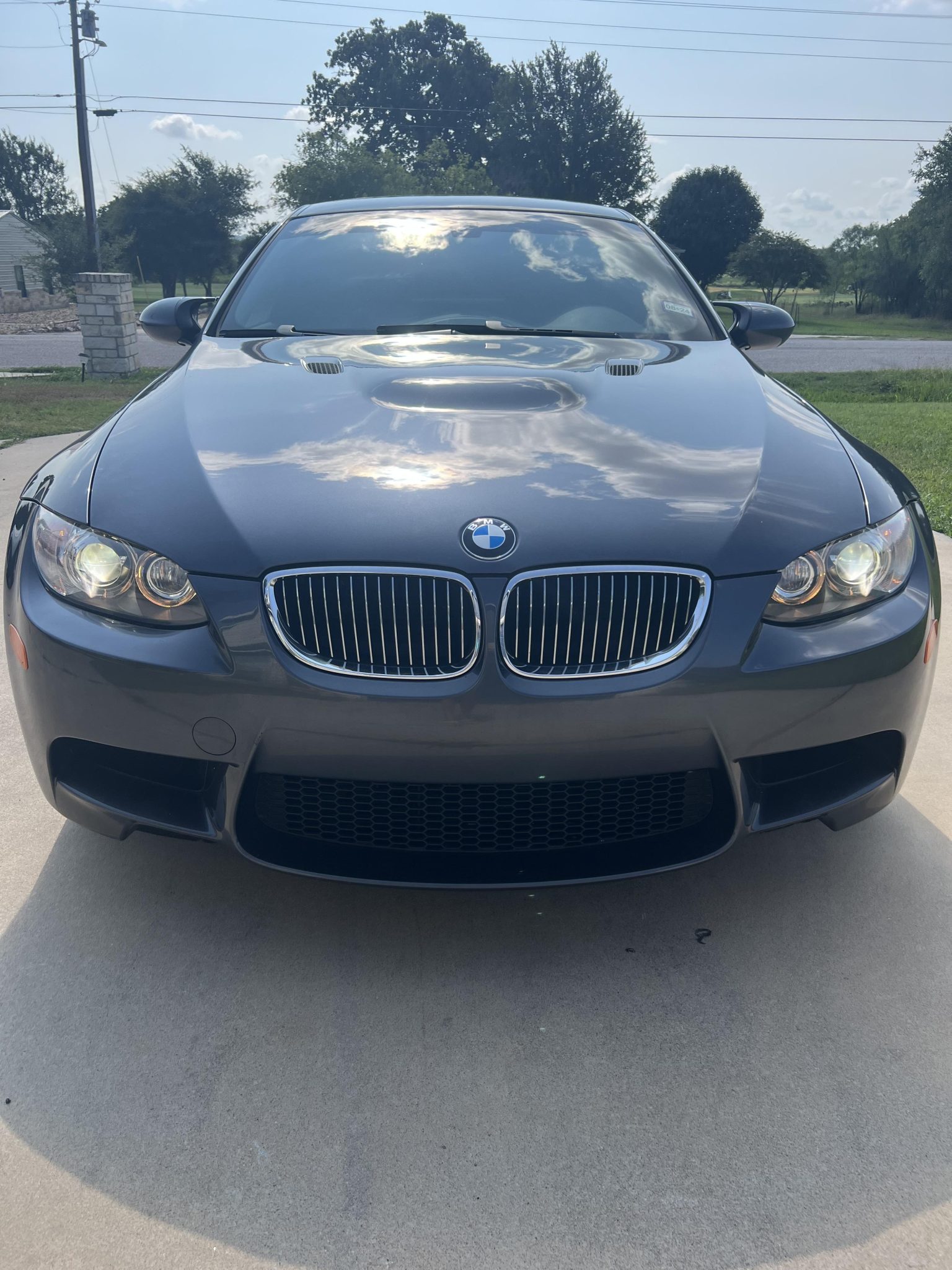 This 2008 BMW M3 coupe was ordered and purchased new by the seller’s spouse and now has under 16k miles following history in Texas. Finished in Sparkling Graphite Metallic over Palladium Silver Novillo leather, the car is powered by a 4.0-liter S65 V8 linked with a seven-speed dual-clutch transmission and a limited-slip differential. Equipment includes the Premium and Technology packages as well as a carbon-fiber roof panel, Electronic Damping Control, 19″ forged Style 220 wheels, adaptive xenon headlights, rear parking sensors, heated power-adjustable front sport seats, iDrive with navigation, and Dinan intake and exhaust systems. This E92 M3 is now offered with manufacturer’s literature, a clean Carfax report, and a clean Texas title in the seller’s name. The car is finished in Sparkling Graphite Metallic and features Shadowline trim and adaptive xenon headlights as well as a carbon-fiber roof panel, rain-sensing wipers, a trunk lid spoiler, rear parking sensors, and quadruple exhaust outlets. The seller notes stone chips on the hood. Forged 19″ Style 220 wheels are mounted with Michelin tires. The car was ordered with Electronic Damping Control (EDC), M Drive, and Dynamic Stability Control (DSC), and braking is handled by four-wheel vented and cross-drilled discs measuring 14.2″ and 13.8″ front and rear, respectively. The heated power-adjustable front sport seats are upholstered in Palladium Silver Novillo leather, and Carbon Structure Leather trim accents the dashboard and doors. Amenities include Comfort Access keyless entry, dual-zone automatic climate control, and iDrive with navigation. The multi-function leather-wrapped steering wheel features paddle shifters along with tri-color stitching and frames an M-branded tachometer, a 200-mph speedometer, a central information display, and gauges for oil temperature and fuel level. The digital odometer indicates 16k miles. The Carfax report has a mileage recording in November 2023 that is higher than what is currently shown on the odometer. The 4.0-liter S65 V8 features double-VANOS variable valve timing and was factory rated at 414 horsepower and 295 lb-ft of torque. A Dinan air-intake system is installed, and the seller notes that the hood struts are in need of replacement. Power is sent to the rear wheels through a seven-speed M-DCT dual-clutch transmission and a Variable M Differential Lock. A Dinan exhaust system is installed. The Carfax report is free of accidents or other reported damage and notes the aforementioned higher mileage recording.