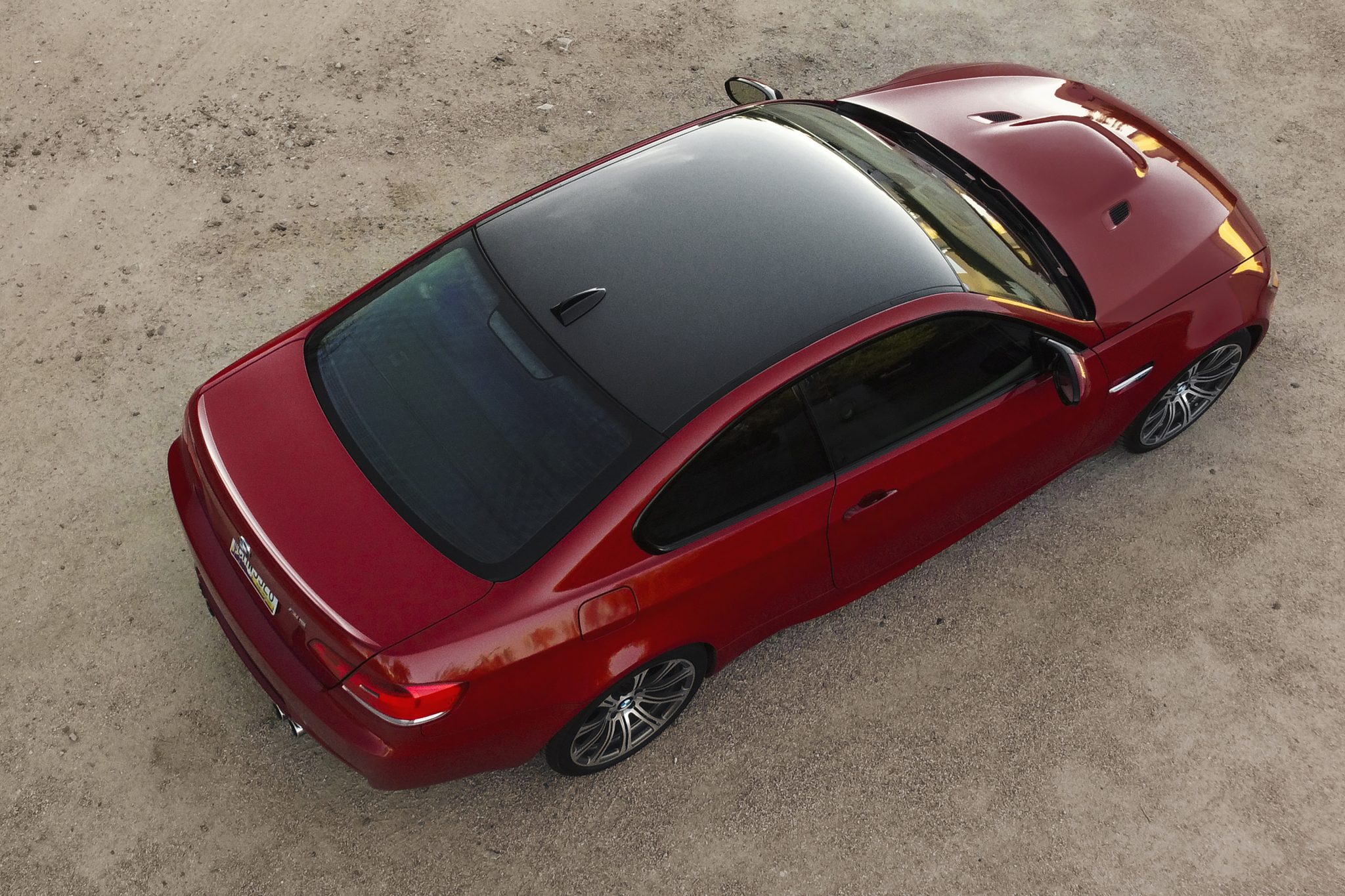 This 2008 BMW M3 coupe is finished in Melbourne Red Metallic over black Novillo leather and is powered by a 4.0-liter V8 paired with a seven-speed dual-clutch transmission. Options include 19″ wheels, a powered rear sunshade, enhanced premium sound, heated front seats, Park Distance Control, and the Premium and Technology packages. The car was first delivered to BMW Northwest in Tacoma, Washington, and resided with two owners before it was recently acquired by the selling dealer. It now has 11k miles, and recent service included an oil and filter change. This E92 M3 is now offered with service records, factory manuals, its window sticker, a clean Carfax report, and a clean Arizona title. The M3-specific bodywork is finished in Melbourne Red Metallic (A75), and features adaptive xenon headlights, a carbon-enforced roof panel, rain-sensing windshield wipers, power-folding mirrors, high-gloss Shadowline window trim, a rear lip spoiler, and rear parking sensors. Optional 19″ Style 220 wheels are mounted with Michelin Pilot Sport A/S 3+ tires measuring 245/35 up front and 265/35 in the rear. Electronic Damper Control (EDC) was standard equipment on the M3, along with cross-drilled brake rotors that measure 14.2″ up front and 13.8″ in the rear. The interior is finished in black Novillo leather on the seating surfaces with Sycamore Anthracite accents on the dashboard and door panels. Factory equipment includes front heated and power-adjustable seats, Enhanced Premium Sound with HD radio, navigation, a powered rear sunshade, and Comfort Access. The leather-wrapped steering wheel frames a 200-mph speedometer, 9k-rpm tachometer, and gauges for oil temperature and fuel level. The digital odometer shows 11k miles. The 4.0-liter S65 V8 produced 414 horsepower and 295 lb-ft of torque when new, which is sent to the rear wheels through a Getrag seven-speed dual-clutch transmission and a Variable M Differential Lock. In December 2020, Ultimate Auto Works of Scottsdale, Arizona performed an oil change and an inspection. Manufacturer’s literature is included in the sale, along with service records, accessories, and a car cover. The window sticker lists original delivery to BMW Northwest of Tacoma, Washington, colors and equipment, and a total price of $72,770. The Carfax report shows no accidents or other damage and displays history in Washington, South Dakota, and Arizona. A walk-around and driving video is provided below.