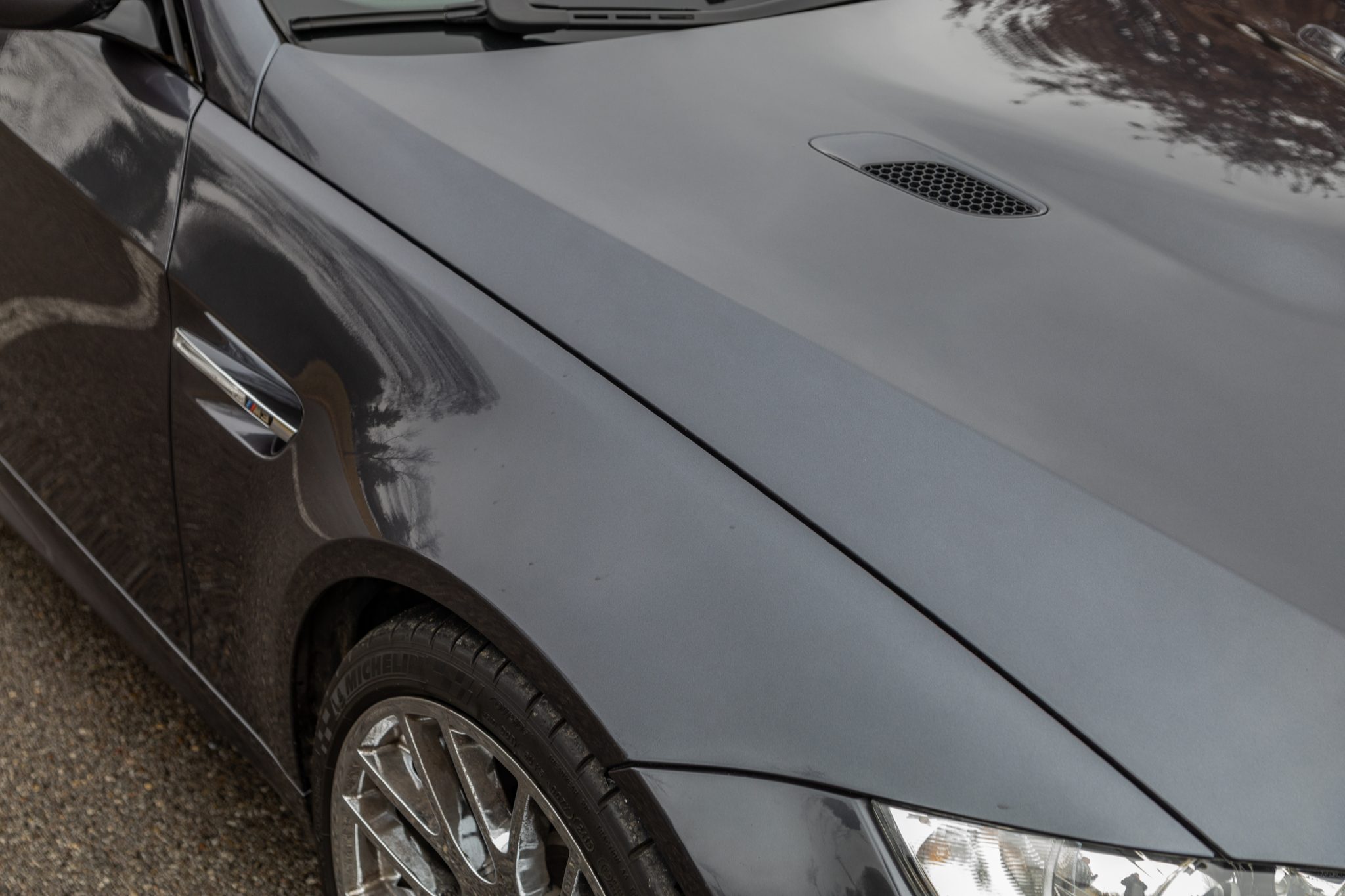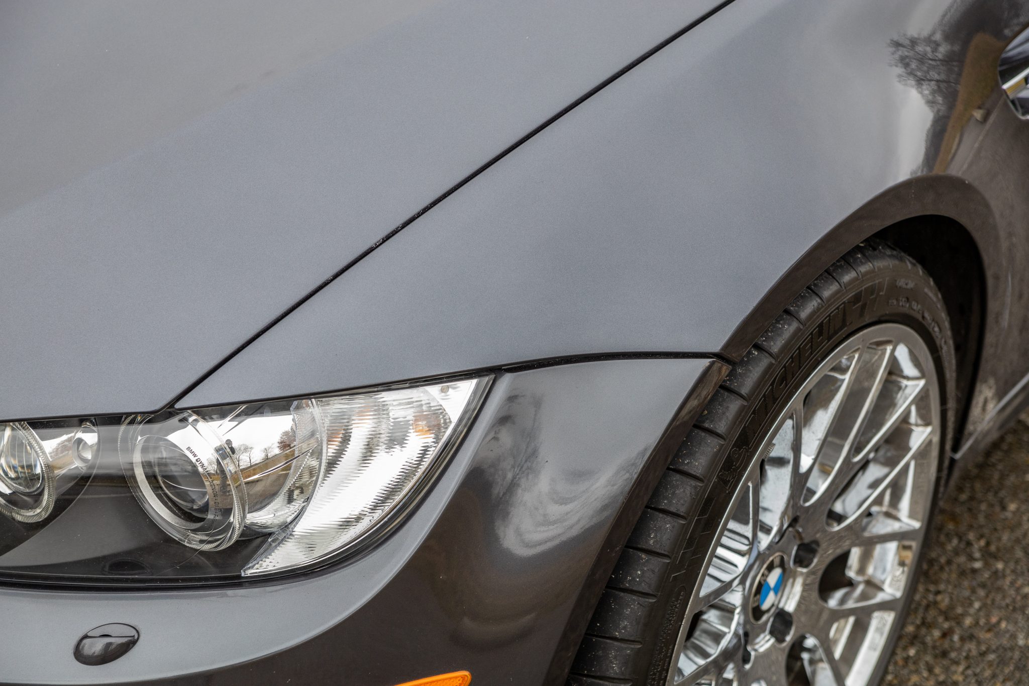 This 2008 BMW M3 coupe was purchased new by the seller who has since added all of the 40k indicated miles. The car is powered by a 4.0-liter S65 V8 paired with a six-speed manual transmission and is finished in Sparkling Graphite Metallic over Palladium Novillo leather. Equipment includes the Cold Weather and Technology packages as well as 19″ Beyern Spartan wheels, a rearview camera, a limited-slip differential, xenon headlights, heated power-adjustable front sport seats, a carbon-fiber roof panel, cruise control, and iDrive with navigation. This E92 M3 is now offered with a clean Carfax report and a clean Ohio title in the seller’s name. The car is finished in Sparkling Graphite Metallic and features Shadowline trim and adaptive xenon headlights as well as rain-sensing wipers, a carbon-fiber roof panel, a trunk lid spoiler, and quadruple exhaust outlets. The seller notes that a dent in a rear quarter panel was repaired and repainted approximately ten years ago. Blemishes are depicted in the photo gallery below. Chrome-finished 19″ Beyern Spartan wheels are mounted with Michelin Pilot Super Sport tires measuring 245/35 up front and 265/35 out back. The car features Dynamic Stability Control (DSC), and braking is handled by four-wheel vented and cross-drilled discs measuring 14.2″ and 13.8″ front and rear, respectively. The heated power-adjustable front sport seats are upholstered in Palladium Novillo leather, and Anthracite Sycamore wood trim accents the dashboard and doors. Amenities include iDrive with navigation as well as Comfort Access keyless entry, a CD stereo, a power rear sunshade, dual-zone automatic climate control, and cruise control. A rearview camera system has been added. The multi-function leather-wrapped steering wheel features tri-color stitching and frames an M-branded tachometer, a 200-mph speedometer, a central information display, and gauges for oil temperature and fuel level. The digital odometer indicates 40k miles, all of which were added under current ownership. The 4.0-liter S65 V8 features double-VANOS variable valve timing and was factory rated at 414 horsepower and 295 lb-ft of torque. Power is sent to the rear wheels through a six-speed manual transmission and a Variable M Differential Lock. The Carfax report shows no accidents or other damage and lists registration history in Ohio since new.