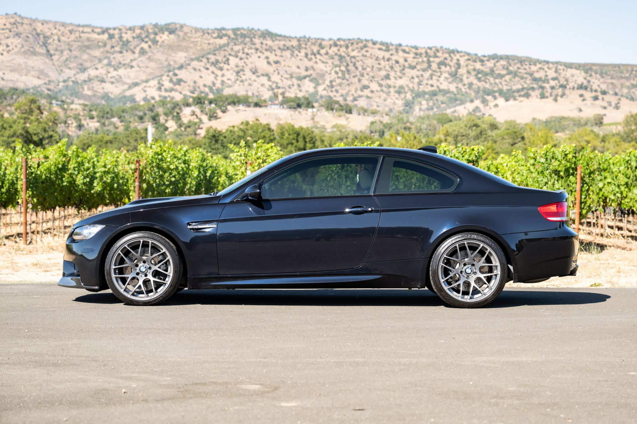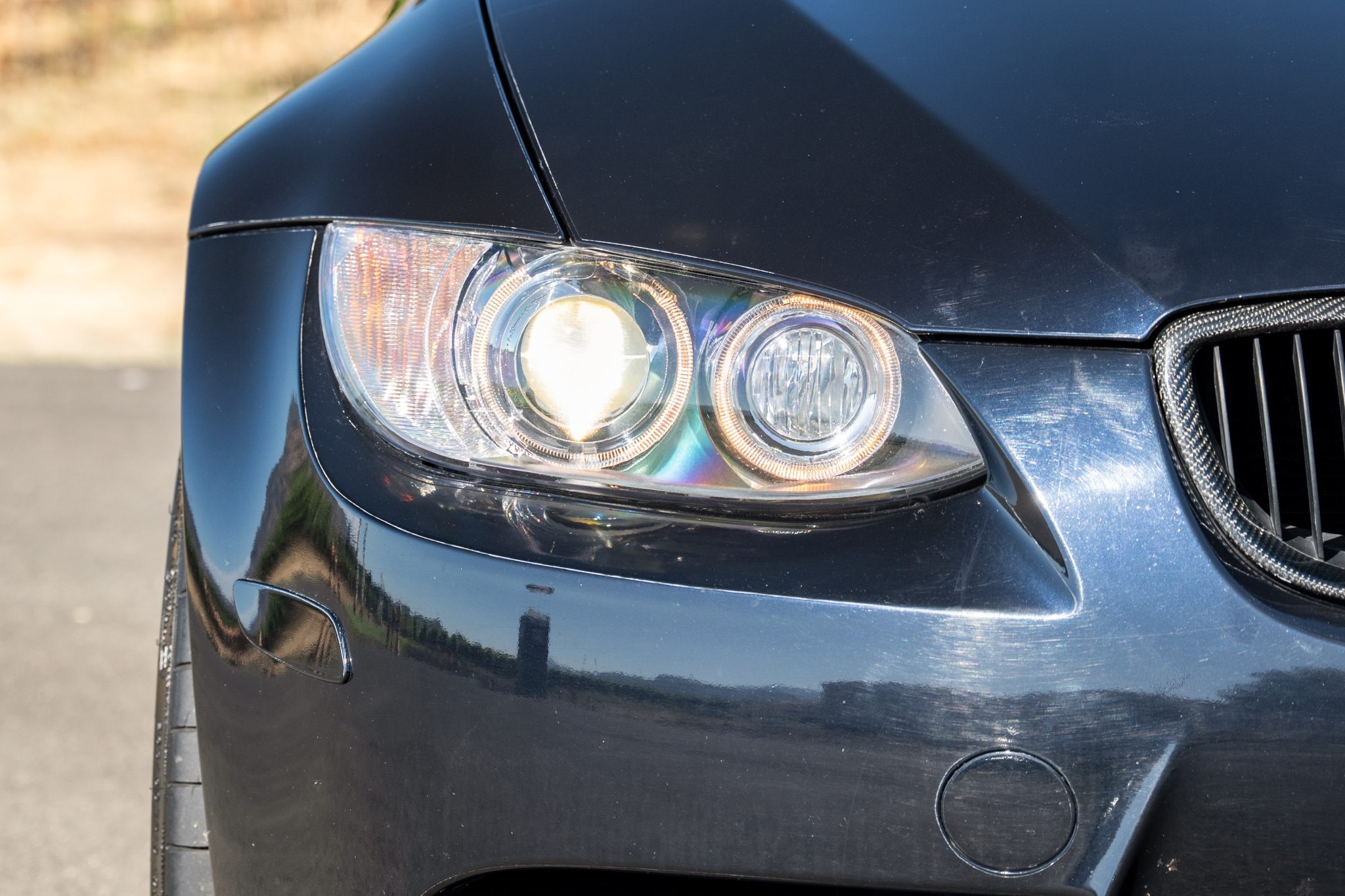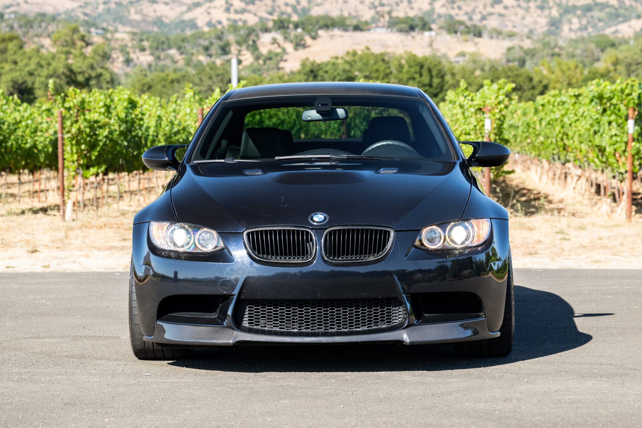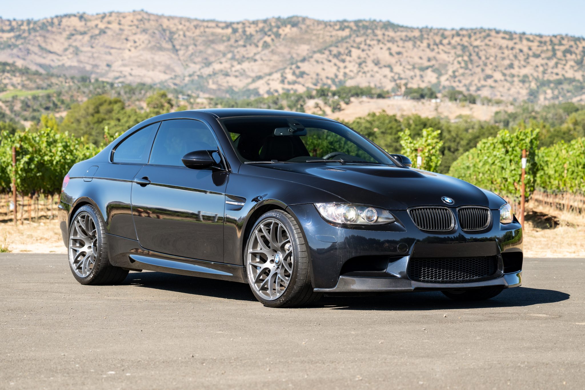 This 2008 BMW M3 coupe is noted to have been initially purchased by former professional road racing cyclist and Olympian, Levi Leipheimer, before it was later purchased in October 2012 by the seller, and it has 22k miles. Modifications include revised engine management for the 4.0-liter V8 as well as an aftermarket carbon-fiber front splitter and rear diffuser, 19″ VMR V170 wheels, and H&R sway bars. The car wears Jerez Black Metallic paint over Black Novillo leather, and further appointments include a six-speed manual transmission, a carbon-fiber roof panel, rear parking sensors, power-adjustable front sport seats, Comfort Access, and dual-zone automatic climate control. This E92 M3 is now offered with the owner’s manual, service records, spare and removed parts, and a clean California title in the seller’s name. The car features an aftermarket carbon-fiber front splitter, rear diffuser, and kidney grilles as well as adaptive xenon headlights, rain-sensing wipers, Shadowline trim, a carbon-fiber roof panel, a trunk lid spoiler, rear parking sensors, and quadruple exhaust outlets. The Carfax report shows damage in August 2014, and the seller tells us that the damage was the result of an earthquake causing a garage door to buckle and subsequently dent and scratch the trunk lid and rear spoiler. The trunk was then repainted, reportedly in its factory shade of Jerez Black Metallic (A73). Close-up photographs of the paintwork and trim are shown below, and chips in the wheelwells are noted. The 19″ VMR V170 wheels were powder-coated in Jet Anthracite Gloss and are mounted with Michelin tires. H&R sway bars are equipped, the car features Electronic Damping Control (EDC), and braking is handled by four-wheel vented and cross-drilled discs measuring 14.2″ and 13.8″ front and rear, respectively. The power-adjustable front sport seats are upholstered in Black Novillo leather, and Brushed Aluminum Shadow trim accents the dashboard and doors. Amenities include iDrive with navigation, Comfort Access keyless entry, Voice Control, aftermarket aluminum pedals, driver-seat position memory settings, a CD stereo, dual-zone automatic climate control, and cruise control. The leather-wrapped steering wheel features tri-color stitching and frames an M-branded tachometer, a 200-mph speedometer, a central information display, and gauges for oil temperature and fuel level. The digital odometer indicates 22k miles, approximately 13k of which were added under current ownership. The 4.0-liter S65 V8 features double-VANOS variable valve timing and revised engine management. The battery was replaced in July 2025. Power is sent to the rear wheels through a six-speed manual transmission. The Carfax report shows the aforementioned damage. The car most recently passed a California emissions test in December 2016.