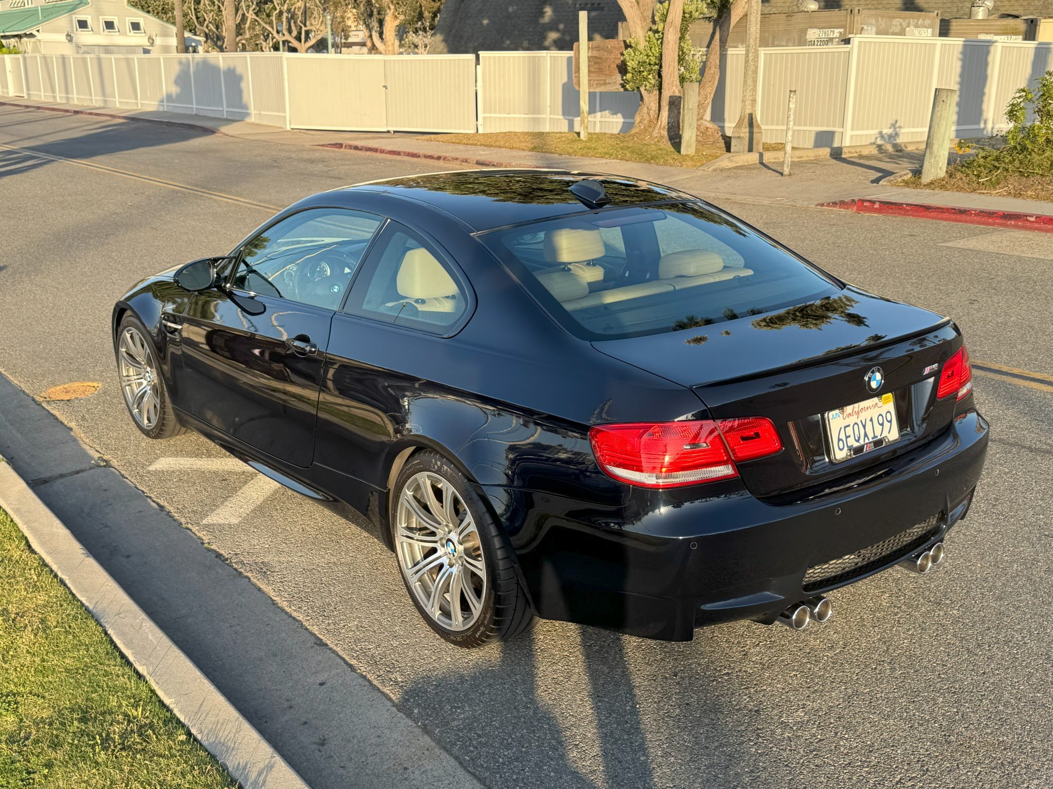 This 2008 BMW M3 coupe was initially delivered to Crevier BMW in Santa Ana, California, and has remained registered in that state through the seller’s purchase in 2022. Subsequent work completed under current ownership has included replacing the rod bearings, throttle actuators, motor mounts, and rear tires. Powered by a 4.0-liter V8 paired with a seven-speed dual-clutch transmission, the car is finished in Jerez Black Metallic over Bamboo Beige Novillo leather upholstery. Equipment includes the Premium and Technology Packages, 19″ forged Style 220 wheels, a limited-slip differential, xenon headlights, parking sensors, heated front seats, navigation, dual-zone automatic climate control, and cruise control. This E92 M3 has 66k miles and is now offered with a window sticker, service records, a clean Carfax report, and a clean California title in the seller’s name. The car is finished in Jerez Black Metallic (A73) and features Shadowline trim and adaptive xenon headlights as well as rain-sensing wipers, power-folding side mirrors, a glass sunroof, a trunk lid spoiler, rear parking sensors, and quadruple exhaust outlets. Forged 19″ Style 220 wheels are mounted with 245/35 front and 265/35 rear Michelin Pilot Super Sport tires, which have 2019 and 2024 date codes, respectively. The car features Electronic Damping Control (EDC), and braking is handled by four-wheel vented and cross-drilled discs measuring 14.2″ and 13.8″ front and rear, respectively. The brake fluid was changed in 2025. The heated front sport seats are upholstered in Bamboo Beige Novillo leather, and Sycamore Anthracite Wood trim accents the dashboard and doors. Amenities include iDrive with navigation, Comfort Access keyless entry, BMW Assist, a CD stereo, a power rear sunshade, dual-zone automatic climate control, and cruise control. The multifunction leather-wrapped steering wheel features paddle shifters along with tri-color stitching and frames an M-branded tachometer, a 200-mph speedometer, a central information display, and gauges for oil temperature and fuel level. The digital odometer indicates 66k miles, approximately 2k of which were added under current ownership. The 4.0-liter S65 V8 features double-VANOS variable valve timing and was factory rated at 414 horsepower and 295 lb-ft of torque. The spark plugs were replaced in 2022, and work completed between 2024 and 2025 included replacing the rod bearings, throttle actuators, and motor mounts. Power is sent to the rear wheels through a seven-speed M-DCT dual-clutch transmission and a Variable M Differential Lock. A transmission fluid leak was repaired in 2025. The window sticker lists factory colors, equipment, and options as well as and a Total Suggested Retail Price of $73,120. The Carfax report is free of accidents or other reported damage.