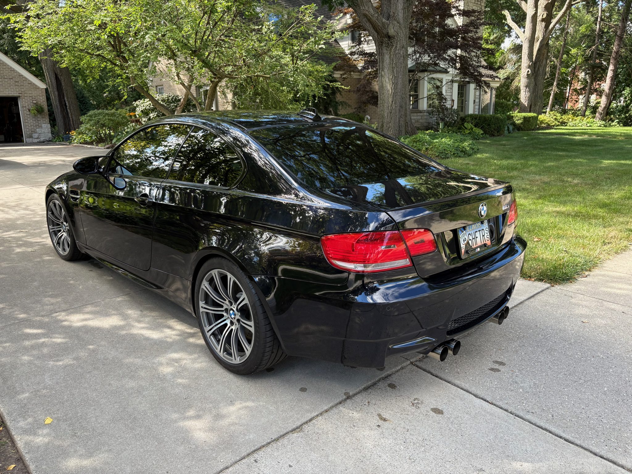 This 2008 BMW M3 coupe was acquired by the seller on BaT in July 2024 after it was registered in California and Utah, and the tires were subsequently replaced. It is finished in Jerez Black Metallic over black Novillo leather and is powered by a 4.0-liter S65 V8 paired with a six-speed manual transmission. Equipment includes the Premium and Technology packages as well as Electronic Damping Control, a Megan Racing axle-back exhaust, an M Performance rear spoiler, 19″ forged Style 220 wheels, a limited-slip differential, adaptive xenon headlights, heated and power-adjustable front sport seats, and iDrive with navigation. This E92 M3 is now offered with one key, removed exhaust components, a clean Carfax report, and a clean Illinois title in the seller’s name. The car is finished in Jerez Black Metallic and features Shadowline trim and adaptive xenon headlights as well as an M Performance rear spoiler, rain-sensing wipers, a glass sunroof, revised front grilles, and quadruple exhaust outlets. Imperfections in the finish, including paint checking on the front bumper cover, are displayed in the gallery. Forged 19″ Style 220 wheels are mounted with 255/35 front and 275/35 rear Michelin Pilot Sport 4S tires that were installed in August 2024. The car features Electronic Damping Control (EDC) and Dynamic Stability Control (DSC), and braking is handled by four-wheel vented and cross-drilled discs measuring 14.2″ and 13.8″ front and rear, respectively. The heated power-adjustable front sport seats are upholstered in black Novillo leather, and Brushed Aluminum Shadow trim accents the dashboard and doors. Amenities include iDrive with navigation as well as Comfort Access keyless entry, a CD stereo, dual-zone automatic climate control, and cruise control. The driver’s seatbelt butler functions but does not deliver the seatbelt, per the seller. The multi-function leather-wrapped steering wheel features tri-color stitching and frames an M-branded tachometer, a 200-mph speedometer, a central information display, and gauges for oil temperature and fuel level. The digital odometer indicates 30k miles, approximately 5k of which were added under current ownership. The 4.0-liter S65 V8 features double-VANOS variable valve timing and was factory rated at 414 horsepower and 295 lb-ft of torque. An oil change was completed in May 2025. Power is sent to the rear wheels through a six-speed manual transmission and a Variable M Differential Lock. A Megan Racing axle-back exhaust system is installed, and the removed factory components are included in the sale. The Carfax report notes that the transmission was replaced in September 2013. The Carfax report is free of accidents or other reported damage.