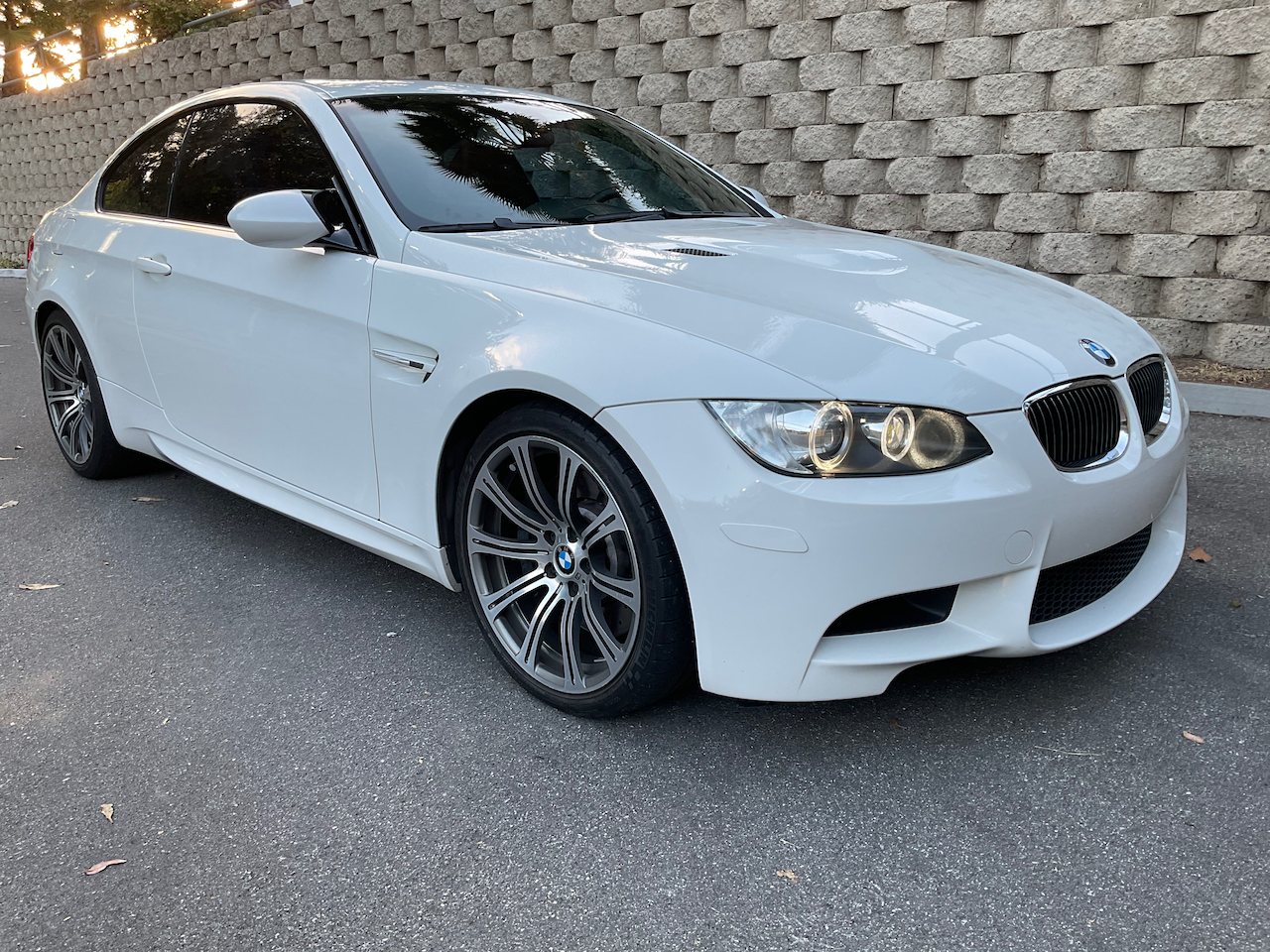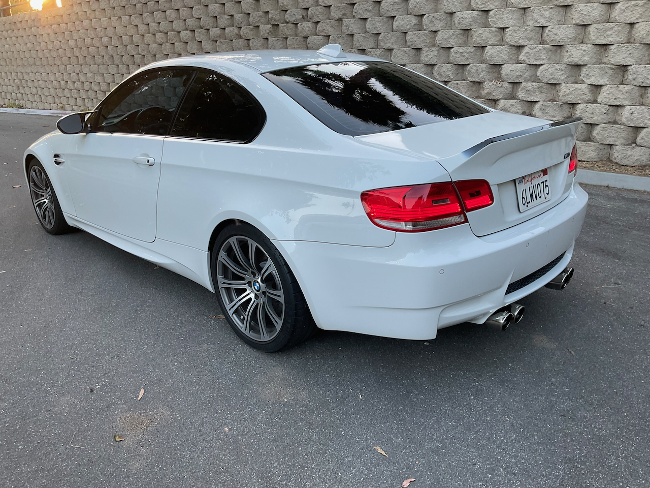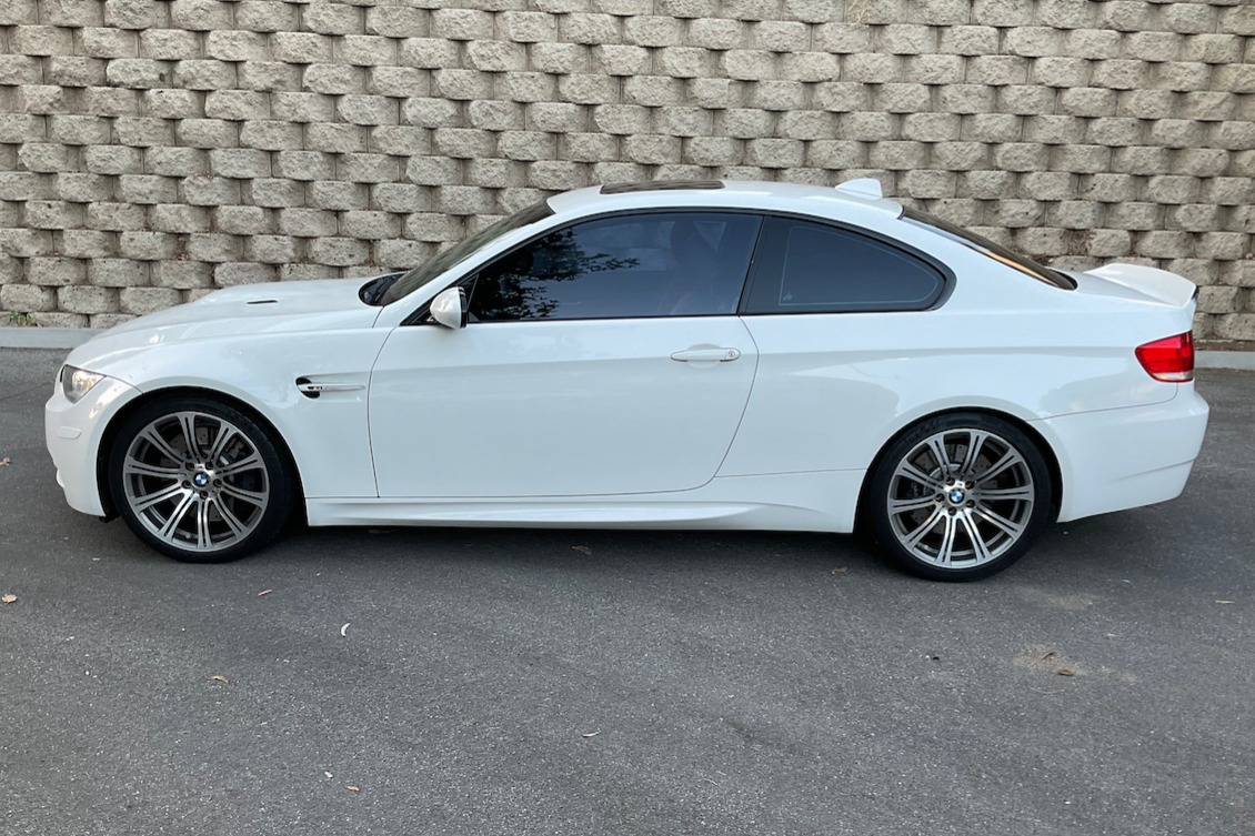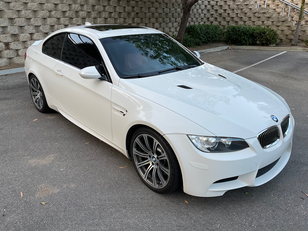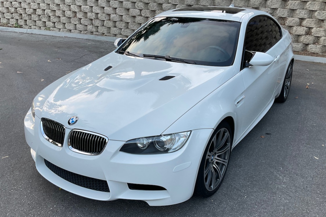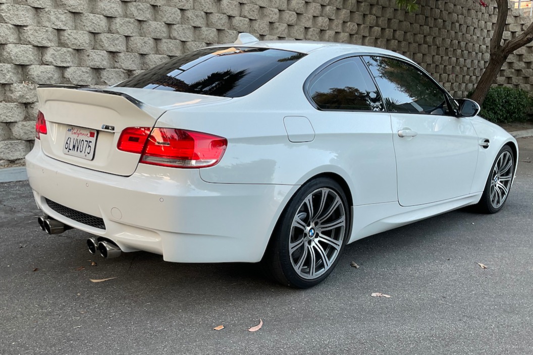 This 2008 BMW M3 coupe is finished in Alpine White over red leather and powered by a 4.0-liter V8 paired with a six-speed manual transmission. Equipment includes forged 19″ wheels, heated front seats, navigation, an aftermarket carbon fiber trunk lid, an AFE intake, Turner Stage 1 engine management software, and a Borla exhaust. The car was first registered in Ohio and later moved to California, where it was acquired by the seller in 2011. This E92 M3 has 31k miles and is offered with manufacturer’s literature, two remote key fobs, removed spare parts, a clean Carfax report, and a clean California title in the seller’s name. The body is finished in Alpine White (300) and features tinted windows, a glass sunroof, power-folding side mirrors, polished quad exhaust outlets, and an aftermarket carbon fiber trunk lid with an integrated ducktail spoiler. The front corner marker lenses have been replaced with painted covers and the side vent trims have been painted to match the body. Noted flaws include a paint blemish on the right front fender, scratches on the front and rear bumper covers, damage to the front undertray, and repaired paint chips on the hood. Forged 19″ Style 220 M double-spoke wheels wear Michelin Pilot Super Sport tires with 2016 date codes measuring 245/35 up front and 265/35 out back. A brake fluid flush was performed in May 2020, and the seller notes curb rash on the wheels. The cabin features heated and power-adjustable front seats upholstered in Fox Red Novillo leather, matching door panels, and black carpeting. Carbon fiber-look vinyl wrap has been applied to the dashboard, doors, and front and rear center consoles. Additional amenities include dual-zone automatic climate control, an iDrive infotainment system with navigation, rear parking distance control, Comfort Access keyless entry, and a factory CD stereo. The seller notes a sticky front passenger cupholder and peeling trim on the rear ashtray door. The leather-wrapped multi-function steering wheel frames a 200-mph speedometer, a 9k-rpm tachometer with a variable redline, and gauges for oil temperature and fuel level. The digital odometer indicates under 31k miles, approximately 13k of which were added by the seller. The 4.0-liter S65 V8 has been fitted with an AFE intake and Turner Stage 1 engine management software. The fluids for the differential and transmission were changed in May 2020 along with the engine oil. Power is sent to the rear wheels via a a six-speed manual transmission and a limited-slip differential. The car is equipped with a Borla exhaust system. The car is supplied with its stock trunk lid and other removed spare parts as shown in the gallery. Manufacturer’s literature, two remote keys fobs, and service records for work completed during current ownership are included in the sale. The Carfax report shows no accidents or other damage and lists history in Ohio and California through its latest entry in May 2020. A successful California emissions inspection result is recorded in May 2020.
