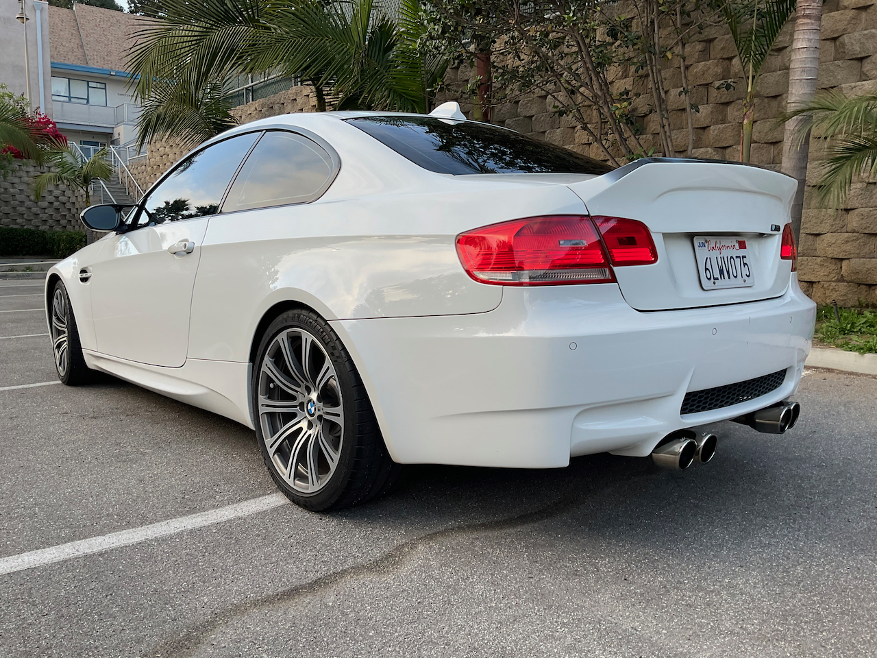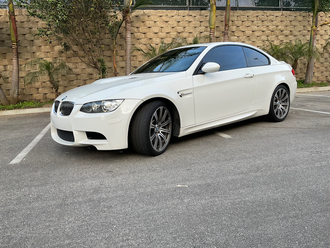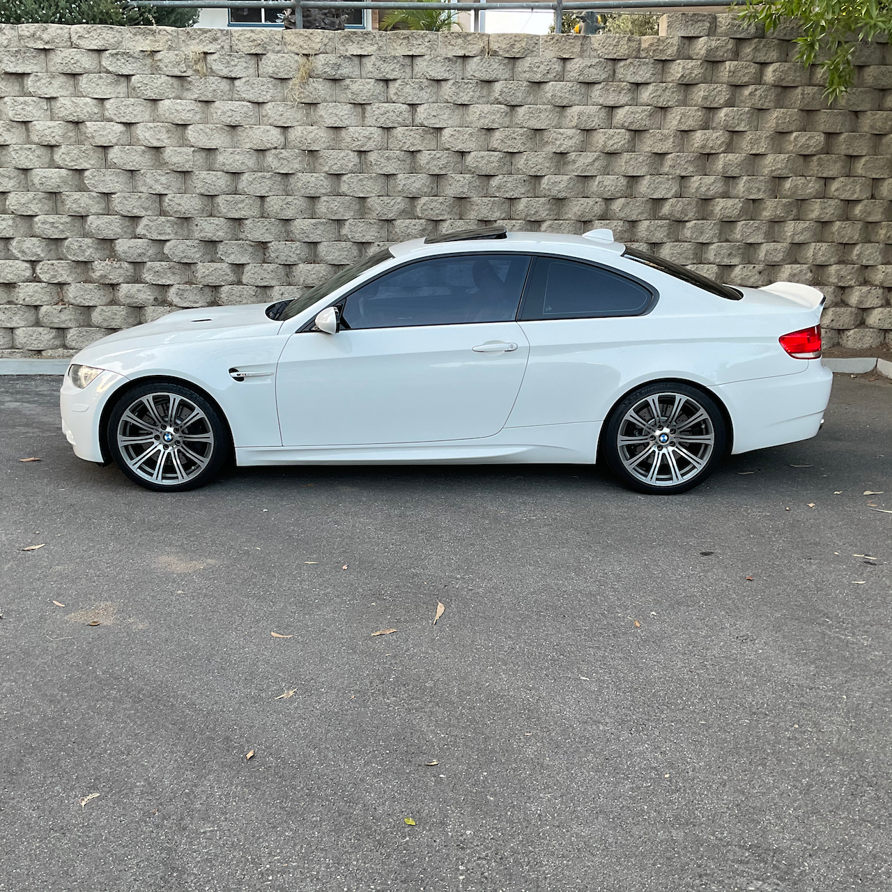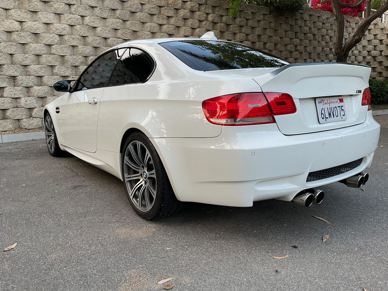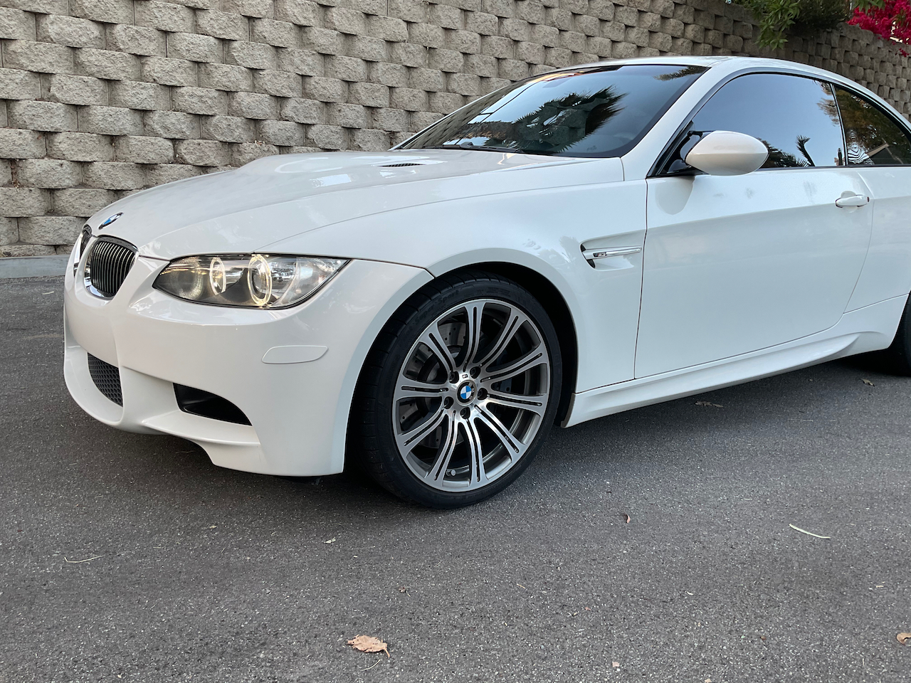 This 2008 BMW M3 coupe is finished in Alpine White over red leather and powered by a 4.0-liter V8 paired with a six-speed manual transmission. Equipment includes forged 19″ wheels, heated front seats, navigation, an aftermarket carbon fiber trunk lid, an AFE intake, Turner Stage 1 engine management software, and a Borla exhaust. The car was first registered in Ohio and later moved to California, where it was acquired by the seller in 2011. This E92 M3 has 31k miles and is offered with manufacturer’s literature, two remote key fobs, removed spare parts, a clean Carfax report, and a clean California title in the seller’s name. The body is finished in Alpine White (300) and features tinted windows, a glass sunroof, power-folding side mirrors, polished quad exhaust outlets, and an aftermarket carbon fiber trunk lid with an integrated ducktail spoiler. The front corner marker lenses have been replaced with painted covers and the side vent trims have been painted to match the body. Noted flaws include a paint blemish on the right front fender, scratches on the front and rear bumper covers, damage to the front undertray, and repaired paint chips on the hood. Forged 19″ Style 220 M double-spoke wheels wear Michelin Pilot Super Sport tires with 2016 date codes measuring 245/35 up front and 265/35 out back. A brake fluid flush was performed in May 2020, and the seller notes curb rash on the wheels. The cabin features heated and power-adjustable front seats upholstered in Fox Red Novillo leather, matching door panels, and black carpeting. Carbon fiber-look vinyl wrap has been applied to the dashboard, doors, and front and rear center consoles. Additional amenities include dual-zone automatic climate control, an iDrive infotainment system with navigation, rear parking distance control, Comfort Access keyless entry, and a factory CD stereo. The seller notes a sticky front passenger cupholder and peeling trim on the rear ashtray door. The leather-wrapped multi-function steering wheel frames a 200-mph speedometer, a 9k-rpm tachometer with a variable redline, and gauges for oil temperature and fuel level. The digital odometer indicates under 31k miles, approximately 13k of which were added by the seller. The 4.0-liter S65 V8 has been fitted with an AFE intake and Turner Stage 1 engine management software. The fluids for the differential and transmission were changed in May 2020 along with the engine oil. Power is sent to the rear wheels via a a six-speed manual transmission and a limited-slip differential. The car is equipped with a Borla exhaust system. The car is supplied with its stock trunk lid and other removed spare parts as shown in the gallery. Manufacturer’s literature, two remote keys fobs, and service records for work completed during current ownership are included in the sale. The Carfax report shows no accidents or other damage and lists history in Ohio and California through its latest entry in May 2020. A successful California emissions inspection result is recorded in May 2020.