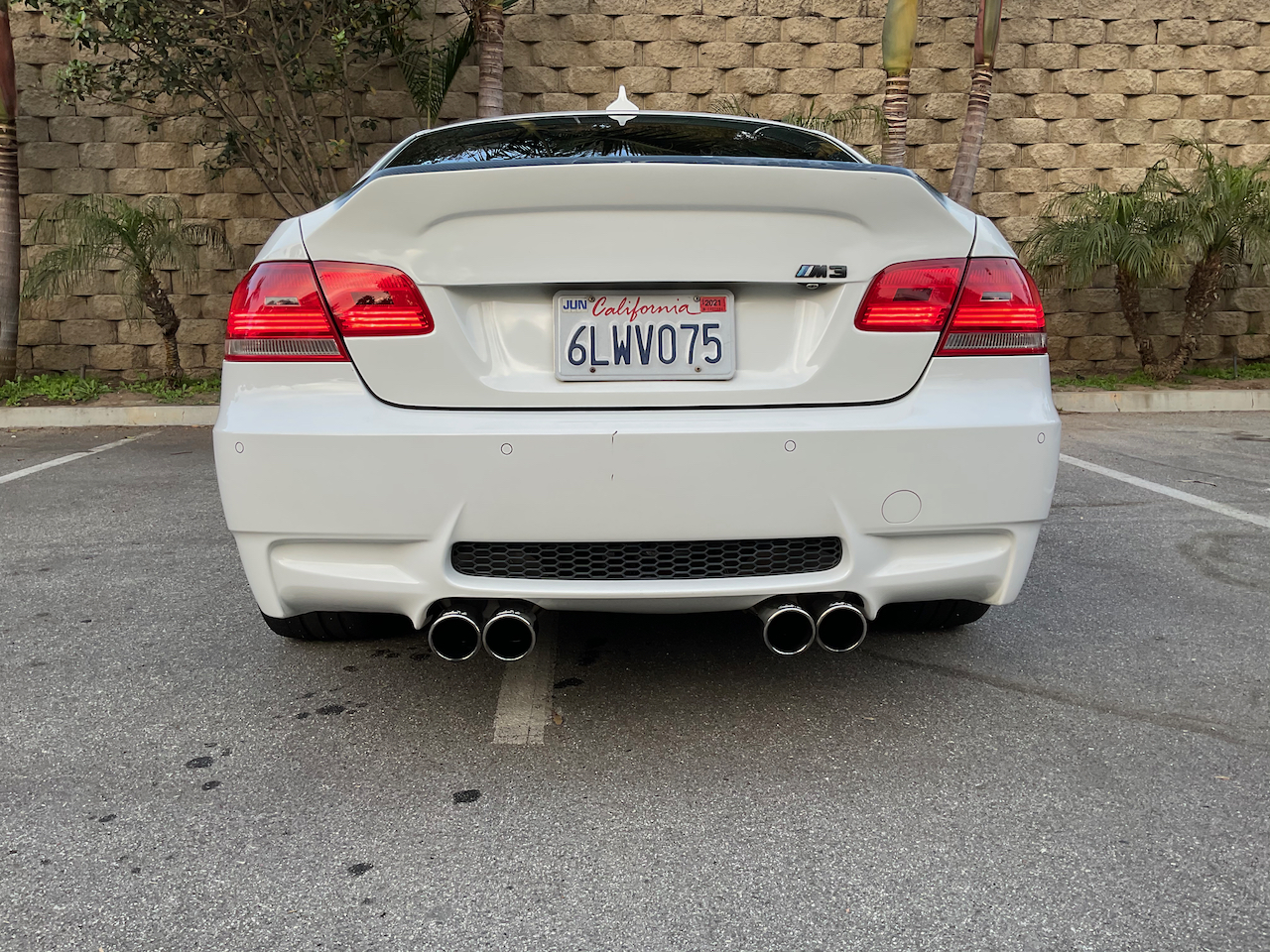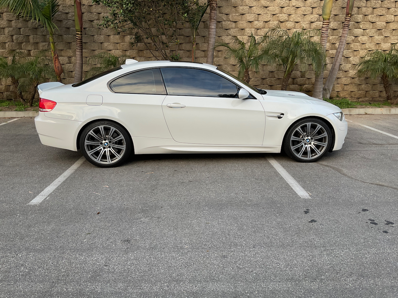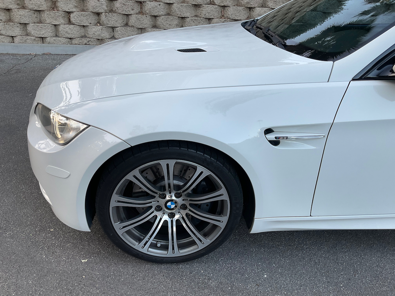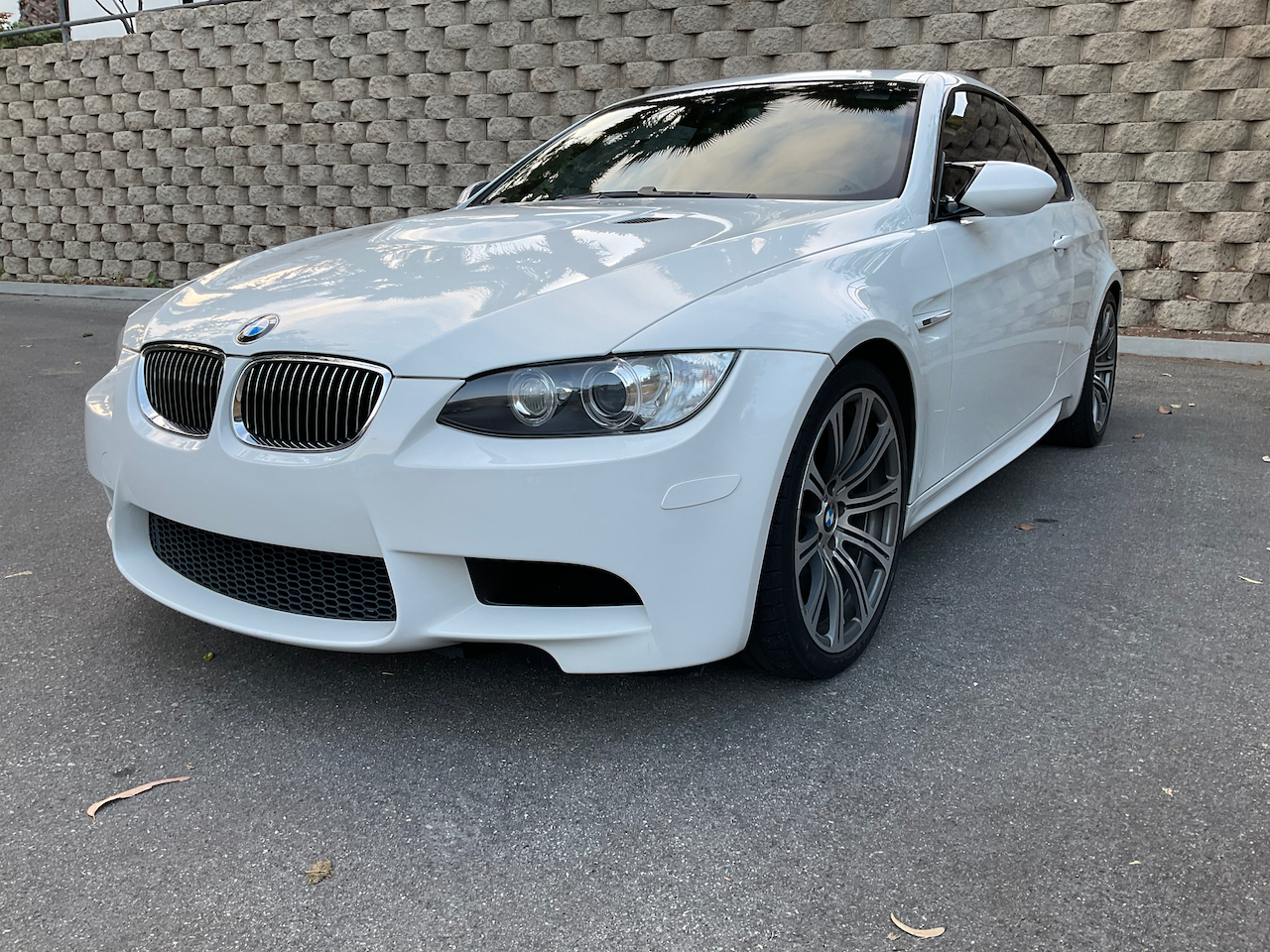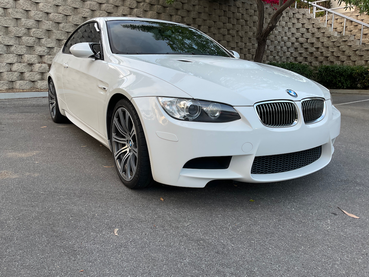 This 2008 BMW M3 coupe is finished in Alpine White over red leather and powered by a 4.0-liter V8 paired with a six-speed manual transmission. Equipment includes forged 19″ wheels, heated front seats, navigation, an aftermarket carbon fiber trunk lid, an AFE intake, Turner Stage 1 engine management software, and a Borla exhaust. The car was first registered in Ohio and later moved to California, where it was acquired by the seller in 2011. This E92 M3 has 31k miles and is offered with manufacturer’s literature, two remote key fobs, removed spare parts, a clean Carfax report, and a clean California title in the seller’s name. The body is finished in Alpine White (300) and features tinted windows, a glass sunroof, power-folding side mirrors, polished quad exhaust outlets, and an aftermarket carbon fiber trunk lid with an integrated ducktail spoiler. The front corner marker lenses have been replaced with painted covers and the side vent trims have been painted to match the body. Noted flaws include a paint blemish on the right front fender, scratches on the front and rear bumper covers, damage to the front undertray, and repaired paint chips on the hood. Forged 19″ Style 220 M double-spoke wheels wear Michelin Pilot Super Sport tires with 2016 date codes measuring 245/35 up front and 265/35 out back. A brake fluid flush was performed in May 2020, and the seller notes curb rash on the wheels. The cabin features heated and power-adjustable front seats upholstered in Fox Red Novillo leather, matching door panels, and black carpeting. Carbon fiber-look vinyl wrap has been applied to the dashboard, doors, and front and rear center consoles. Additional amenities include dual-zone automatic climate control, an iDrive infotainment system with navigation, rear parking distance control, Comfort Access keyless entry, and a factory CD stereo. The seller notes a sticky front passenger cupholder and peeling trim on the rear ashtray door. The leather-wrapped multi-function steering wheel frames a 200-mph speedometer, a 9k-rpm tachometer with a variable redline, and gauges for oil temperature and fuel level. The digital odometer indicates under 31k miles, approximately 13k of which were added by the seller. The 4.0-liter S65 V8 has been fitted with an AFE intake and Turner Stage 1 engine management software. The fluids for the differential and transmission were changed in May 2020 along with the engine oil. Power is sent to the rear wheels via a a six-speed manual transmission and a limited-slip differential. The car is equipped with a Borla exhaust system. The car is supplied with its stock trunk lid and other removed spare parts as shown in the gallery. Manufacturer’s literature, two remote keys fobs, and service records for work completed during current ownership are included in the sale. The Carfax report shows no accidents or other damage and lists history in Ohio and California through its latest entry in May 2020. A successful California emissions inspection result is recorded in May 2020.