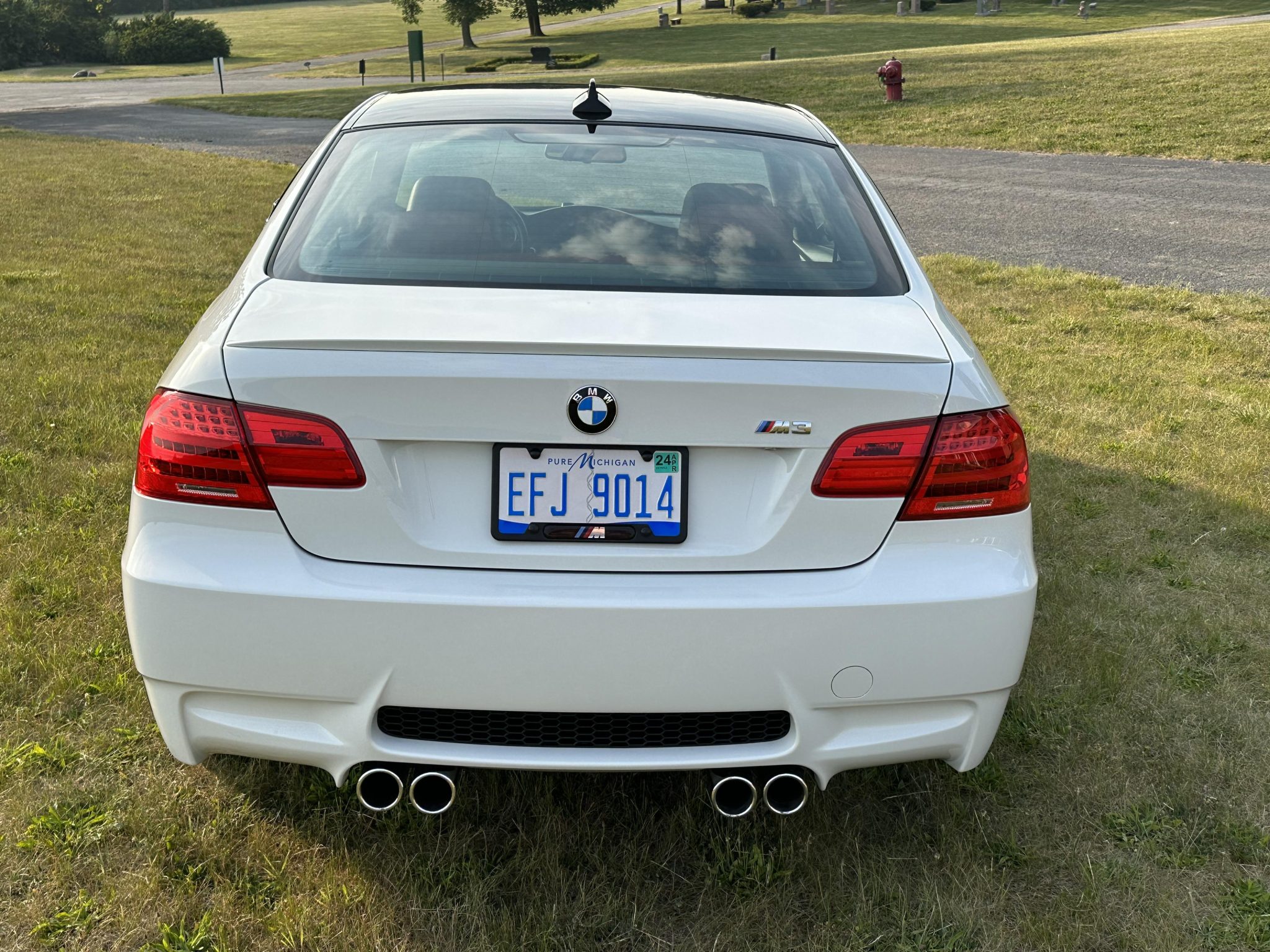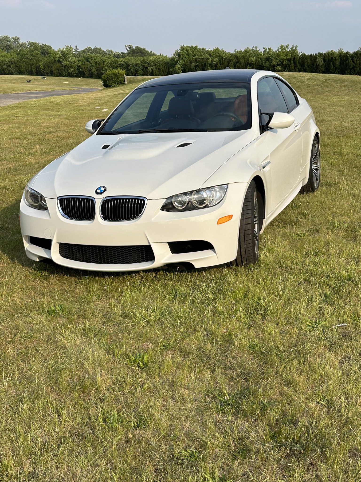 This 2008 BMW M3 coupe was purchased by the current owner in 2020 and now has 33k miles following registration history in New York and Michigan. It is powered by a 4.0-liter V8 paired with a six-speed manual transmission and is finished in Alpine White III over Fox Red Novillo leather upholstery. Equipment includes the Premium Package, Technology Package, 19″ forged Style 220 wheels, a limited-slip differential, xenon headlights, heated front seats, navigation, dual-zone automatic climate control, and cruise control. This E92 M3 is offered by the seller on behalf of the current owner at no reserve with service records, a car cover, a clean Carfax report, and a clean Michigan title in the owner’s name. The car is finished in Alpine White III and features Shadowline trim and adaptive xenon headlights as well as rain-sensing wipers, a carbon-fiber roof panel, a trunk lid spoiler, and quadruple exhaust outlets. Paint protection film has been applied to the front bumper cover, hood, side mirrors, and headlights, and close-up photographs of the exterior finish and trim are shown in the gallery below. Forged 19″ Style 220 wheels are mounted with Michelin Pilot Sport tires that have 2019 date codes. The car features Dynamic Stability Control (DSC). Braking is handled by four-wheel vented and cross-drilled discs measuring 14.2″ and 13.8″ front and rear, respectively. The brake fluid was changed in April 2023. The heated power-adjustable front sport seats are upholstered in Fox Red Novillo leather, and Carbon Structure Leather trim accents the dashboard and doors. Amenities include iDrive with navigation, Comfort Access keyless entry, a CD stereo, dual-zone automatic climate control, and cruise control. The seller notes that the headliner is loose. The multi-function leather-wrapped steering wheel features tri-color stitching and frames an M-branded tachometer, a 200-mph speedometer, a central information display, and gauges for oil temperature and fuel level. The digital odometer indicates 33k miles, approximately 4,500 of which were added under current ownership. The 4.0-liter S65 V8 features double-VANOS variable valve timing and was factory rated at 414 horsepower and 295 lb-ft of torque. May 2021 and July 2024 Blackstone Laboratories oil reports are provided in the gallery below. Power is sent to the rear wheels through a six-speed manual transmission and a Variable M Differential Lock. The Carfax report indicates that the transmission was replaced in June 2008. The Carfax report is free of accidents or other reported damage.