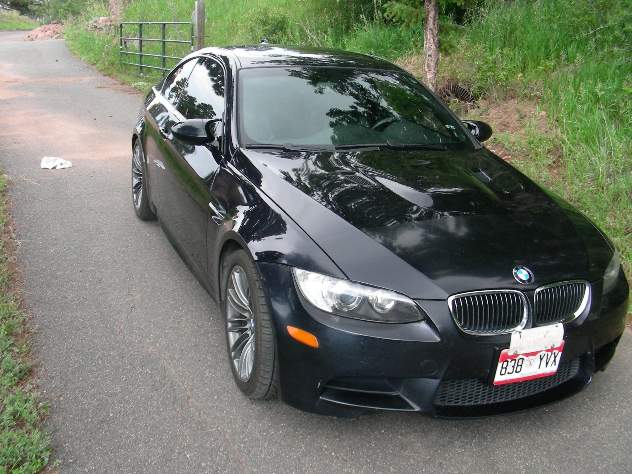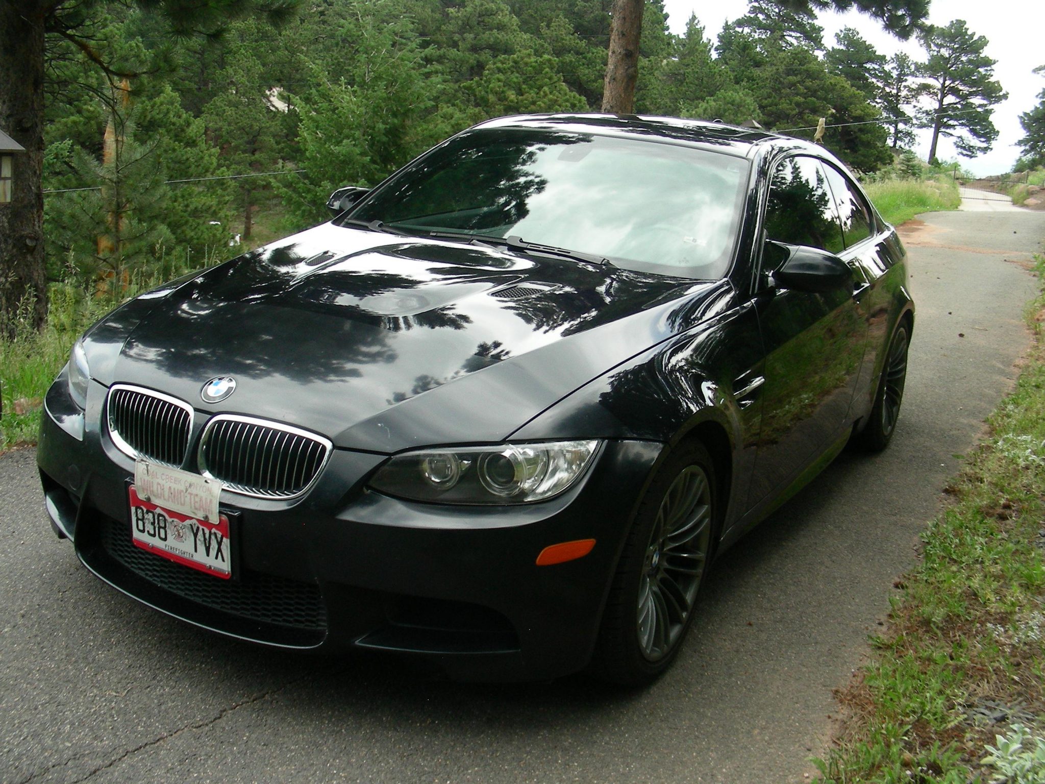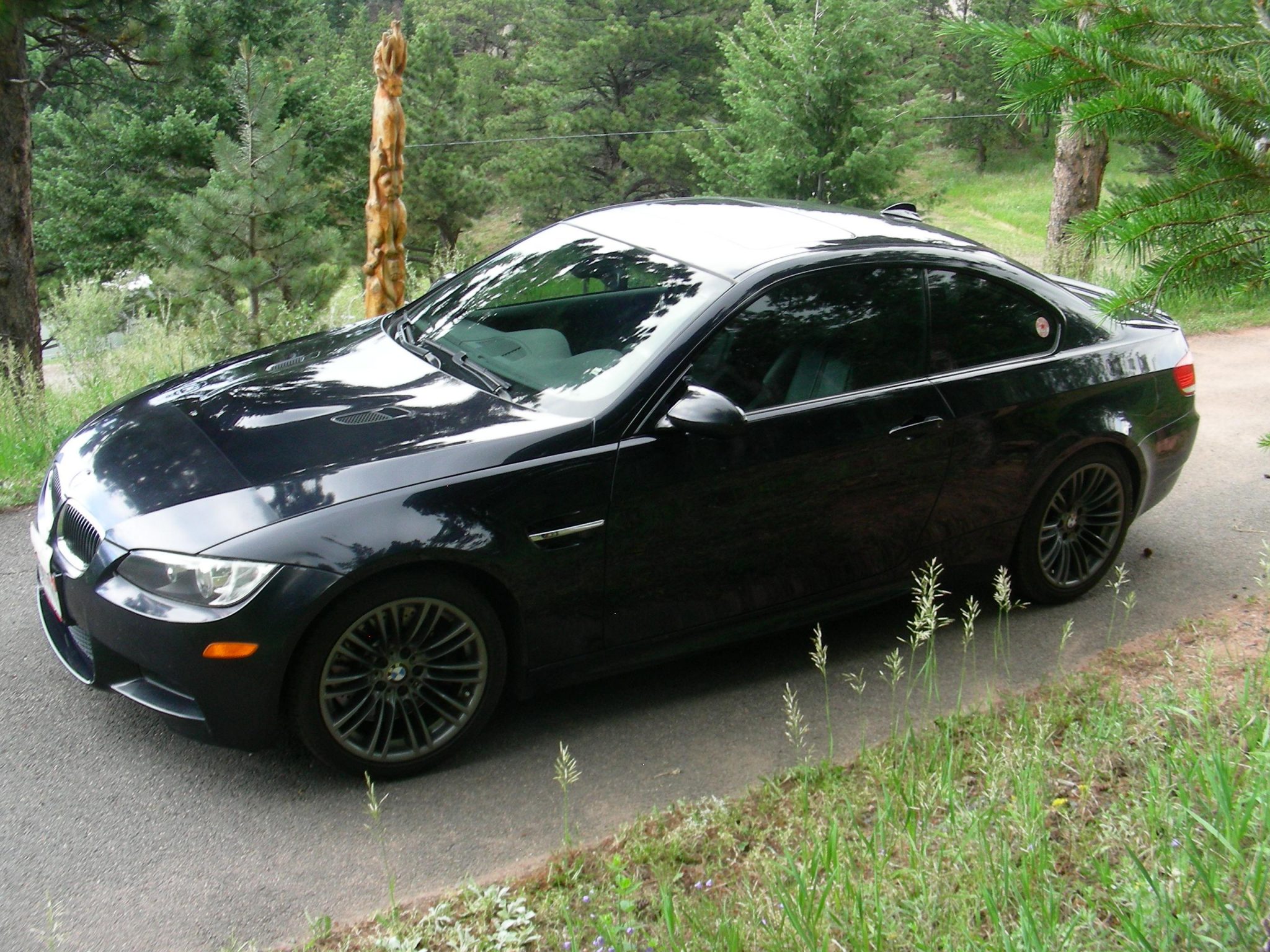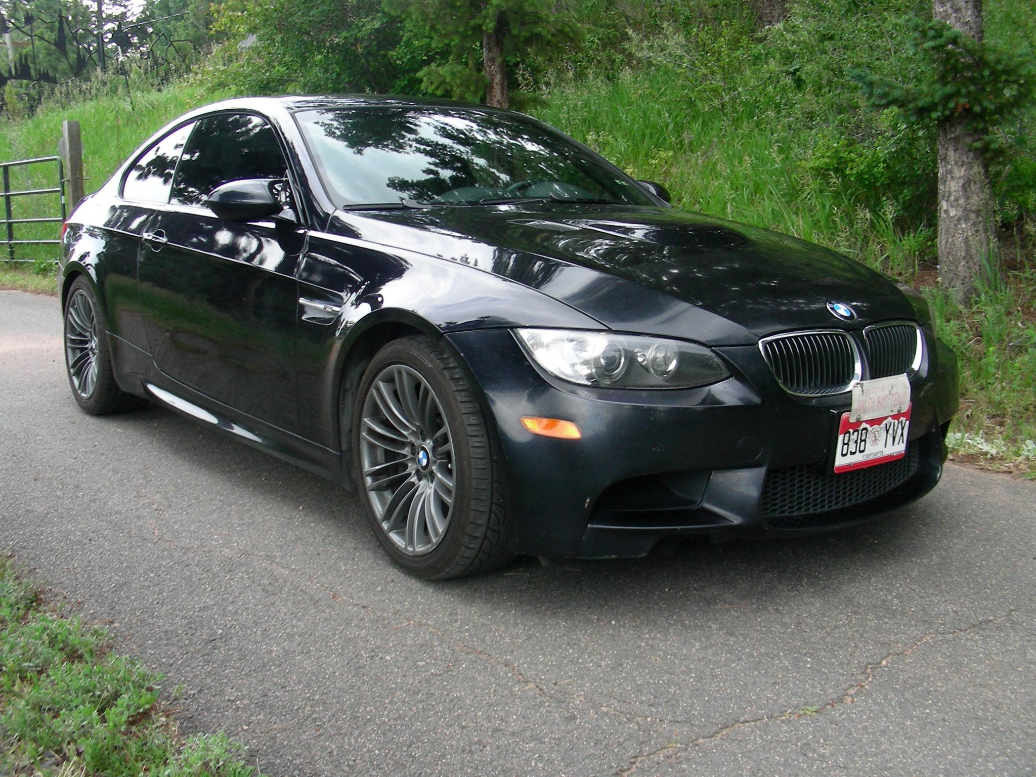 This 2008 BMW M3 coupe was first delivered to Markel BMW in Omaha, Nebraska, and was acquired by the seller in December 2011. The car is finished in Jerez Black Metallic over black Novillo leather and power is provided by a 4.0-liter V8 linked with a six-speed manual transmission and a limited-slip differential. Additional equipment includes a power sunroof, Dynamic Damper Control, navigation, power-adjustable heated front seats, adaptive xenon headlights, quad exhaust outlets, and 18″ Style 219 wheels. This M3 now has 61k miles and is offered with an accident-free Carfax report and a clean Colorado title in the seller’s name. The car is finished in Jerez Black Metallic (A73) with Shadowline trim and features a power sunroof, tinted glass, a decklid spoiler, adaptive xenon headlights, power-folding side mirrors, and polished quad exhaust outlets. The seller states that the hood, roof, and rear decklid were repaired to correct hail damage, and a crease is visible in the lower section of the right door. Factory 18″ Style 219 wheels wear staggered width Bridgestone Potenza tires, and a spare 18″ Style 270 wheel with a Dunlop tire is stored in the trunk. The car is equipped with Dynamic Damper Control, and stopping power is provided by black-finished calipers over cross-drilled rotors at all four corners. The cabin features power-adjustable heated front seats upholstered in black Novillo leather joined by carbon-look leather trim accents on the dashboard. Amenities include automatic climate control, cruise control, navigation, an AM/FM/CD stereo, and an Anthracite headliner. The leather-wrapped multifunction steering wheel features tri-colored stitching and frames a 200-mph speedometer, a tachometer with a variable redline, and auxiliary gauges. The digital odometer indicates 61k miles, approximately 22k of which have been added under current ownership. The seller notes that the time and date periodically need to be reset. The naturally aspirated 4.0-liter S65 V8 features Double-VANOS variable valve timing and was rated at 414 horsepower and 295 lb-ft of torque when new. Power is sent to the rear wheels through a six-speed manual transmission and a limited-slip differential. The Carfax report shows no accidents or other damage and lists history in Nebraska and Colorado. An open manufacturer safety recall for the positive battery cable is noted in June 2019.