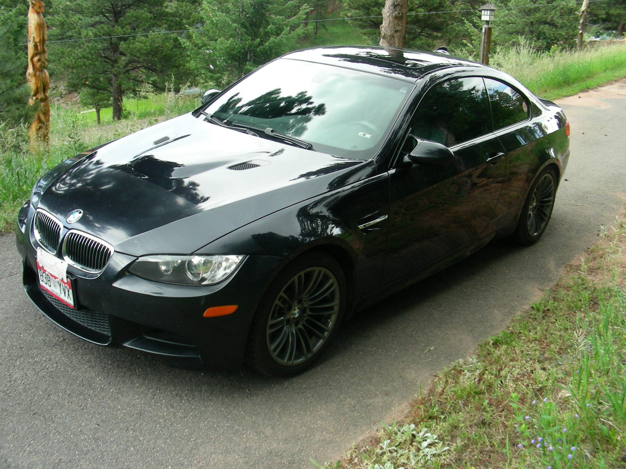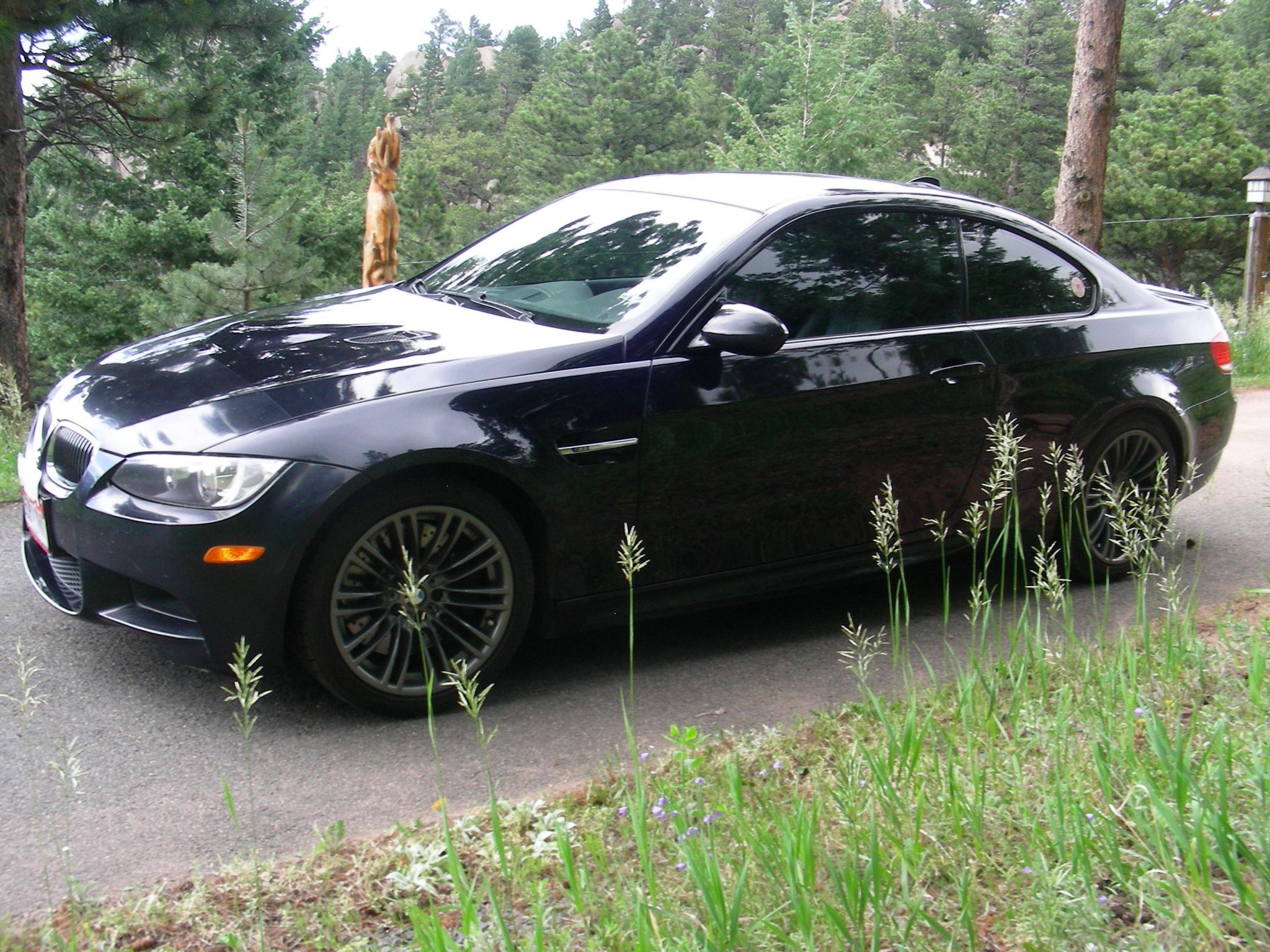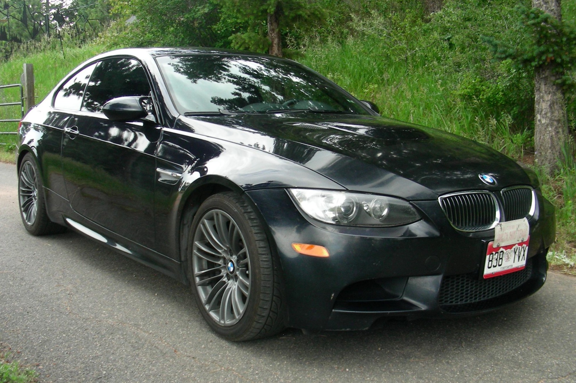 This 2008 BMW M3 coupe was first delivered to Markel BMW in Omaha, Nebraska, and was acquired by the seller in December 2011. The car is finished in Jerez Black Metallic over black Novillo leather and power is provided by a 4.0-liter V8 linked with a six-speed manual transmission and a limited-slip differential. Additional equipment includes a power sunroof, Dynamic Damper Control, navigation, power-adjustable heated front seats, adaptive xenon headlights, quad exhaust outlets, and 18″ Style 219 wheels. This M3 now has 61k miles and is offered with an accident-free Carfax report and a clean Colorado title in the seller’s name. The car is finished in Jerez Black Metallic (A73) with Shadowline trim and features a power sunroof, tinted glass, a decklid spoiler, adaptive xenon headlights, power-folding side mirrors, and polished quad exhaust outlets. The seller states that the hood, roof, and rear decklid were repaired to correct hail damage, and a crease is visible in the lower section of the right door. Factory 18″ Style 219 wheels wear staggered width Bridgestone Potenza tires, and a spare 18″ Style 270 wheel with a Dunlop tire is stored in the trunk. The car is equipped with Dynamic Damper Control, and stopping power is provided by black-finished calipers over cross-drilled rotors at all four corners. The cabin features power-adjustable heated front seats upholstered in black Novillo leather joined by carbon-look leather trim accents on the dashboard. Amenities include automatic climate control, cruise control, navigation, an AM/FM/CD stereo, and an Anthracite headliner. The leather-wrapped multifunction steering wheel features tri-colored stitching and frames a 200-mph speedometer, a tachometer with a variable redline, and auxiliary gauges. The digital odometer indicates 61k miles, approximately 22k of which have been added under current ownership. The seller notes that the time and date periodically need to be reset. The naturally aspirated 4.0-liter S65 V8 features Double-VANOS variable valve timing and was rated at 414 horsepower and 295 lb-ft of torque when new. Power is sent to the rear wheels through a six-speed manual transmission and a limited-slip differential. The Carfax report shows no accidents or other damage and lists history in Nebraska and Colorado. An open manufacturer safety recall for the positive battery cable is noted in June 2019.