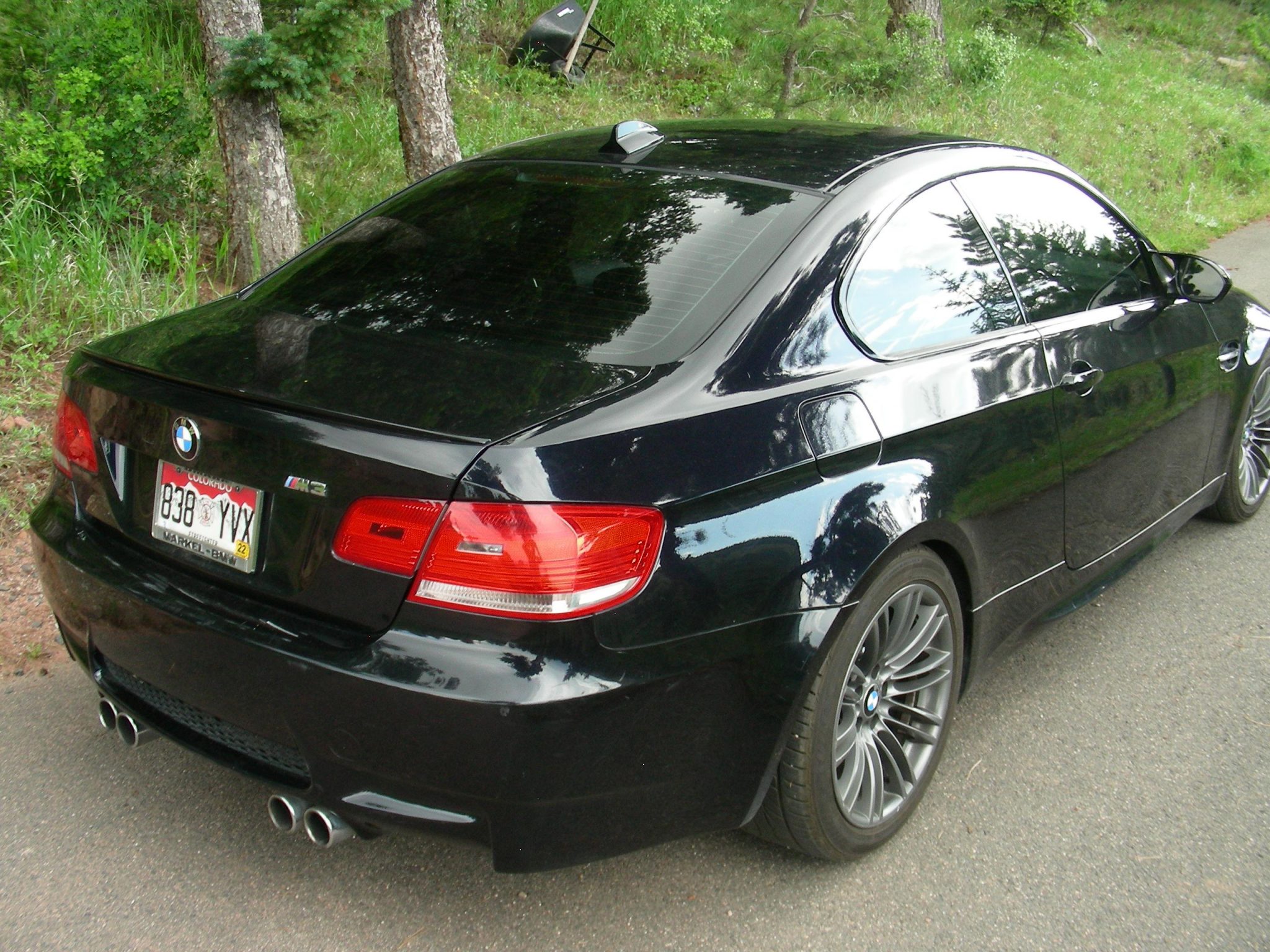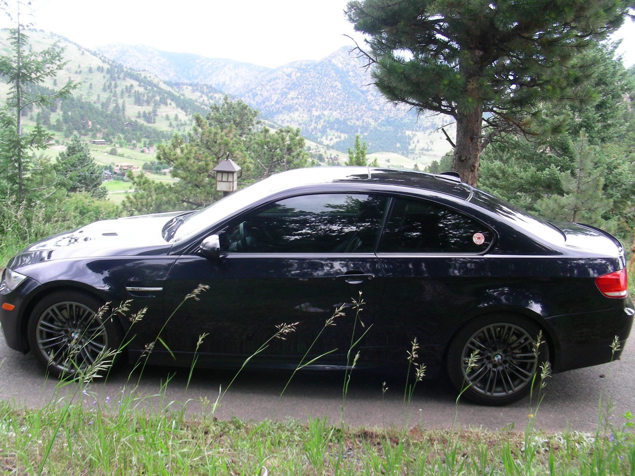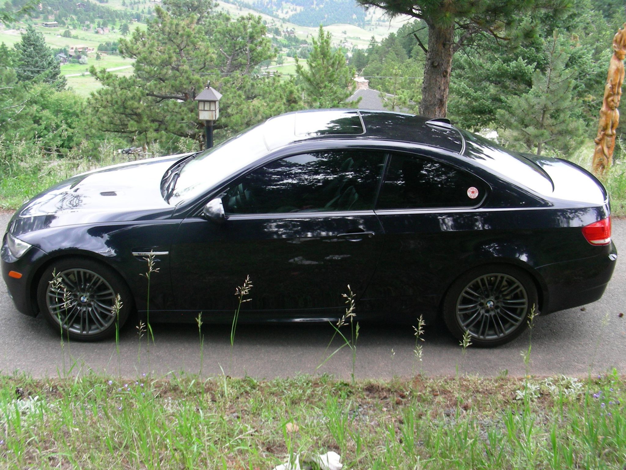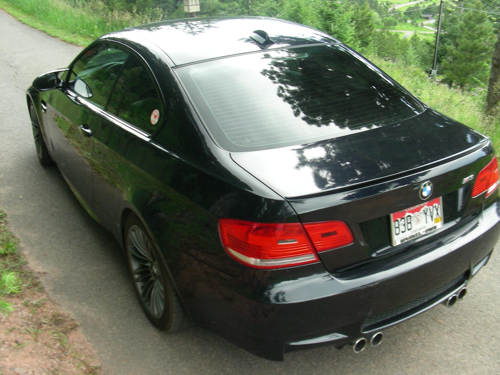 This 2008 BMW M3 coupe was first delivered to Markel BMW in Omaha, Nebraska, and was acquired by the seller in December 2011. The car is finished in Jerez Black Metallic over black Novillo leather and power is provided by a 4.0-liter V8 linked with a six-speed manual transmission and a limited-slip differential. Additional equipment includes a power sunroof, Dynamic Damper Control, navigation, power-adjustable heated front seats, adaptive xenon headlights, quad exhaust outlets, and 18″ Style 219 wheels. This M3 now has 61k miles and is offered with an accident-free Carfax report and a clean Colorado title in the seller’s name. The car is finished in Jerez Black Metallic (A73) with Shadowline trim and features a power sunroof, tinted glass, a decklid spoiler, adaptive xenon headlights, power-folding side mirrors, and polished quad exhaust outlets. The seller states that the hood, roof, and rear decklid were repaired to correct hail damage, and a crease is visible in the lower section of the right door. Factory 18″ Style 219 wheels wear staggered width Bridgestone Potenza tires, and a spare 18″ Style 270 wheel with a Dunlop tire is stored in the trunk. The car is equipped with Dynamic Damper Control, and stopping power is provided by black-finished calipers over cross-drilled rotors at all four corners. The cabin features power-adjustable heated front seats upholstered in black Novillo leather joined by carbon-look leather trim accents on the dashboard. Amenities include automatic climate control, cruise control, navigation, an AM/FM/CD stereo, and an Anthracite headliner. The leather-wrapped multifunction steering wheel features tri-colored stitching and frames a 200-mph speedometer, a tachometer with a variable redline, and auxiliary gauges. The digital odometer indicates 61k miles, approximately 22k of which have been added under current ownership. The seller notes that the time and date periodically need to be reset. The naturally aspirated 4.0-liter S65 V8 features Double-VANOS variable valve timing and was rated at 414 horsepower and 295 lb-ft of torque when new. Power is sent to the rear wheels through a six-speed manual transmission and a limited-slip differential. The Carfax report shows no accidents or other damage and lists history in Nebraska and Colorado. An open manufacturer safety recall for the positive battery cable is noted in June 2019.
