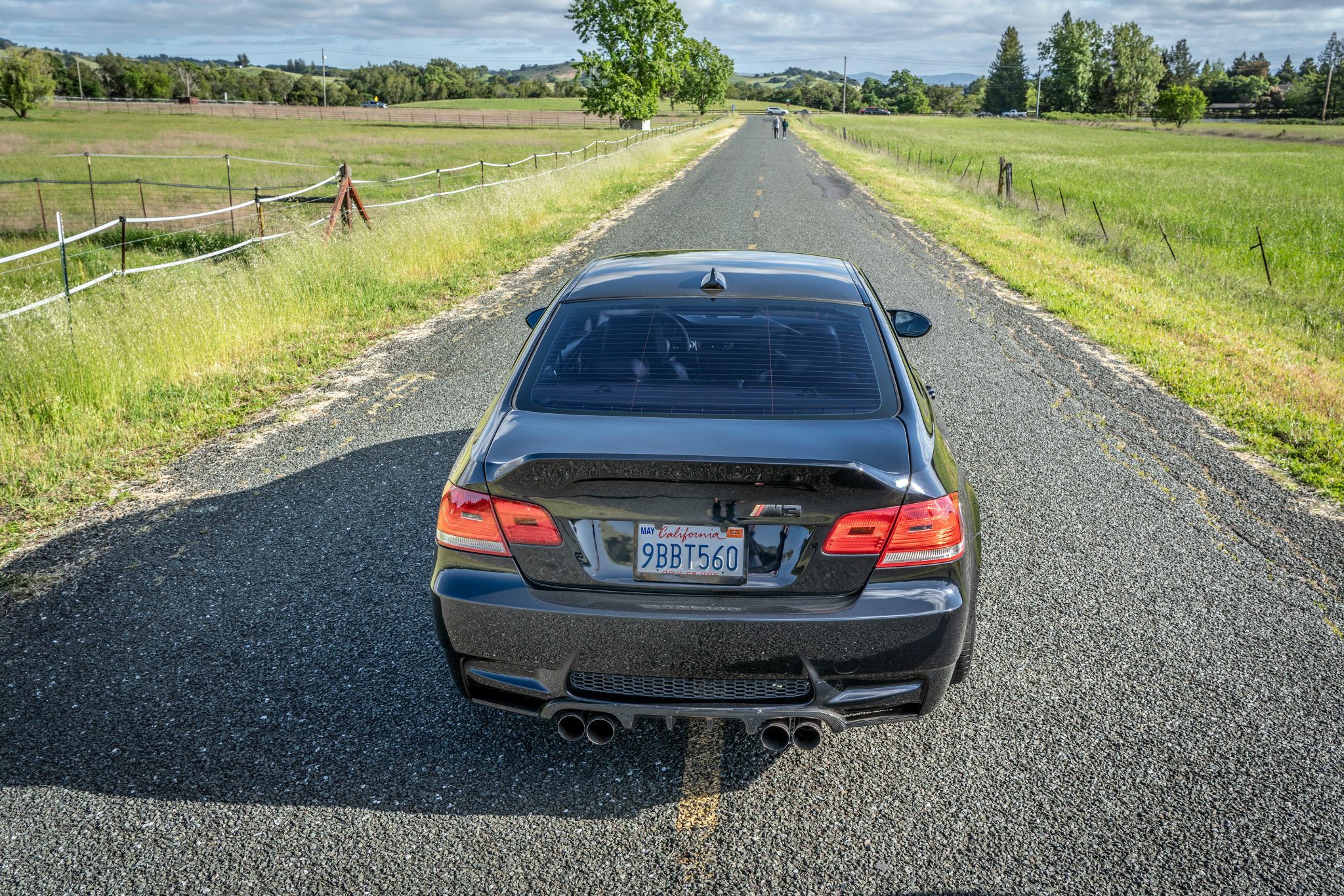 This 2008 BMW M3 coupe was initially sold by BMW of Fremont in California and has remained registered in New York and California through the current owner’s acquisition in 2022. It is powered by a 4.0-liter V8 paired with a six-speed manual transmission and is finished in Jerez Black Metallic over black cloth and leather upholstery. Equipment includes aftermarket body, exhaust, and suspension components as well as 18″ multi-spoke wheels, a limited-slip differential, adaptive xenon headlights, a carbon-fiber intake, an aftermarket pulley kit, ECS Tuning brake rotors, power-adjustable front seats, a CD stereo, dual-zone automatic climate control, cruise control, and a flat-bottom BMW Performance steering wheel with an integrated display. The oil was changed, the wiring was repaired, and the tires were replaced in May 2022, while a replacement battery was fitted in preparation for the sale. This E92 M3 has 106k miles and is now offered by the seller on behalf of the owner at no reserve with partial service records, factory literature, a battery tender, a Carfax report, and a clean California title in the current owner’s name. The car is finished in Jerez Black Metallic and has been modified with an aftermarket trunk lid as well as a carbon-fiber front lip and rear diffuser. Additional details include Shadowline trim and adaptive xenon headlights as well as rain-sensing wipers, a carbon-fiber roof panel, and quadruple exhaust outlets. A dent is located on the right door, and blemishes are visible on the roof panel, rear badge, and front lip. Damage is listed in an October 2011 entry of the Carfax report, and no further information is provided. The 18″ multi-spoke wheels wear 285/35 Sumitomo HTR Z5 tires showing 2021 date codes. The car features Dynamic Stability Control (DSC) in addition to aftermarket sway bars. Braking is handled by four-wheel slotted and cross-drilled ECS Tuning rotors. The power-adjustable front sport seats are upholstered in black leather and cloth, and Titanium Shadow trim accents the dashboard and doors. BMW-branded floor mats line the footwells, and additional appointments include a CD stereo, dual-zone automatic climate control, driver-seat position memory settings, and cruise control. Imperfections are located on the center console. The microsuede-wrapped flat-bottom BMW Performance steering wheel features an integrated display and was installed in April 2022. Instrumentation includes an M-branded tachometer, a 200-mph speedometer, a central information display, and gauges for oil temperature and fuel level. The digital odometer indicates 106k miles, approximately 1k of which were added under current ownership. The 4.0-liter S65 V8 has been modified with a carbon-fiber intake and an aftermarket pulley kit. According to the seller, the rod bearings and throttle body actuators were replaced under prior ownership. The oil was changed and the wiring was repaired in May 2022, at which time the car passed an emissions inspection. Work in 2023 has included replacement of the battery and the oil filter housing, and a pre-purchase inspection was performed in preparation for the sale. Power is sent to the rear wheels through a six-speed manual transmission and a Variable M Differential Lock. An aftermarket exhaust system has been fitted, and additional photos of the underside are presented in the gallery below. The Carfax report shows the aforementioned October 2011 damage and lists history in New York and California through the most recent entry in May 2022.