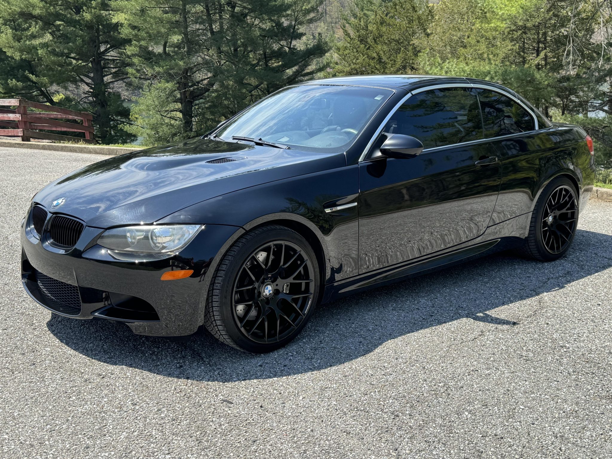 This 2008 BMW M3 convertible is powered by a 4.0-liter V8 paired with a seven-speed dual-clutch transmission and is finished in Jet Black over black Novillo leather. Equipment includes 19″ Style 359 wheels, a limited-slip differential, Dynamic Stability Control, adaptive xenon headlights, rear parking sensors, a retractable hardtop, heated front sport seats, dual-zone automatic climate control, and cruise control. This E93 M3 has 96k miles and is now offered by the selling dealer at no reserve with owner’s manuals and a clean Maryland title. The car is finished in Jet Black and features a retractable hardtop and adaptive xenon headlights as well as rain-sensing wipers, rear parking sensors, and quadruple exhaust outlets. The Carfax report lists “minor damage” to the front and front-left corner in a May 2020 entry. Scuffs are evident on the front bumper cover. The black-finished 19″ Style 359 wheels show curb marks and are mounted with Continental ExtremeContact DWS 06 tires. The car features Dynamic Stability Control (DSC). Braking is handled by four-wheel vented and cross-drilled discs measuring 14.2″ and 13.8″ front and rear, respectively. The heated front sport seats are upholstered in black Novillo leather, and Anthracite Sycamore Wood trim accents the dashboard and doors. Amenities include driver-seat position memory as well as a CD stereo, dual-zone automatic climate control, and cruise control. Wear is noted on the interior surfaces. The multi-function leather-wrapped steering wheel features paddle shifters along with tri-color stitching and frames an M-branded tachometer, a 200-mph speedometer, a central information display, and gauges for oil temperature and fuel level. The digital odometer indicates 96k miles, approximately 10k of which were added under current ownership. The 4.0-liter S65 V8 features double-VANOS variable valve timing and was factory rated at 414 horsepower and 295 lb-ft of torque. The oil was changed in March 2024. Power is sent to the rear wheels through a seven-speed M-DCT dual-clutch transmission and a Variable M Differential Lock. The Carfax report shows the aforementioned damage.