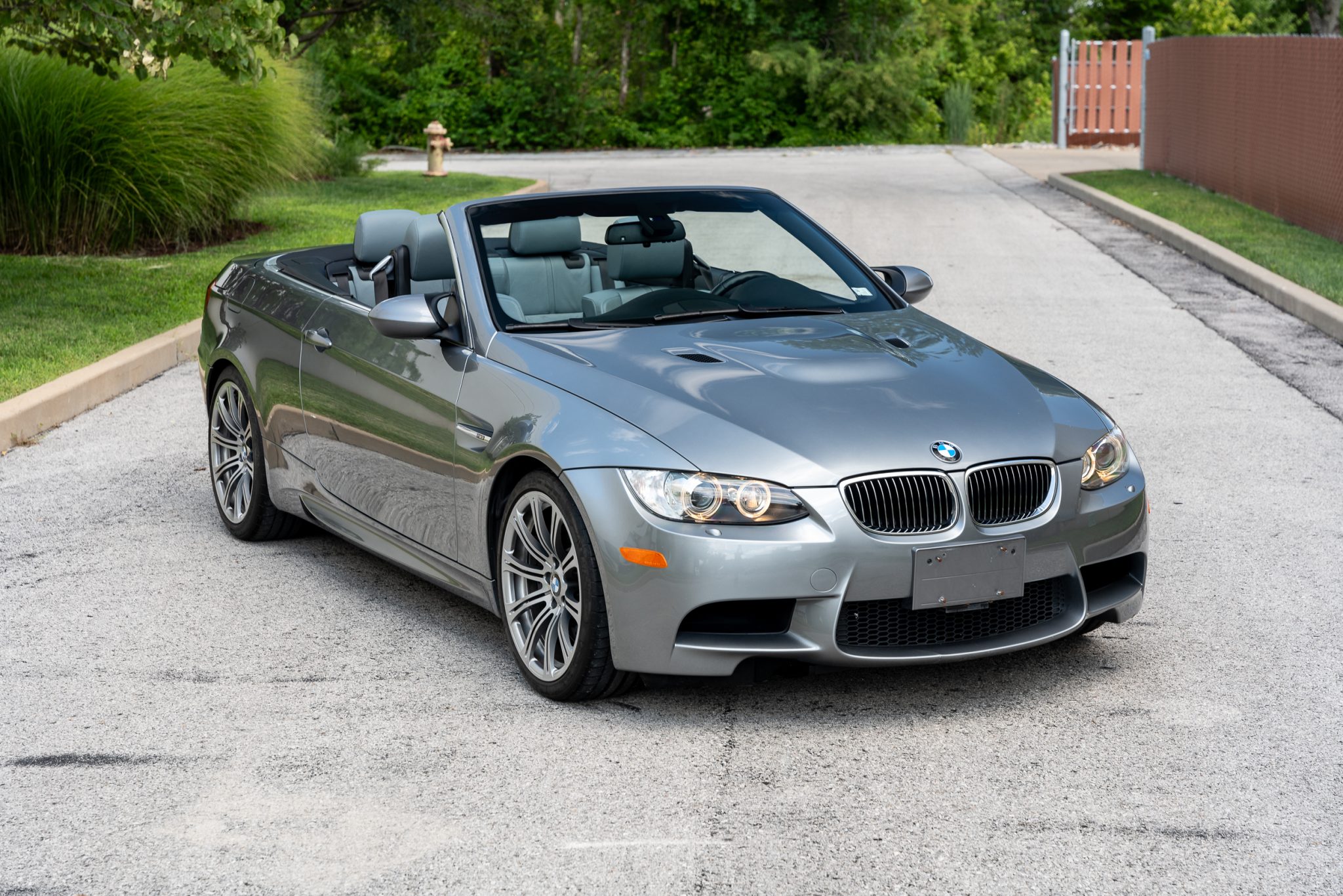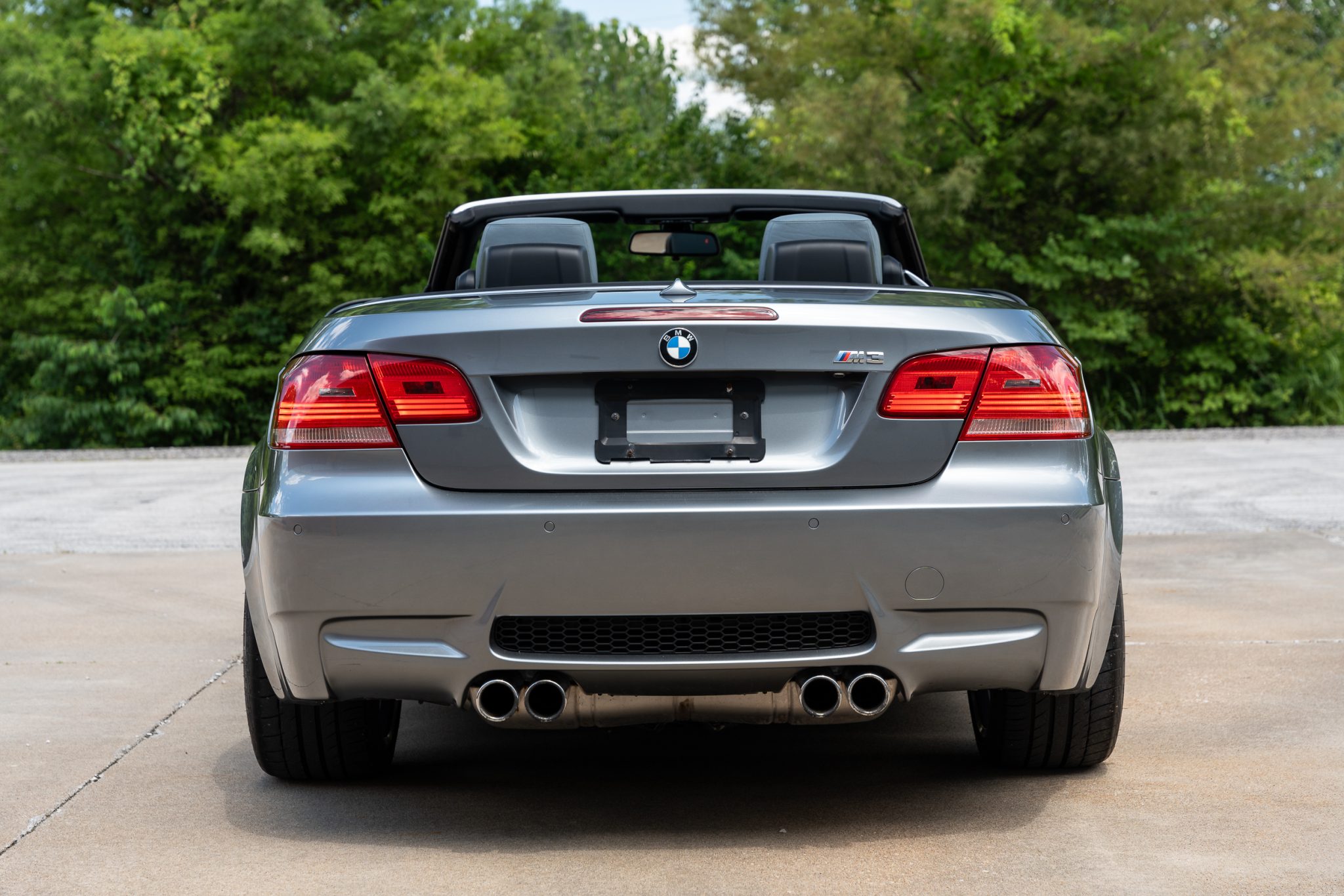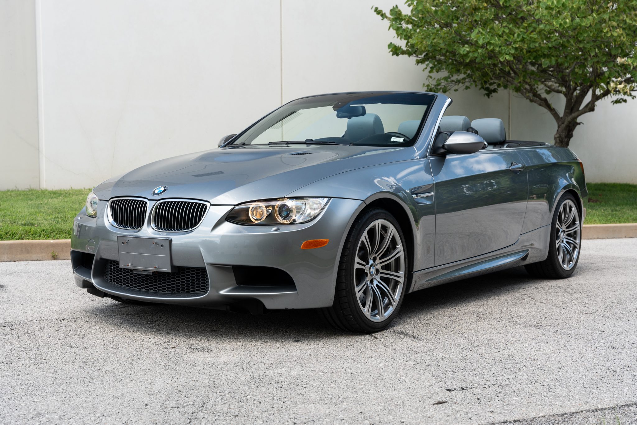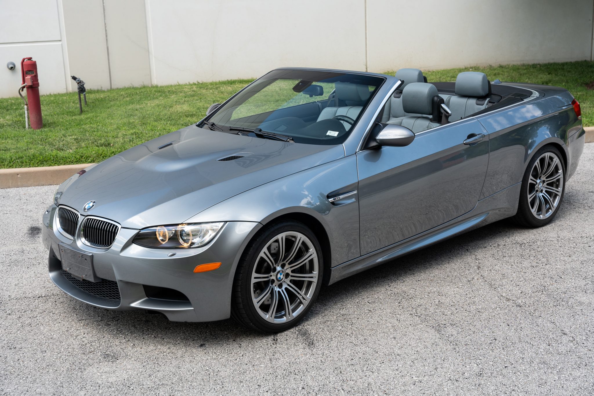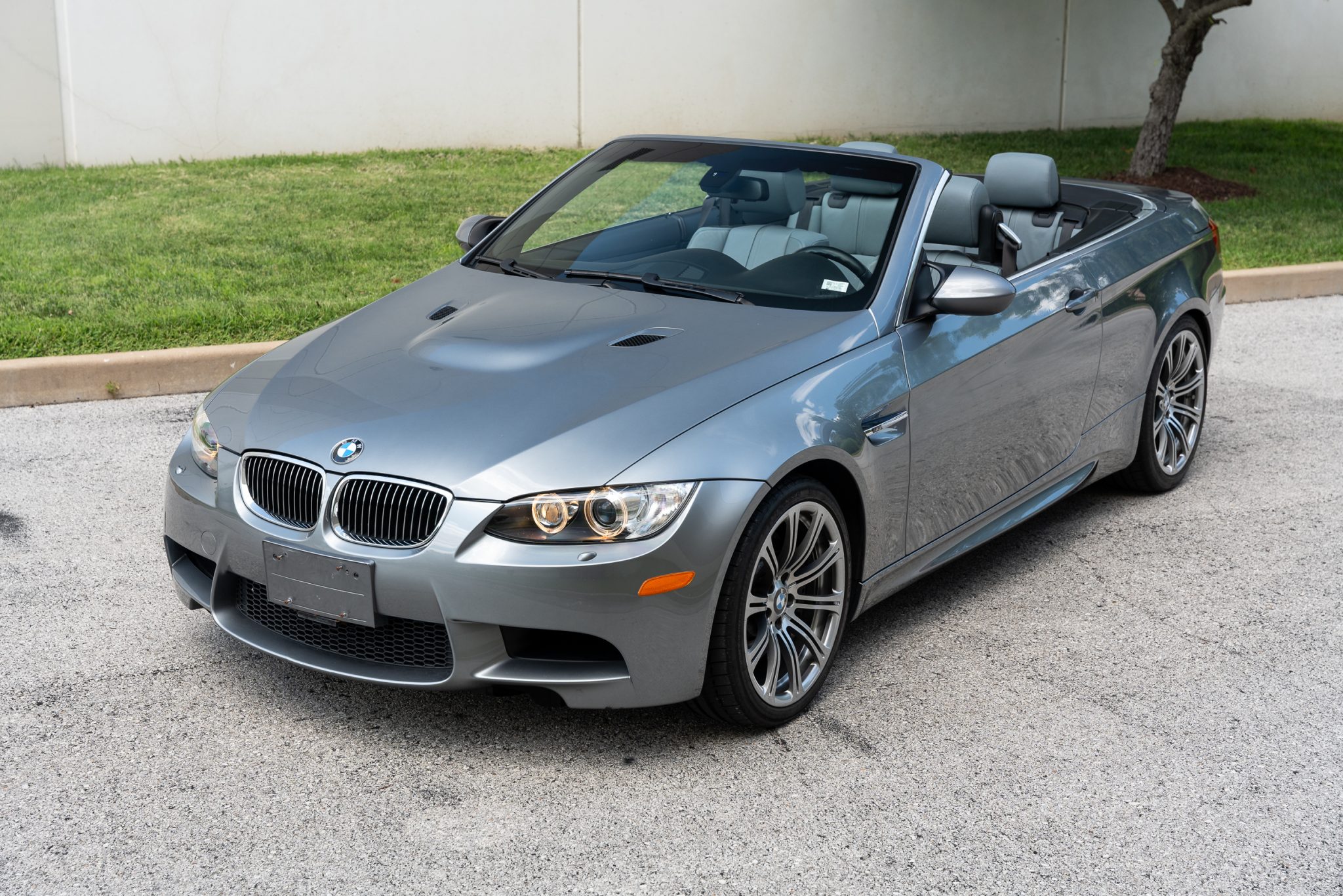 This 2008 BMW M3 convertible is finished in Space Grey Metallic over Palladium Silver Novillo leather and has 35k miles following history in Missouri since new. It is powered by a 4.0-liter V8 linked with a six-speed manual transmission and a limited-slip differential. Equipment includes the Cold Weather, Premium, and Technology packages as well as Electronic Damping Control, 19″ forged Style 220 wheels, adaptive xenon headlights, a retractable hardtop, rear parking sensors, heated and powered front sport seats, dual-zone automatic climate control, and iDrive with navigation. Recently acquired by the selling dealer, this E93 M3 is now offered with the owner’s manual, a clean Carfax report, and a clean Missouri title. The car is finished in Space Grey Metallic and features a retractable hardtop as well as adaptive xenon headlights, rain-sensing wipers, rear parking sensors, and quadruple exhaust outlets. The front air dam has a scrape on the driver’s side. Forged 19″ Style 220 wheels are mounted with older Michelin tires. The car features Electronic Damping Control (EDC) and Dynamic Stability Control (DSC), and braking is handled by four-wheel vented and cross-drilled discs measuring 14.2″ and 13.8″ front and rear, respectively. The heated power-adjustable front sport seats are upholstered in Palladium Silver Novillo leather, and Carbon Structure Leather trim accents the dashboard and doors. Amenities include iDrive with navigation as well as Comfort Access keyless entry, a CD stereo, dual-zone automatic climate control, and cruise control. The multi-function leather-wrapped steering wheel features tri-color stitching and frames an M-branded tachometer, a 200-mph speedometer, a central information display, and gauges for oil temperature and fuel level. The digital odometer indicates under 35k miles. The 4.0-liter S65 V8 features double-VANOS variable valve timing and was factory rated at 414 horsepower and 295 lb-ft of torque. Power is sent to the rear wheels through a six-speed manual transmission and a Variable M Differential Lock. The Carfax report is free of accidents or other reported damage.