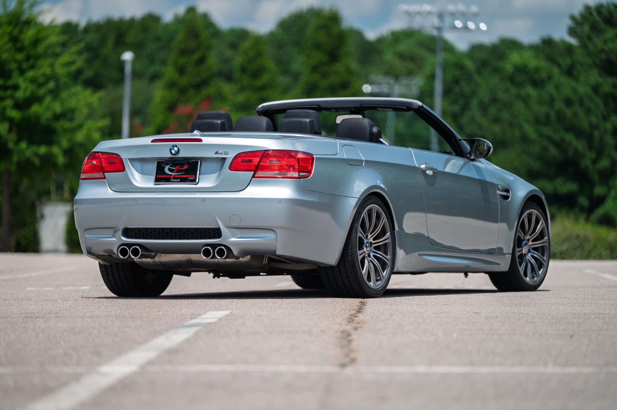 This 2008 BMW M3 convertible is powered by a 4.0-liter V8 paired with a six-speed manual transmission and is finished in Silverstone Metallic over black Novillo leather. The car was optioned with the Premium, Technology, and Cold Weather packages, and also features 19″ forged Style 220 wheels, a limited-slip differential, adaptive xenon headlights, a retractable hardtop, parking sensors, heated front seats, dual-zone automatic climate control, and cruise control. Acquired by the selling dealer in 2025, this E93 M3 has 14k miles and is now offered at no reserve with partial service records, a clean Carfax report, and a clean North Carolina title. The car is finished in Silverstone Metallic (A29) and features a retractable hardtop and adaptive xenon headlights as well as rain-sensing wipers, retractable headlight washers, power-folding side mirrors, rear parking sensors, and quadruple exhaust outlets. Forged 19″ Style 220 wheels are mounted with 245/35 front and 265/35 rear Lexan tires showing 2024 date codes. The car features Electronic Damping Control (EDC). Braking is handled by four-wheel vented and cross-drilled discs measuring 14.2″ and 13.8″ front and rear, respectively. The heated power-adjustable front sport seats are upholstered in black Novillo leather, and brushed Aluminum Shadow trim accents the dashboard and doors. Amenities include iDrive with navigation, Comfort Access keyless entry, BMW Assist, a CD stereo, dual-zone automatic climate control, and cruise control. The multifunction leather-wrapped steering wheel features tri-color stitching and frames an M-branded tachometer, a 200-mph speedometer, a central information display, and gauges for oil temperature and fuel level. The digital odometer indicates 14k miles. The 4.0-liter S65 V8 features double-VANOS variable valve timing and was factory rated at 414 horsepower and 295 lb-ft of torque. Service in January 2025 included an oil change, installing a new battery, and servicing the air conditioning system. Power is sent to the rear wheels through a six-speed manual transmission and a Variable M Differential Lock. The Carfax report shows no accidents or other damage and lists registration history in New Jersey, Ohio, and North Carolina.
