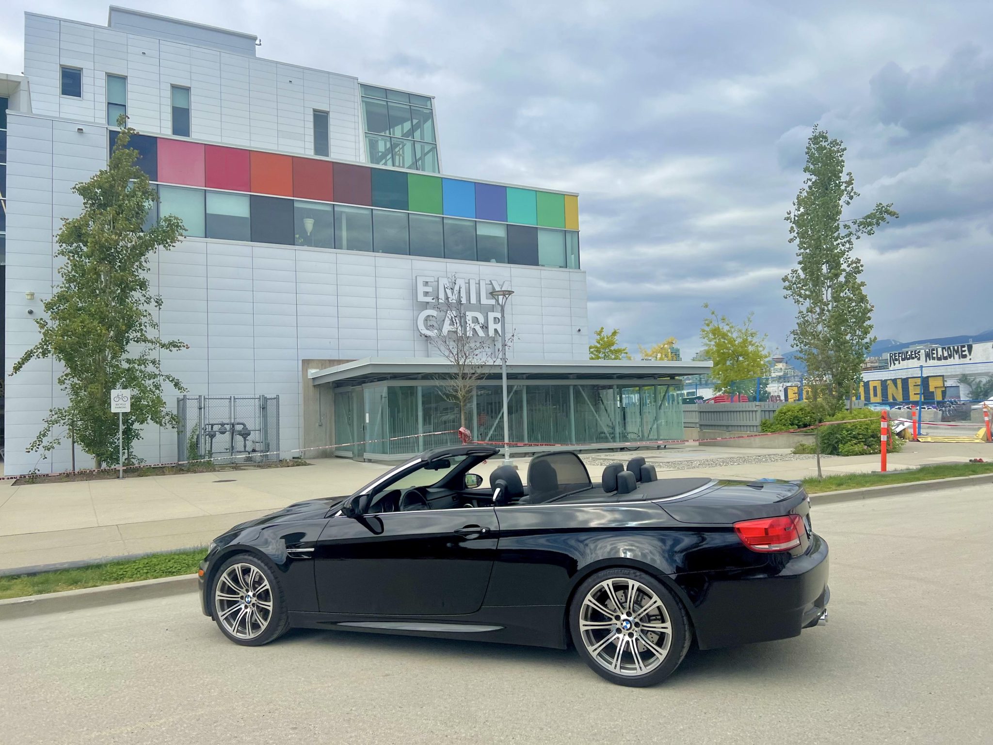This 2008 BMW M3 convertible is a Canadian-market example that is finished in black over matching leather, and it is powered by a 4.0-liter V8 paired with a six-speed manual transmission. Equipment includes 19″ forged Style 220 wheels, a limited-slip differential, xenon headlights, a retractable hardtop, parking sensors, heated front seats, dual-zone automatic climate control, navigation, cruise control, Comfort Access, and an M Audio sound system. The car was first registered in British Columbia and later spent time in Alberta before its acquisition by the selling dealer in 2022. This E93 M3 has 90k kilometers (~56k miles) and is now offered in Canada with manufacturer’s literature, two remote keys, a Carfax report, and British Columbia registration. The car is finished in Jet Black with a matching retractable hardtop. Additional equipment includes adaptive xenon headlights, rain-sensing wipers, rear parking sensors, and quadruple exhaust outlets. The selling dealer notes a scratch on the rear bumper was previously repaired. Forged 19″ Style 220 wheels are mounted with 245/35 front and 265/35 rear Michelin Pilot Super Sport tires. The car features Dynamic Stability Control (DSC). Braking is handled by four-wheel vented and cross-drilled discs measuring 14.2″ and 13.8″ front and rear, respectively. The heated and power-adjustable front sport seats are upholstered in black Novillo leather, and Carbon Structure Leather trim accents the dashboard, center console, and doors. Amenities include dual-zone automatic climate control, cruise control, Comfort Access keyless entry, navigation, a CD stereo, and an M Audio sound system. The multi-function leather-wrapped steering wheel features tri-color stitching and frames an M-branded tachometer, a 330-km/h speedometer, a central information display, and gauges for oil temperature and fuel level. The digital odometer indicates 90k kilometers (~56k miles), approximately 1k of which were added by the selling dealer. The 4.0-liter S65 V8 features double-VANOS variable valve timing and was factory rated at 414 horsepower and 295 lb-ft of torque. The throttle actuators were replaced in 2017. Power is sent to the rear wheels through a six-speed manual transmission and a Variable M Differential Lock. Additional underside images can be viewed in the gallery. Manufacturer’s literature is included in the sale along with two remote keys. The Carfax report shows no accidents or other damage and lists history in British Columbia and Alberta, Canada.
