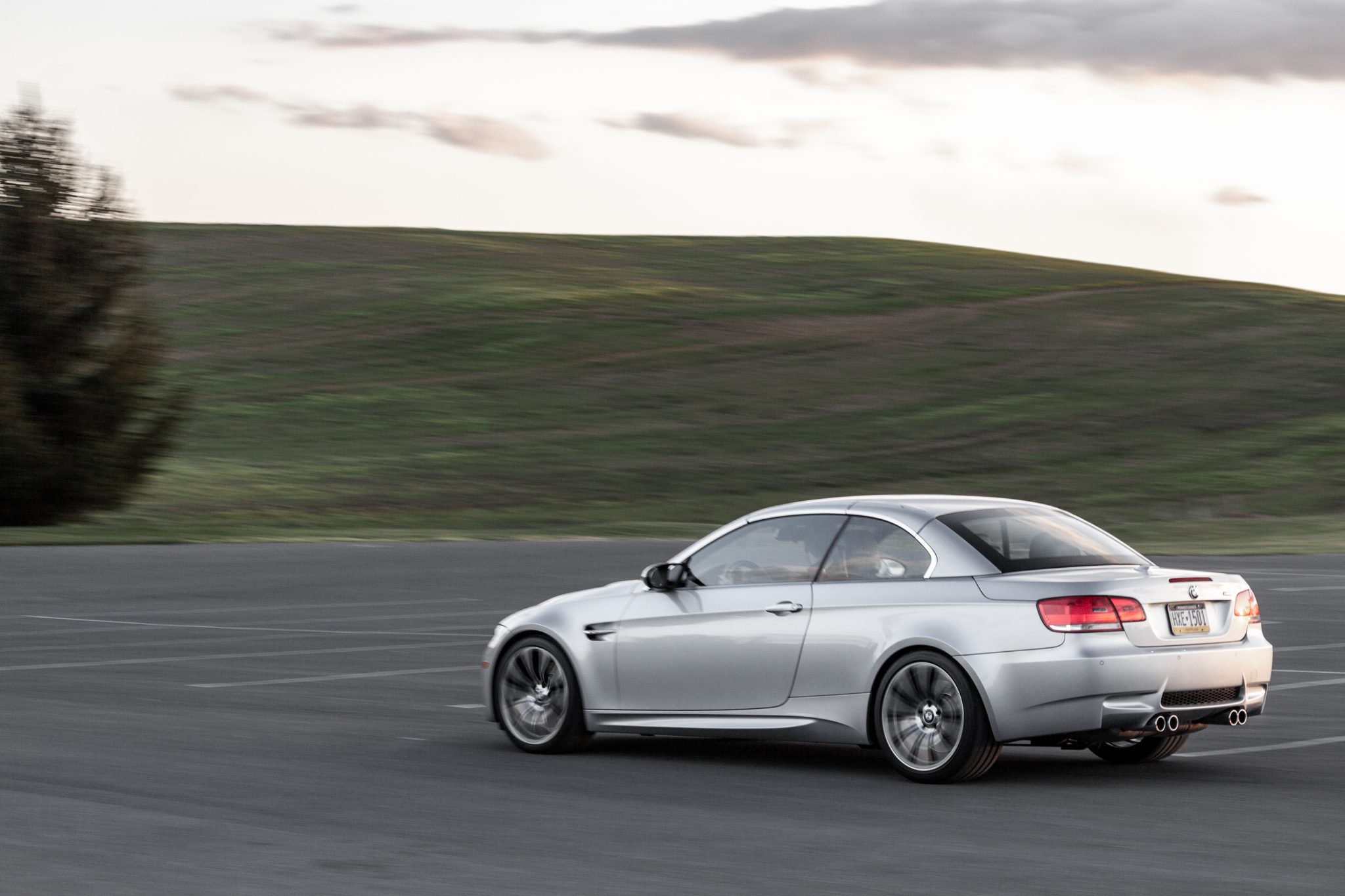 This 2008 BMW M3 convertible is finished in Silverstone II Metallic over black Novillo leather and is powered by a 4.0-liter S65 V8 paired with a six-speed manual transmission and a limited-slip differential. Equipment includes a retractable hardtop, forged 19″ double-spoke wheels, Electronic Damper Control, Park Distance Control, Comfort Access, adaptive xenon headlights, power-adjustable and heated front seats, dual-zone automatic climate control, iDrive with navigation, and a CD stereo. The car was first delivered to Paul Miller BMW of Wayne, New Jersey and relocated to Pennsylvania in 2011 when it was acquired by the seller, who is the second owner. Service in 2020 included an oil change and replacement of the battery, and the car now has under 31k miles. This E93 M3 convertible is now offered with manufacturer’s literature, recent service records, two remote key fobs, a Carfax report, and a clean Pennsylvania title in the seller’s name. The exterior is finished in Silverstone II Metallic (A29) and features a retractable hardtop, adaptive xenon headlights, rain-sensing wipers, rear parking sensors, and quad exhaust outlets. The Carfax report lists “very minor” damage occurring on the left-rear in October 2017, and noted flaws include a scratch on the left-rear quarter panel, dings on the rear bumper cover, and dents and scratches on the front lower spoiler. Close-ups of the body, paint, and trim can be viewed in the gallery below. Forged 19″ Style 220 M Double Spoke wheels wear Michelin Pilot Super Sport tires measuring 255/35 up front and 275/35 out back with 2014 and 2015 date codes. The car is equipped with Electronic Damper Control. Black Novillo leather covers the power-adjustable and heated front seats and the door panel inserts, and the matching black dashboard features aluminum trim. Interior amenities include dual-zone automatic climate control, cruise control, Comfort Access, and iDrive with navigation, a CD stereo, and cruise control. The multifunction steering wheel frames a 200-mph speedometer, an M-branded 9k-rpm tachometer, and gauges measuring oil temperature and fuel level. The digital odometer indicates under 31k miles, approximately 21k of which were added by the seller. The 4.0-liter S65 V8 was factory rated at 414 horsepower and 295 lb-ft of torque, which is sent to the rear wheels through a six-speed manual transmission and a limited-slip differential. Service in 2020 included replacement of the battery and an oil change, and recalls for the positive battery cable and blower motor wiring were performed in 2019. Additional underside images can be viewed in the gallery. The Carfax report shows two owners and history in New Jersey, Ohio, and Pennsylvania. The aforementioned damage is noted on the report in October 2017. Factory books and manuals are included in the sale along with recent service records and two remote key fobs.