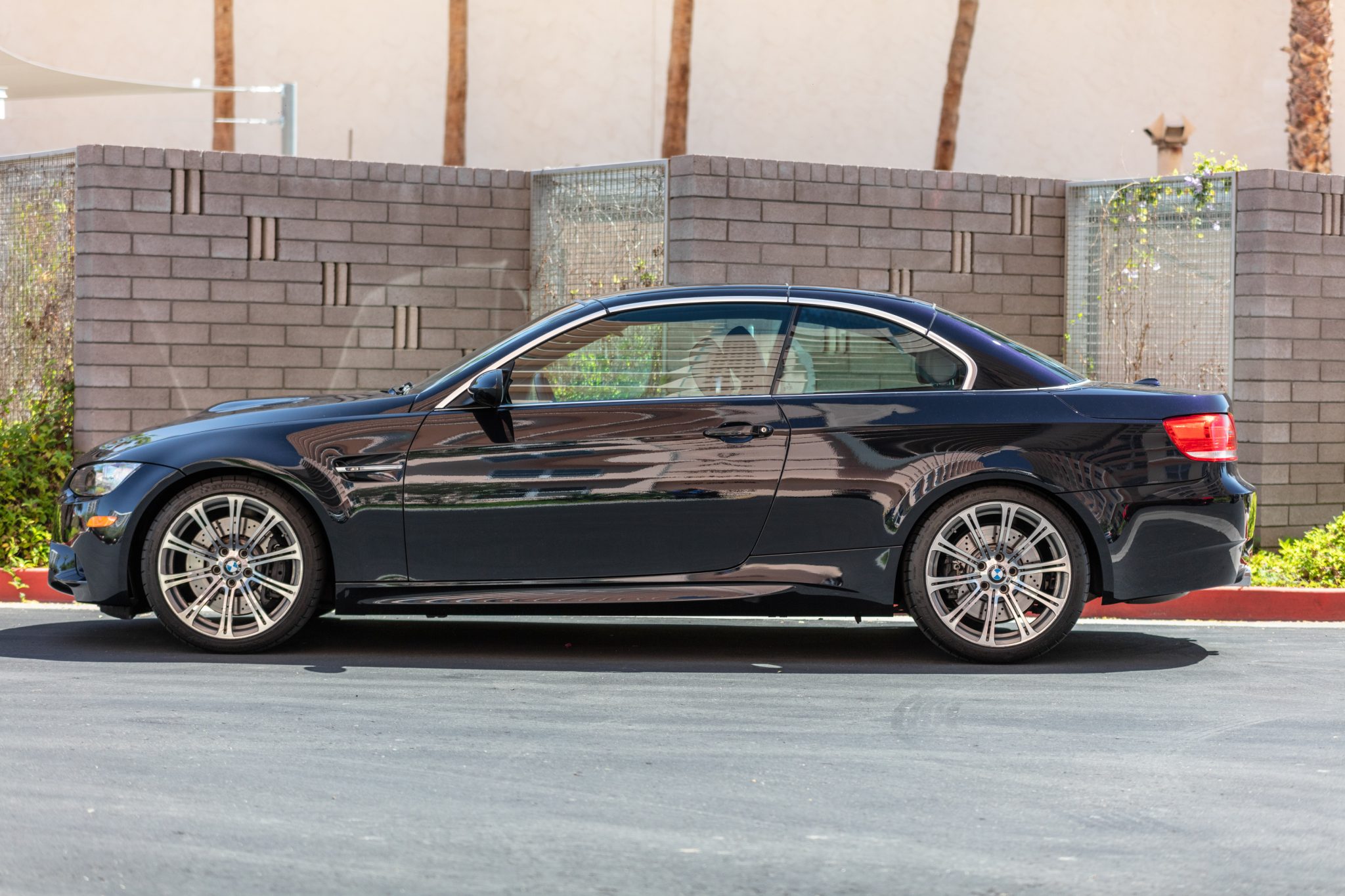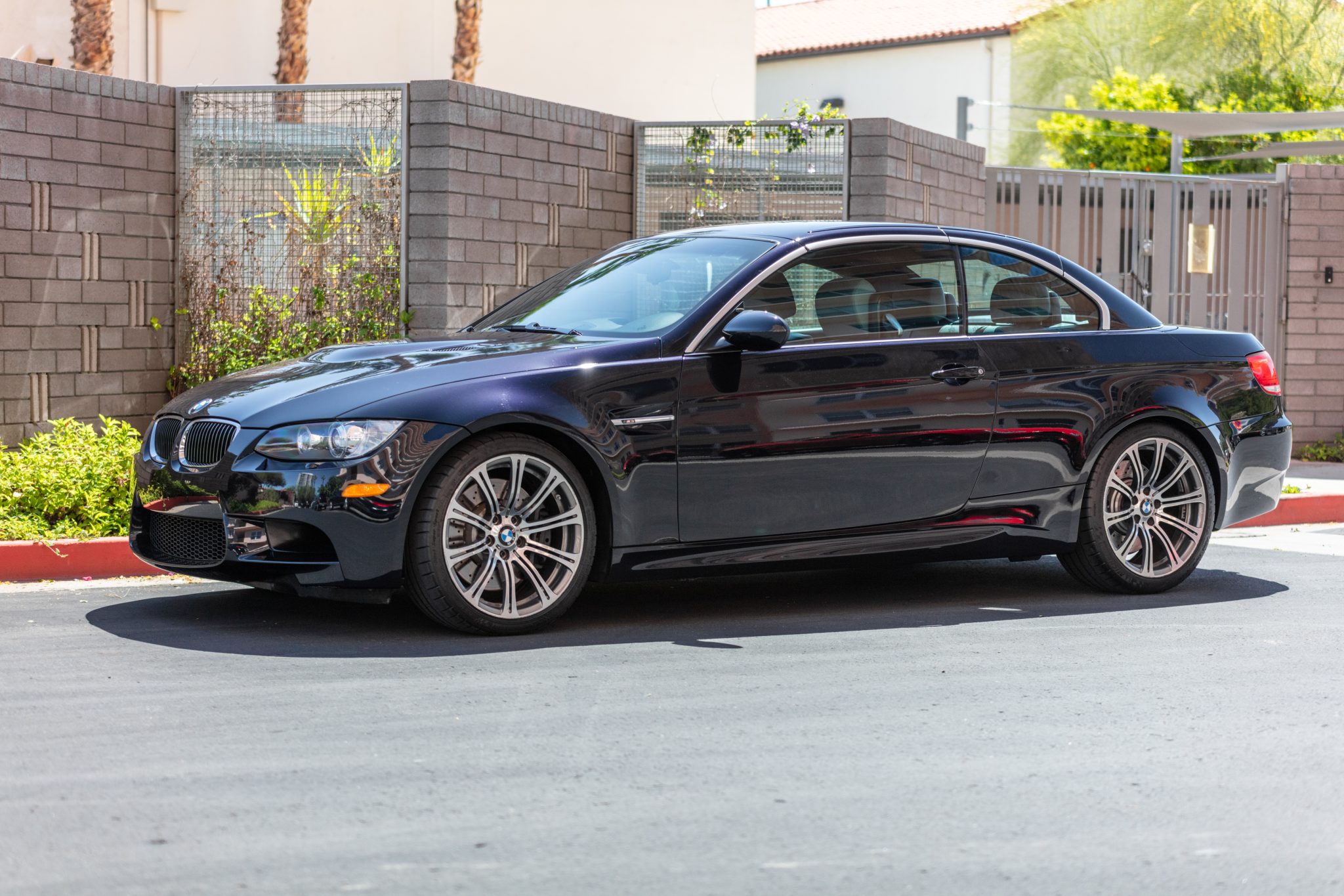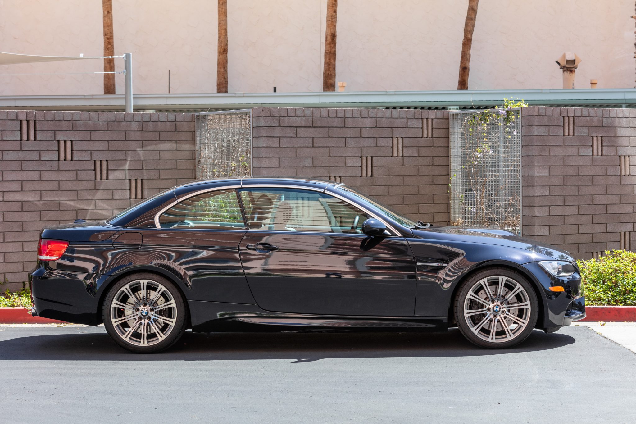 This 2008 BMW M3 convertible is powered by a 4.0-liter V8 paired with a six-speed manual transmission and a limited-slip differential, and it is finished in Jerez Black Metallic over Palladium Silver Novillo leather. Equipment includes 19″ Style 220 wheels, xenon headlights, a retractable hardtop, parking sensors, heated front seats, Comfort Access, navigation, dual-zone automatic climate control, and cruise control. The seller acquired the car in June 2011 and has since added approximately 14k of the car’s 36k indicated miles. This E93 M3 is now offered with the owner’s manual, service records, a car cover, a Carfax report, and a clean Arizona title in the name of the seller’s trust. The car is finished in Jerez Black Metallic (A73) and features a retractable hardtop as well as xenon headlights, rain-sensing wipers, rear parking sensors, and quad exhaust outlets. The Carfax report lists “minor to moderate damage” occurring to the car in May 2017, and additional “minor damage” is noted to the nose and rear in June 2018 and November 2019, respectively. The seller reports that dings and scrapes were repaired. The 19″ Style 220 wheels are wrapped in Michelin Pilot Super Sport tires. The car features Dynamic Stability Control (DSC). Braking is handled by four-wheel vented and cross-drilled discs measuring 14.2″ and 13.8″ front and rear, respectively. The heated power-adjustable sport seats are upholstered in Palladium Silver Novillo leather, and Brushed Aluminum Shadow trim accents the dashboard, center console, and doors. Amenities include iDrive with navigation, a CD stereo, Comfort Access, dual-zone automatic climate control, and cruise control. The multi-function leather-wrapped steering wheel features tri-color stitching and frames an M-branded tachometer, a 200-mph speedometer, a central information display, and gauges for coolant temperature and fuel level. The digital odometer indicates 36k miles, approximately 14k of which were added under current ownership. The 4.0-liter S65 V8 features double-VANOS variable valve timing and was factory rated at 414 horsepower and 295 lb-ft of torque. The seller reports that the battery was replaced in March 2022, and the thermostat is said to have been replaced in September 2018 along with the fuel pressure sensor. Power is sent to the rear wheels through a six-speed manual transmission and a Variable M Differential Lock. Additional underside photographs are available in the gallery below. The Carfax report shows the aforementioned damage reports as well as registration history in California and Arizona.