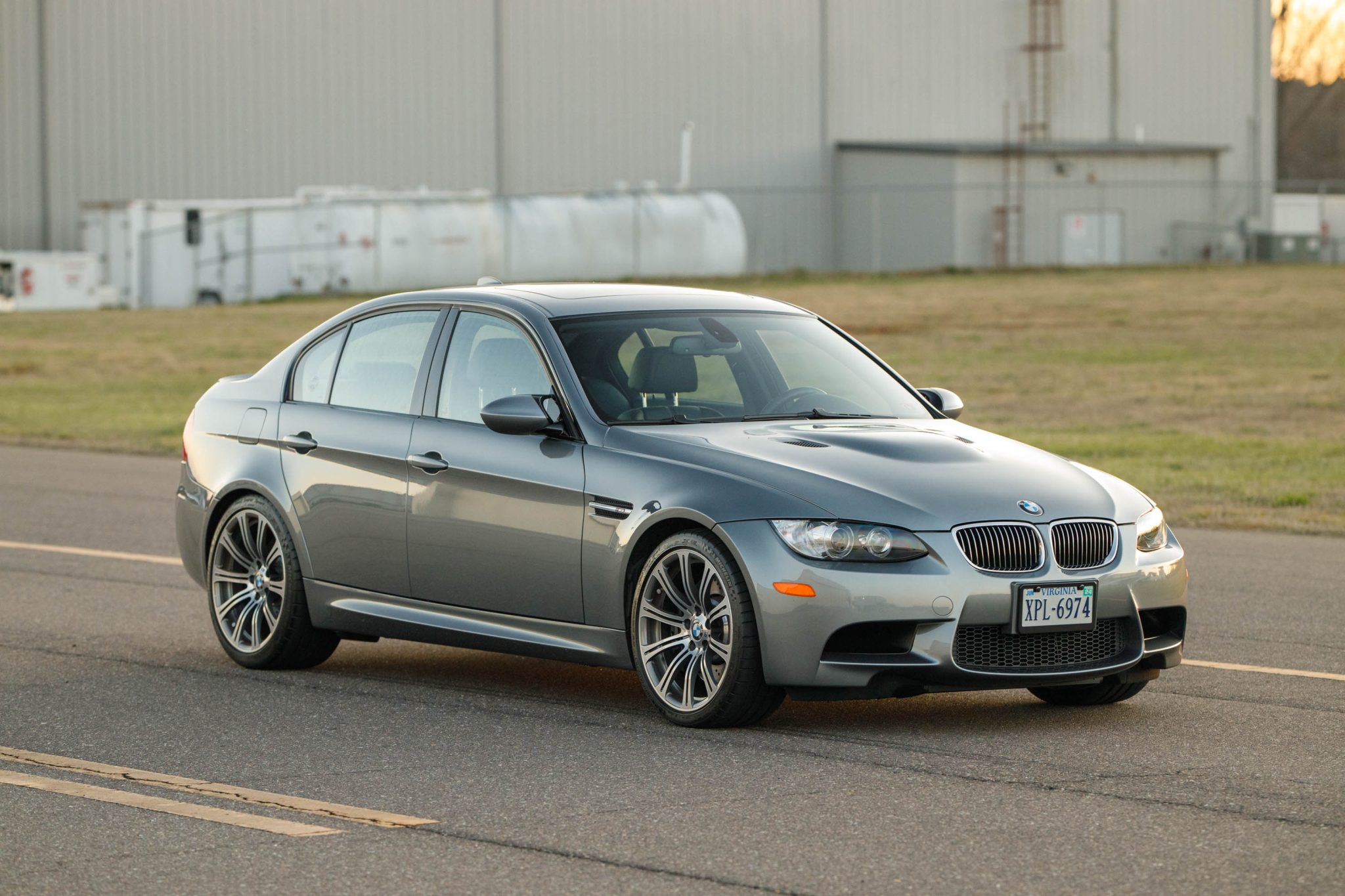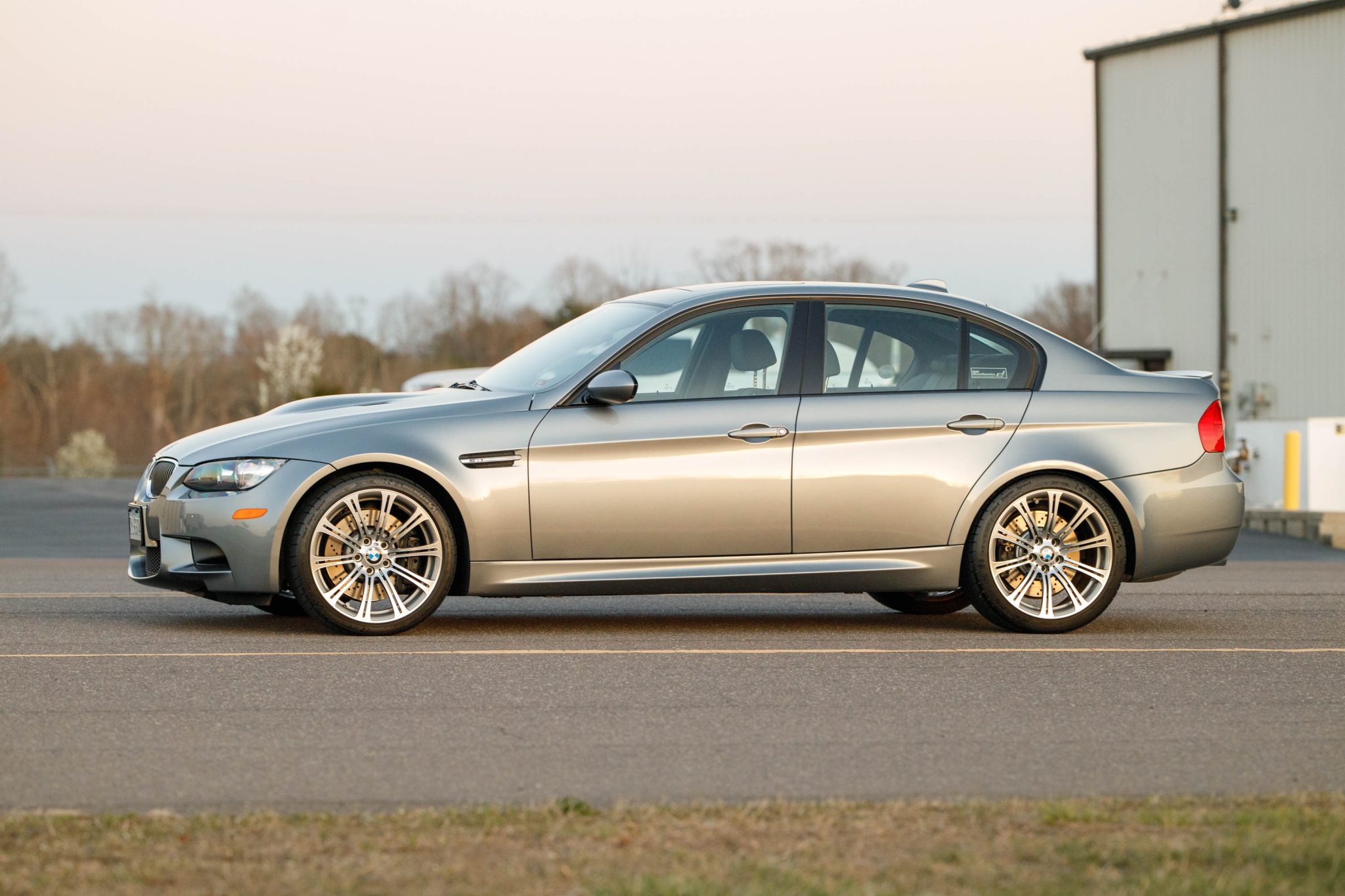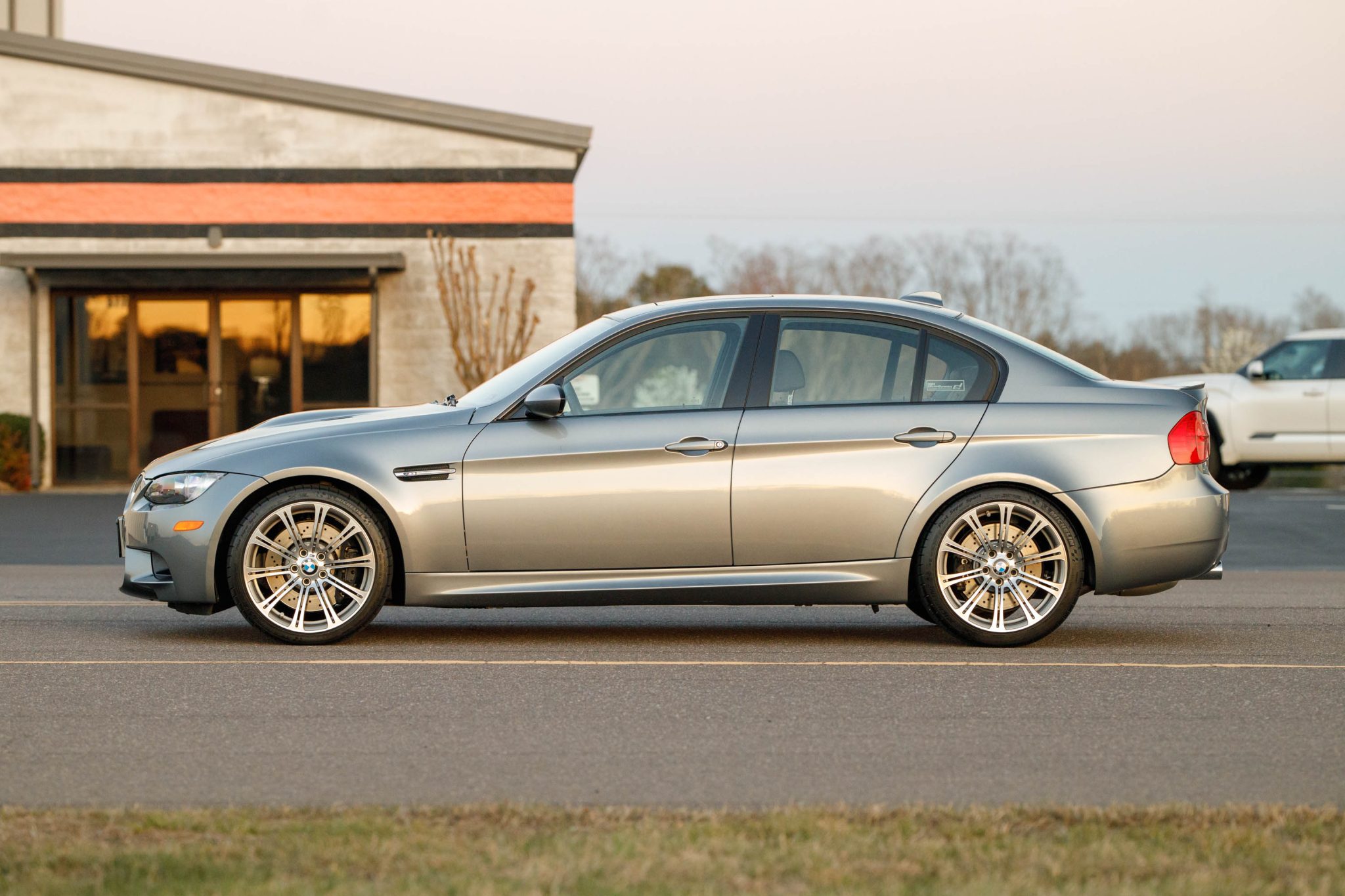 This 2009 BMW M3 sedan was purchased new by the current owner at BMW of Sterling, Virginia, and it now has 24k miles. It is powered by a 4.0-liter S65 V8 paired with a six-speed manual transmission and is finished in Space Gray Metallic over black Novillo leather. Equipment includes the Premium Package, 19″ forged Style 220 wheels, a limited-slip differential, adaptive xenon headlights, heated and powered front sport seats, and a power-operated sunroof. This E90 M3 is now offered in North Carolina on dealer consignment with a window sticker, service records, spare parts, a BMW-branded car cover, a clean Carfax report, and a clean Virginia title. The car is finished in Space Gray Metallic and features Shadowline trim and adaptive xenon headlights as well as rain-sensing wipers, a glass sunroof, a trunk lid spoiler, power-folding mirrors, and quadruple exhaust outlets. The selling dealer notes that the hood struts were replaced in preparation for the sale. Forged 19″ Style 220 wheels are mounted with Michelin Pilot Super Sport tires the selling dealer recommends replacing due to age. A spare wheel and tire are included in the sale, and the tire has sidewall damage. Braking is handled by four-wheel vented and cross-drilled discs measuring 14.2″ and 13.8″ front and rear, respectively. Dynamic Stability Control (DSC) was equipped as standard. The heated front sport seats are upholstered in black Novillo leather, and Anthracite Sycamore Wood trim accents the dashboard and doors. The car was ordered without iDrive, and amenities comprise a BMW Professional CD stereo, an iPod and USB adapter, satellite radio capability, dual-zone automatic climate control, and cruise control. Other interior equipment includes adjustable seat width and lumbar support as well as adjustable front armrests, a rear center armrest, and folding rear-seat headrests. A ZHP-specification shift knob has been installed, and a stock shift knob is included in the sale. The multi-function leather-wrapped steering wheel features tri-color stitching and frames an M-branded tachometer, a 200-mph speedometer, a central information display, and gauges for oil temperature and fuel level. The digital odometer indicates 24k miles. The 4.0-liter S65 V8 features double-VANOS variable valve timing and was factory rated at 414 horsepower and 295 lb-ft of torque. “Signs of aging” were noted on the bank one and bank two oxygen sensors during a recent pre-purchase inspection. Power is sent to the rear wheels through a six-speed manual transmission and a Variable M Differential Lock. The window sticker notes initial delivery to the BMW Performance Center in Greer, South Carolina, and lists factory equipment, colors, options, and a total suggested retail price of $63,620. Service records are also included in the sale along with a car cover and a spare shift knob and boot. The Carfax report is free of accidents or other reported damage.