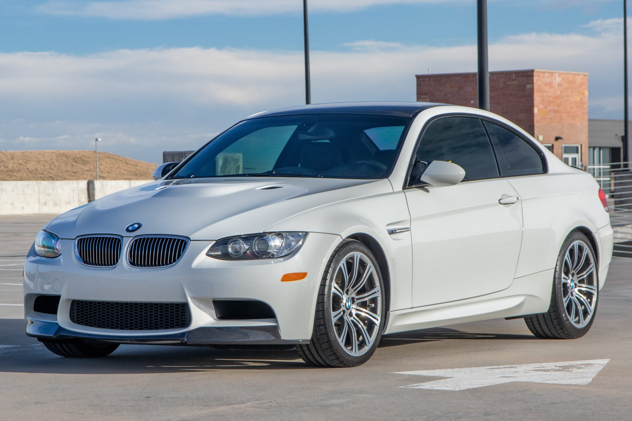 This 2009 BMW M3 coupe remained registered in California from new until 2022 and now has 8k miles. The car is powered by a 4.0-liter V8 paired with a seven-speed dual-clutch transmission and has been modified with a Vorsteiner front lip, rear diffuser, and rear spoiler in addition to ECS Tuning carbon-fiber interior trim. It is finished in Alpine White III over Black Novillo leather and is equipped with the Premium Package, Technology Package, 19″ forged Style 220 wheels, a limited-slip differential, xenon headlights, parking sensors, heated front seats, navigation, dual-zone automatic climate control, and cruise control. This E92 M3 is offered with the owner’s manual, service records, a clean Carfax report, and a clean Colorado title in the seller’s name. The car is finished in Alpine White III and features Shadowline trim and adaptive xenon headlights as well as rain-sensing wipers, a carbon-fiber roof panel, a trunk lid spoiler, rear parking sensors, and quadruple exhaust outlets. A Vorsteiner front lip, rear diffuser, and rear spoiler are also installed. Touch-up paint has been applied to the rear bumper and the front splitter is cracked. Forged 19″ Style 220 wheels are mounted with Michelin Pilot Super Sport tires that were mounted in August 2022. The car features Dynamic Stability Control (DSC). Braking is handled by four-wheel vented and cross-drilled discs measuring 14.2″ and 13.8″ front and rear, respectively. A brake fluid flush was carried out in November 2022. The heated front sport seats are upholstered in Black Novillo leather, and ECS Tuning carbon-fiber interior trim accents the dashboard, doors, and center console. Amenities include iDrive with navigation, Comfort Access keyless entry, a CD stereo, dual-zone automatic climate control, and cruise control. The shifter trim is cracked. The multi-function leather-wrapped steering wheel features paddle shifters along with tri-color stitching and frames an M-branded tachometer, a 200-mph speedometer, a central information display, and gauges for oil temperature and fuel level. The digital odometer indicates 8k miles. The 4.0-liter S65 V8 features double-VANOS variable valve timing and was factory rated at 414 horsepower and 295 lb-ft of torque. In February 2023 an oil change and coolant flush were performed and the washer pump was replaced. An exterior air temperature sensor was replaced and the air conditioning refrigerant was recharged in February 2024. The seller notes that the heater core leaks and the battery is due for replacement. Power is sent to the rear wheels through a seven-speed M-DCT dual-clutch transmission and a Variable M Differential Lock. The Carfax report is free of accidents or other reported damage.