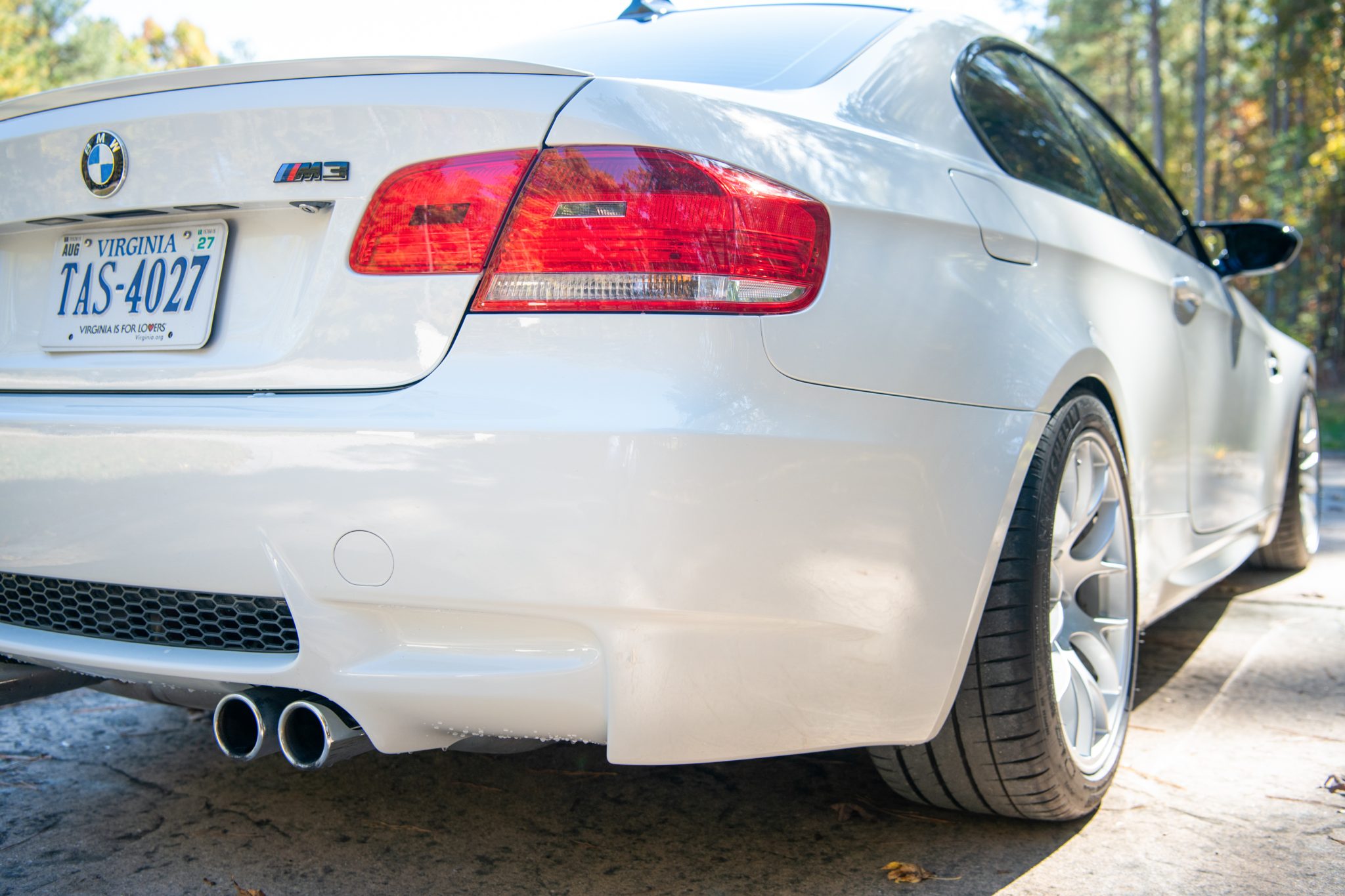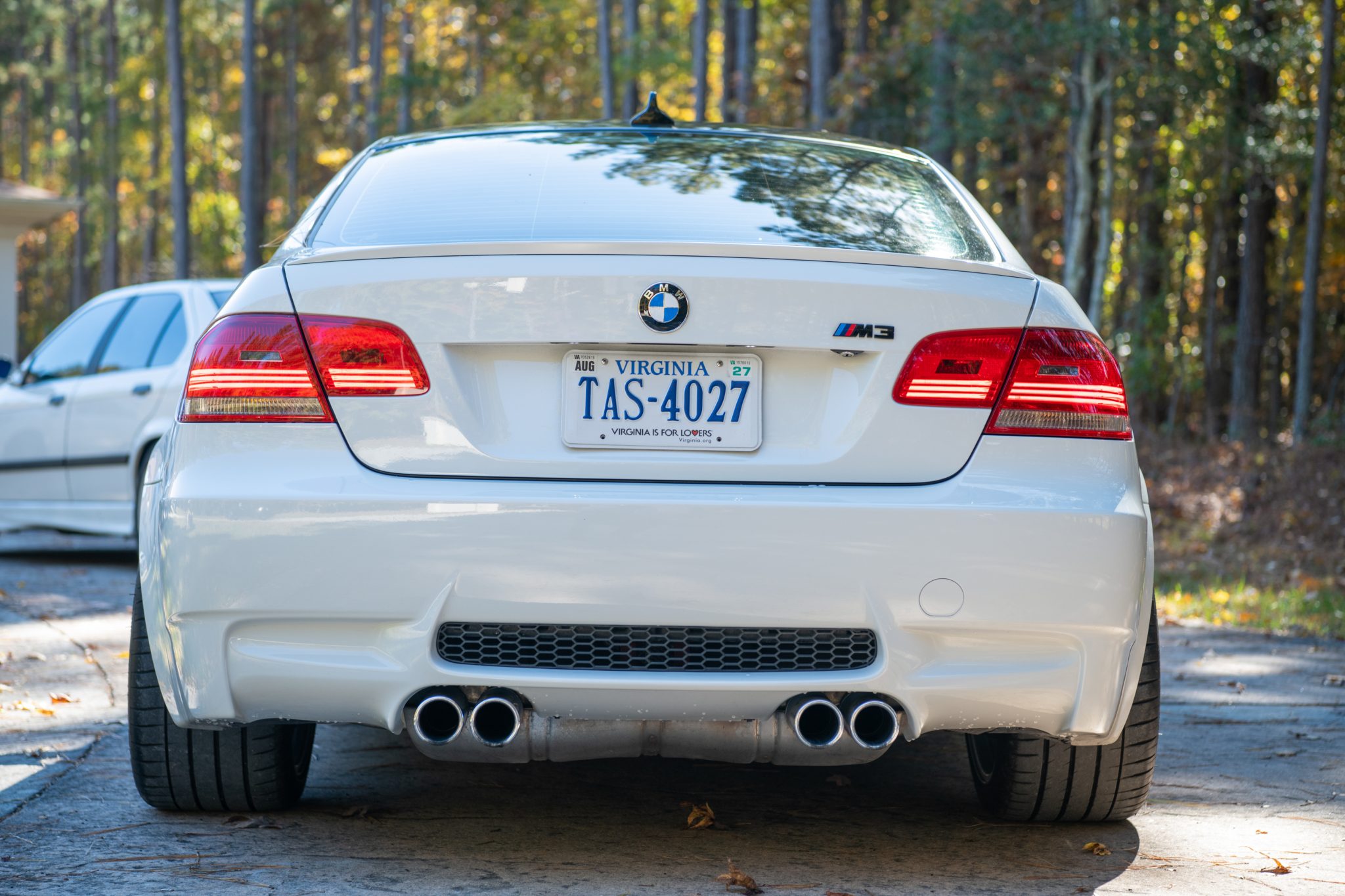 This 2009 BMW M3 coupe has 33k miles and was optioned without iDrive. Powered by a 4.0-liter V8 paired with a six-speed manual transmission, the car is finished in Alpine White over black Novillo leather upholstery. Equipment includes 18″ alloy wheels, a limited-slip differential, xenon headlights, a carbon-fiber roof, heated front seats, dual-zone automatic climate control, and cruise control. Purchased by the seller in 2025, this E92 M3 is offered with manufacturer’s literature, a Carfax report, and a clean Virginia title in the seller’s name. The car is finished in Alpine White (300) and features Shadowline trim and adaptive xenon headlights as well as a carbon-fiber roof, rain-sensing wipers, a trunk lid spoiler, and quadruple exhaust outlets. A December 2023 entry on the Carfax report lists “minor damage” with no additional information. The 18″alloy wheels are mounted with Michelin Pilot Sport tires that have 2021 and 2024 date codes. The car features Dynamic Stability Control (DSC). Braking is handled by four-wheel vented and cross-drilled discs measuring 14.2″ and 13.8″ front and rear, respectively. The brake pads and rotors were replaced in 2025. The heated power-adjustable front sport seats are upholstered in black Novillo leather, and Carbon Structure Leather trim accents the dashboard and doors. Amenities include a CD stereo, dual-zone automatic climate control, and cruise control. There is wear on the driver’s door handle. The multifunction leather-wrapped steering wheel features tri-color stitching and frames an M-branded tachometer, a 200-mph speedometer, a central information display, and gauges for oil temperature and fuel level. The digital odometer indicates 33k miles, approximately 1,200 of which were added under current ownership. The 4.0-liter S65 V8 features double-VANOS variable valve timing and was factory rated at 414 horsepower and 295 lb-ft of torque. The Carfax report indicates that the valve cover gaskets, spark plugs, and thermostat were replaced in March 2024, and the battery was replaced and the oil was changed in July 2025. Power is sent to the rear wheels through a six-speed manual transmission and a Variable M Differential Lock. The Carfax report lists the aforementioned December 2023 damage.