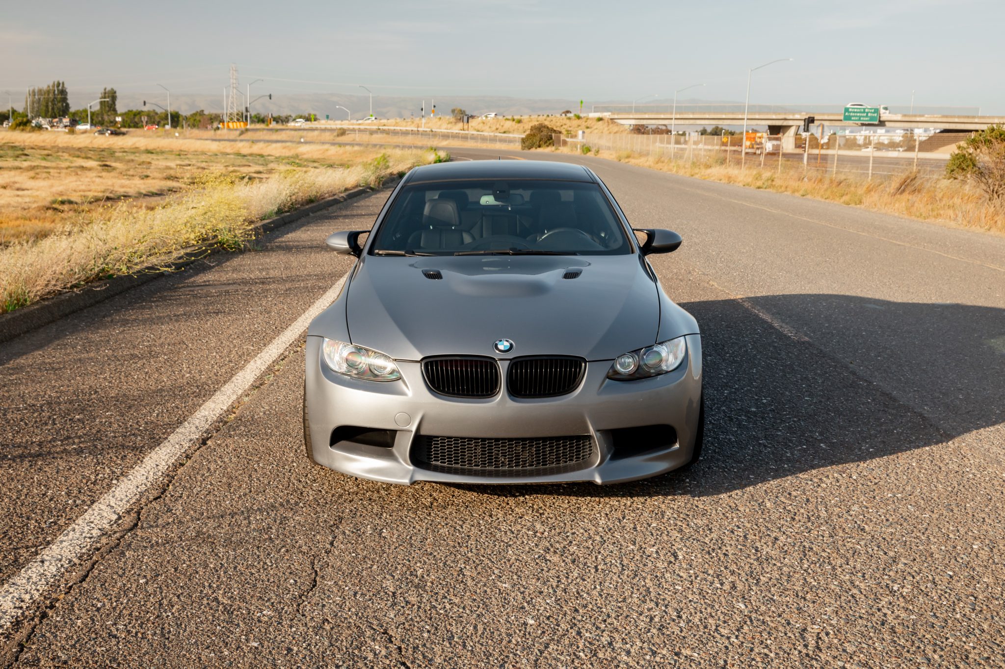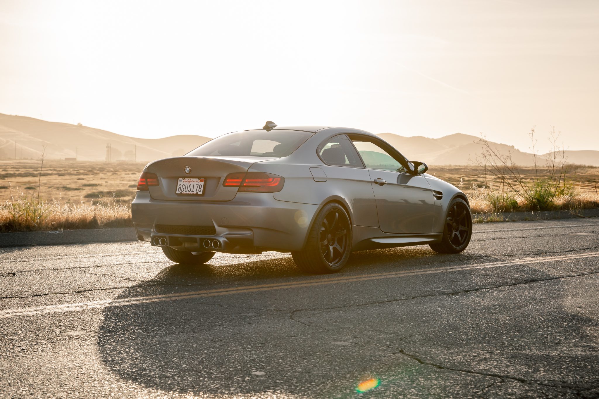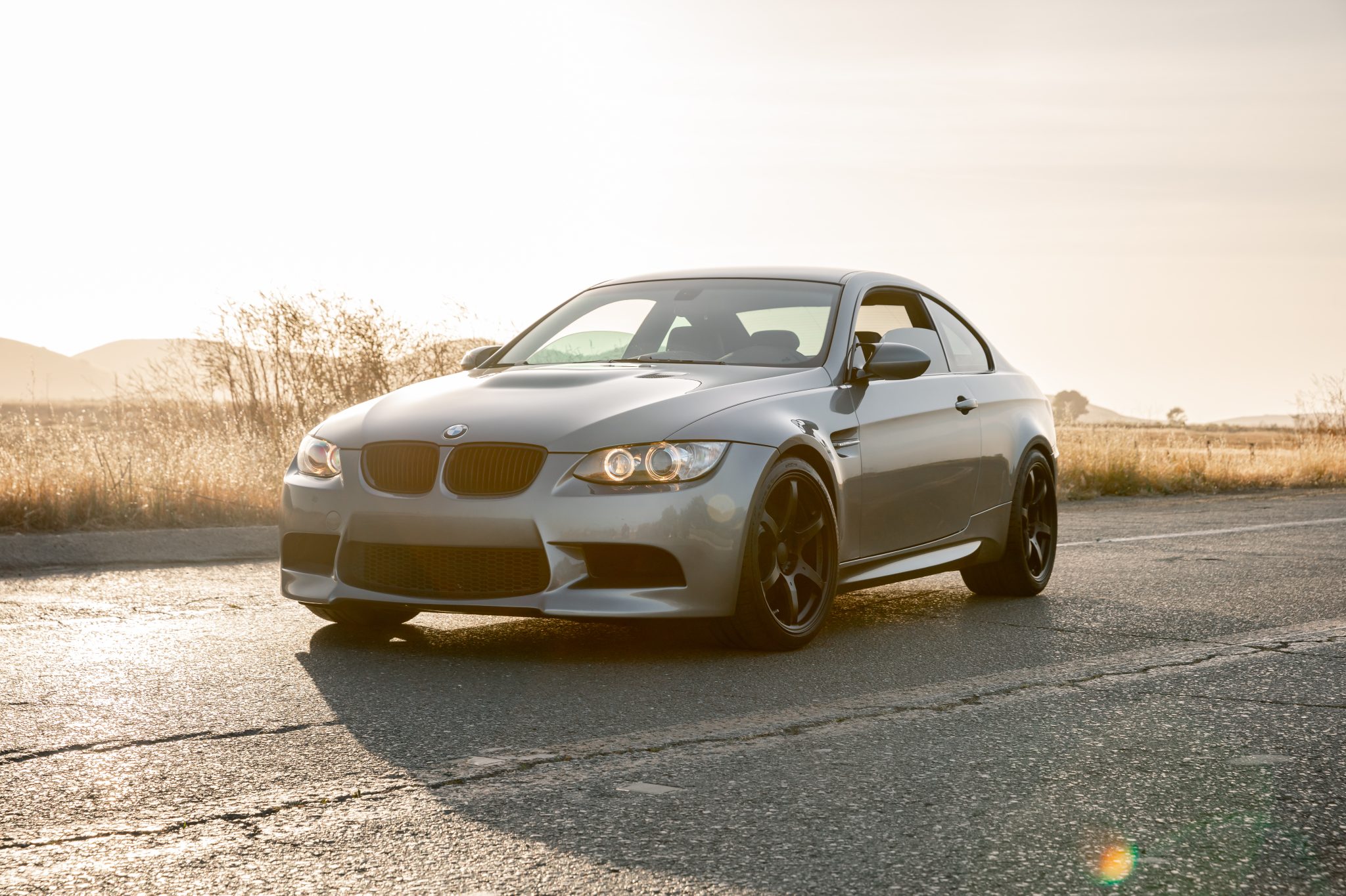 This 2009 BMW M3 coupe is powered by a 4.0-liter V8 paired with a seven-speed dual-clutch transmission and is finished in Space Gray Metallic over Black Novillo leather. Additional equipment includes the Premium and Technology Packages, 19″ RAYS VR G2, a limited-slip differential, xenon headlights, an E46 CSL-style trunk lid, heated front seats, dual-zone automatic climate control, cruise control, and a Dinan underdrive pulley, Stage 1 ECU tune, and suspension components. The seller acquired the car on BaT in June 2022 and has since replaced the throttle actuators, spark plugs, oil pan gasket, coolant, engine mounts, and fuel tank breather valve, and installed Mahle connecting rod bearings and ARP connecting rod bolts. This E92 M3 has 83k miles and is now offered with a window sticker, service records, a clean Carfax report, and a clean California title in the seller’s name. The car is finished in Space Gray Metallic and features Shadowline trim and adaptive xenon headlights as well as rain-sensing wipers, a carbon-fiber roof panel, a trunk lid spoiler, and quadruple exhaust outlets. An E46 CSL-style trunk lid, tinted taillight lenses, a body-color-painted rear diffuser, and a molded front lip spoiler affixed to the factory front bumper are installed as well. Records indicate the rear bumper was repaired in 2012 and that the front grille and halo bulbs were replaced in 2015. RAYS VR G2 19″ wheels are mounted with Continental ExtremeContact tires that measure 275/30 up front and 305/30 at the back. The car is said to be equipped with a Dinan Stage 1 suspension system, along with a Dinan front sway bar, strut tower braces, and camber plates. The rear brake rotors and pads were reportedly replaced in August 2022. The heated power-adjustable front sport seats are trimmed in Black Novillo leather upholstery and blue-gray Brushed Aluminum Shadow trim accents the dashboard and doors. Amenities include iDrive with navigation, Comfort Access keyless entry, a CD stereo, dual-zone automatic climate control, cruise control, and aftermarket aluminum pedal covers. The multi-function leather-wrapped steering wheel features paddle shifters and tri-color stitching and frames an M-branded tachometer, a 200-mph speedometer, a central information display, and gauges for oil temperature and fuel level. The digital odometer indicates 83k miles, approximately 2,500 of which were added by the seller. The 4.0-liter S65 V8 features double-VANOS variable valve timing and was modified with a Dinan underdrive pulley and Stage 1 engine management tune under previous ownership. Service performed under current ownership included replacement of the throttle actuators, spark plugs, oil pan gasket, coolant, engine mounts, and fuel tank breather valve, installation of Mahle connecting rod bearings and ARP connecting rod bolts, and an oil change. Power is sent to the rear wheels through a seven-speed M-DCT dual-clutch transmission and a limited-slip differential with 3.62:1 gears. In July 2022 the transmission oil pan and gasket, panel filter, side cartridge filter, and transmission fluid were replaced, and the differential is said to have been serviced in October 2022. The window sticker shows initial delivery to Stevens Creek BMW of Santa Clara, California, and lists factory colors, standard features, options, and a total suggested retail price of $72,475. Two keys, a Dinan intake, the OEM trunklid, and service records are also included in the sale. The Carfax report shows no accidents or other damage and lists registration, service, and emissions inspection history in California.