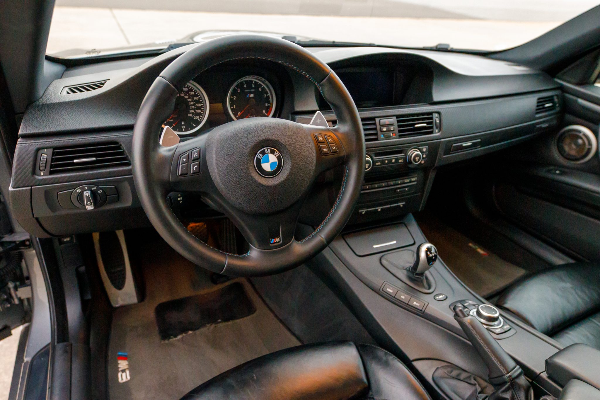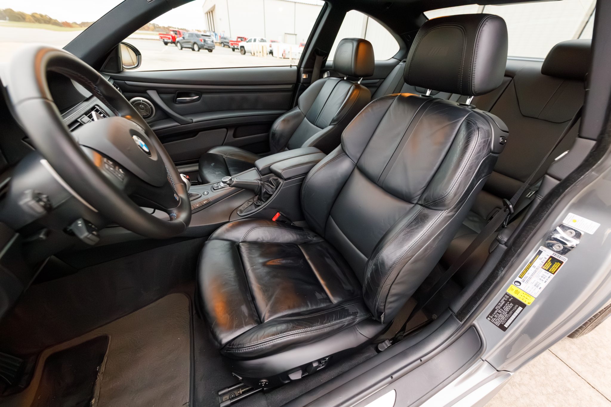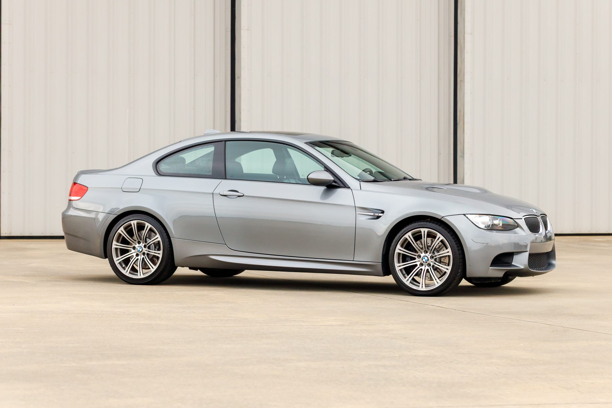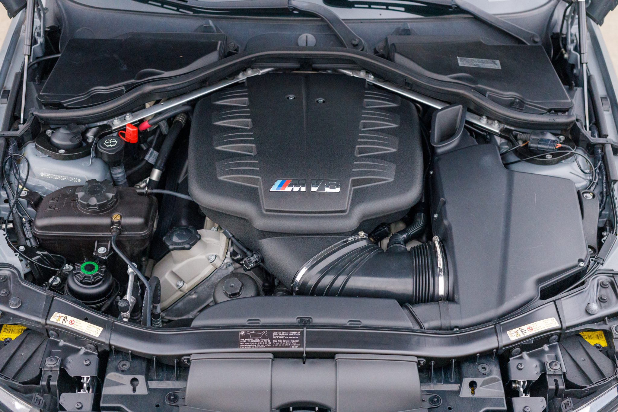 This 2009 BMW M3 coupe was first registered in North Carolina and has remained in the state following the current owner’s acquisition in 2020. Work since then involved installing ARP connecting rod bolts and Bilstein B6 shock absorbers in addition to servicing the transmission and replacing the rod bearings, throttle valve actuators, oil pan gasket, thermostat, DMTL pump, upper timing chain gaskets, valve cover gaskets, spark plugs, and various brake components. Finished in Space Gray Metallic over Black Novillo leather, the car is powered by a 4.0-liter V8 linked with a seven-speed dual-clutch transmission and a limited-slip differential. Further equipment includes 19″ forged Style 220 wheels, a sunroof, xenon headlights, heated front seats, and iDrive with navigation. This E92 M3 has 57k miles and is now offered on dealer consignment with manufacturer’s literature, partial service records, a clean Carfax report, and a clean North Carolina title. The car is finished in Space Gray Metallic (A52) and features Shadowline trim and adaptive xenon headlights as well as rain-sensing wipers, a glass sunroof, a trunk lid spoiler, and quadruple exhaust outlets. The front bumper cover reflectors have been removed and replaced with body-color caps. Forged 19″ Style 220 wheels are wrapped in 245/35 front and 265/35 rear Michelin Pilot Sport A/S 3 tires showing a mixture of 2018 and 2019 date codes. The car features Electronic Damping Control (EDC), and Bilstein B6 Performance shocks were fitted in 2023. Braking is handled by four-wheel vented and cross-drilled discs measuring 14.2″ and 13.8″ front and rear, respectively. The front brake pads, rotors, and sensors were replaced in preparation for the sale, at which time the rear brake pad wear sensor was also changed. The heated power-adjustable front sport seats are upholstered in Black Novillo leather, and Carbon Structure Leather trim accents the dashboard and doors. Amenities include Comfort Access keyless entry, a CD stereo, dual-zone automatic climate control, cruise control, and iDrive with navigation. The right door lock actuator was replaced in May 2025, and wear is noted on the left door panel. The multifunction leather-wrapped steering wheel features paddle shifters along with tri-color stitching and frames an M-branded tachometer, a 200-mph speedometer, a central information display, and gauges for oil temperature and fuel level. The digital odometer indicates 57k miles, approximately 27k of which have been added under current ownership. The 4.0-liter S65 V8 features double-VANOS variable valve timing and was factory rated at 414 horsepower and 295 lb-ft of torque. Service since 2020 involved installing ARP connecting rod bolts and replacing the rod bearings, both throttle valve actuators, oil pan gasket, battery, thermostat, oil level sensor O-ring, oil separator gasket, DMTL pump, valve cover gaskets, upper timing chain gaskets, spark plug tubes, spark plugs, and expansion tank hose. The seller notes there is an oil leak from one of the valve covers. Power is sent to the rear wheels through a seven-speed M-DCT dual-clutch transmission and a Variable M Differential Lock. Service since August 2024 involved changing the transmission fluid and replacing the Mechatronics cover seal, filter, valve body gasket, dual-clutch temperature sensor, wiring harness O-ring, and torque convertor, cooling hose, and oil cooler seals. Manufacturer’s literature, partial service records, and the removed factory front reflectors will be included in the sale. The Carfax report is free of accidents or other reported damage.