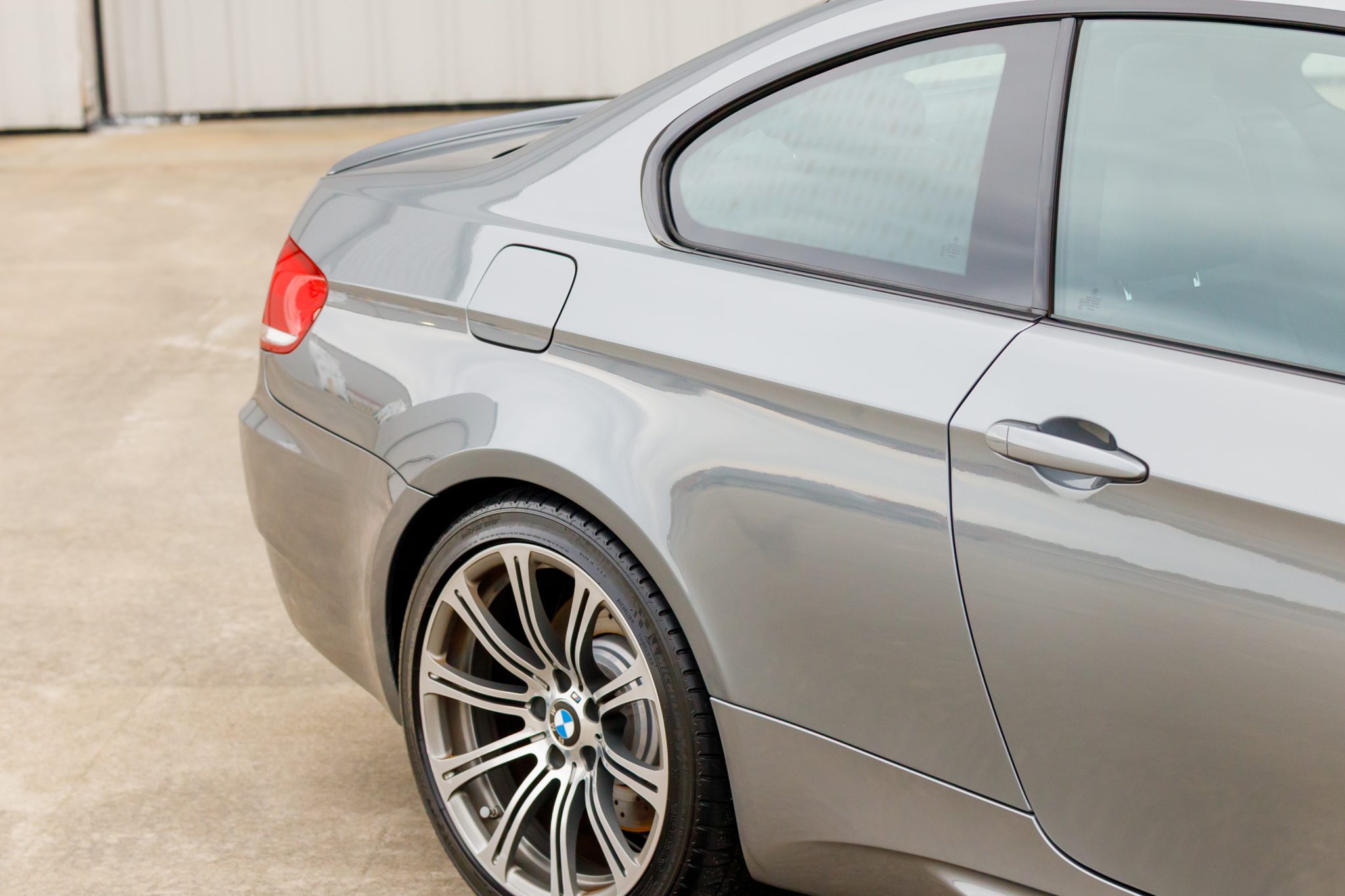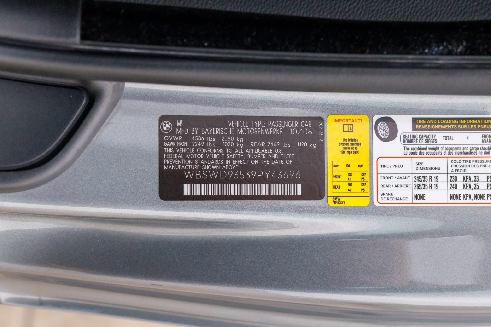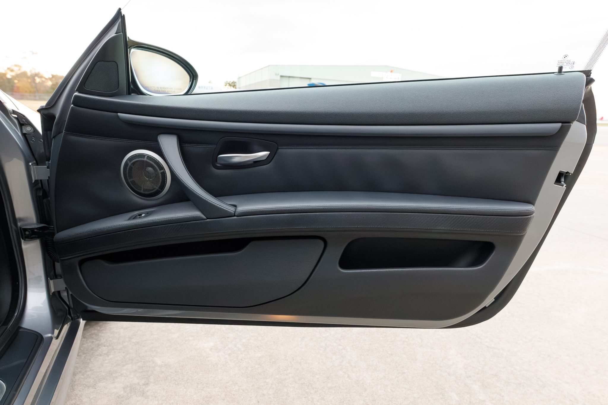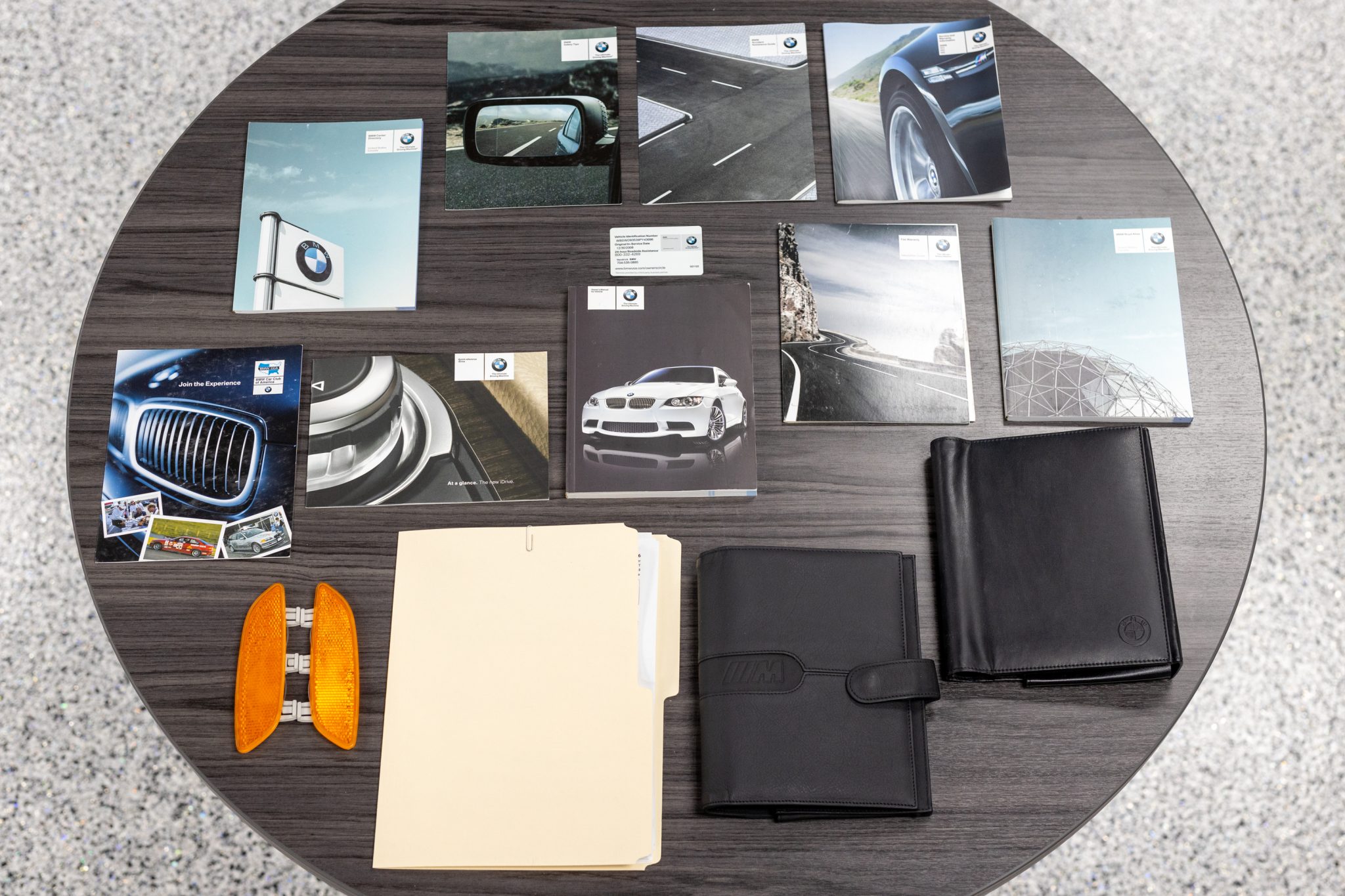 This 2009 BMW M3 coupe was first registered in North Carolina and has remained in the state following the current owner’s acquisition in 2020. Work since then involved installing ARP connecting rod bolts and Bilstein B6 shock absorbers in addition to servicing the transmission and replacing the rod bearings, throttle valve actuators, oil pan gasket, thermostat, DMTL pump, upper timing chain gaskets, valve cover gaskets, spark plugs, and various brake components. Finished in Space Gray Metallic over Black Novillo leather, the car is powered by a 4.0-liter V8 linked with a seven-speed dual-clutch transmission and a limited-slip differential. Further equipment includes 19″ forged Style 220 wheels, a sunroof, xenon headlights, heated front seats, and iDrive with navigation. This E92 M3 has 57k miles and is now offered on dealer consignment with manufacturer’s literature, partial service records, a clean Carfax report, and a clean North Carolina title. The car is finished in Space Gray Metallic (A52) and features Shadowline trim and adaptive xenon headlights as well as rain-sensing wipers, a glass sunroof, a trunk lid spoiler, and quadruple exhaust outlets. The front bumper cover reflectors have been removed and replaced with body-color caps. Forged 19″ Style 220 wheels are wrapped in 245/35 front and 265/35 rear Michelin Pilot Sport A/S 3 tires showing a mixture of 2018 and 2019 date codes. The car features Electronic Damping Control (EDC), and Bilstein B6 Performance shocks were fitted in 2023. Braking is handled by four-wheel vented and cross-drilled discs measuring 14.2″ and 13.8″ front and rear, respectively. The front brake pads, rotors, and sensors were replaced in preparation for the sale, at which time the rear brake pad wear sensor was also changed. The heated power-adjustable front sport seats are upholstered in Black Novillo leather, and Carbon Structure Leather trim accents the dashboard and doors. Amenities include Comfort Access keyless entry, a CD stereo, dual-zone automatic climate control, cruise control, and iDrive with navigation. The right door lock actuator was replaced in May 2025, and wear is noted on the left door panel. The multifunction leather-wrapped steering wheel features paddle shifters along with tri-color stitching and frames an M-branded tachometer, a 200-mph speedometer, a central information display, and gauges for oil temperature and fuel level. The digital odometer indicates 57k miles, approximately 27k of which have been added under current ownership. The 4.0-liter S65 V8 features double-VANOS variable valve timing and was factory rated at 414 horsepower and 295 lb-ft of torque. Service since 2020 involved installing ARP connecting rod bolts and replacing the rod bearings, both throttle valve actuators, oil pan gasket, battery, thermostat, oil level sensor O-ring, oil separator gasket, DMTL pump, valve cover gaskets, upper timing chain gaskets, spark plug tubes, spark plugs, and expansion tank hose. The seller notes there is an oil leak from one of the valve covers. Power is sent to the rear wheels through a seven-speed M-DCT dual-clutch transmission and a Variable M Differential Lock. Service since August 2024 involved changing the transmission fluid and replacing the Mechatronics cover seal, filter, valve body gasket, dual-clutch temperature sensor, wiring harness O-ring, and torque convertor, cooling hose, and oil cooler seals. Manufacturer’s literature, partial service records, and the removed factory front reflectors will be included in the sale. The Carfax report is free of accidents or other reported damage.
