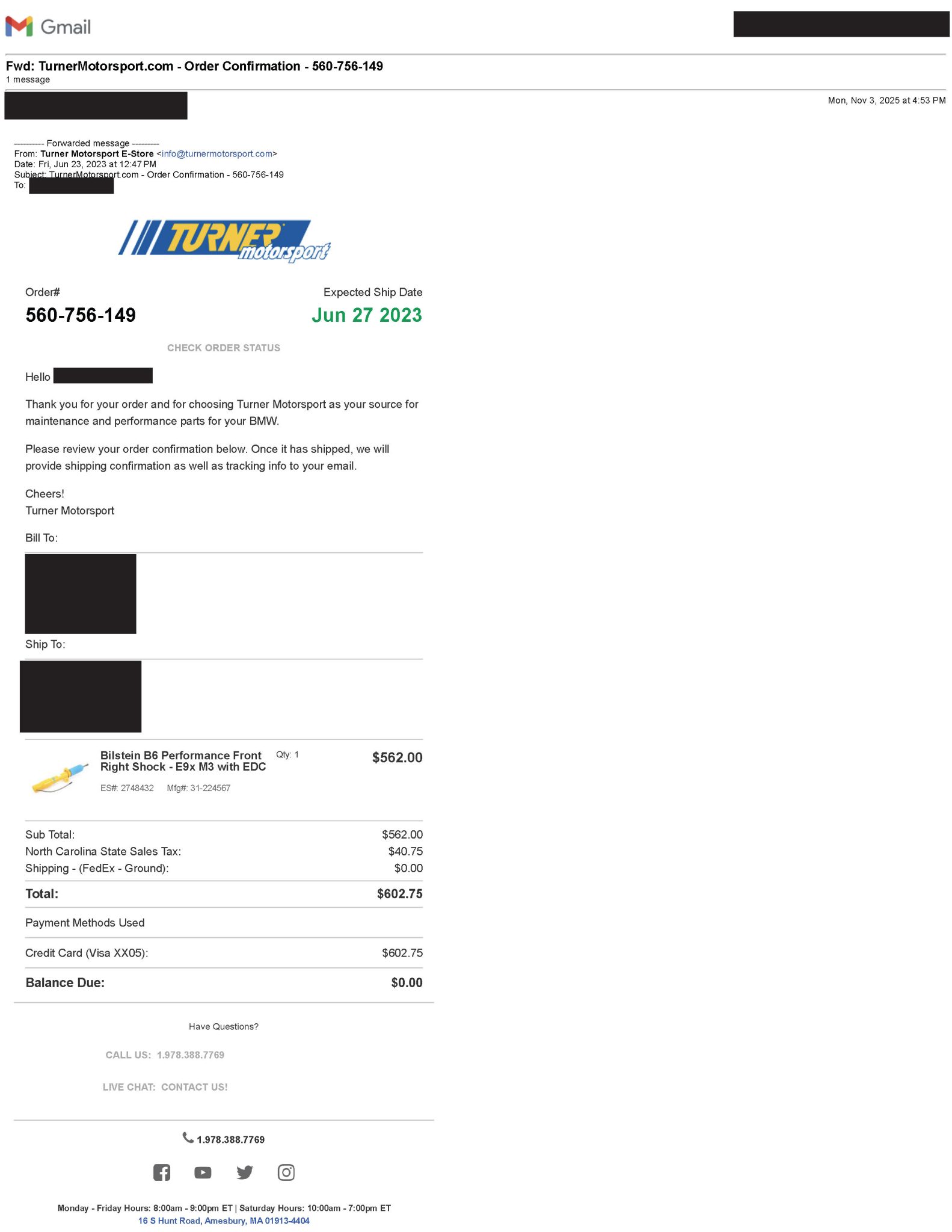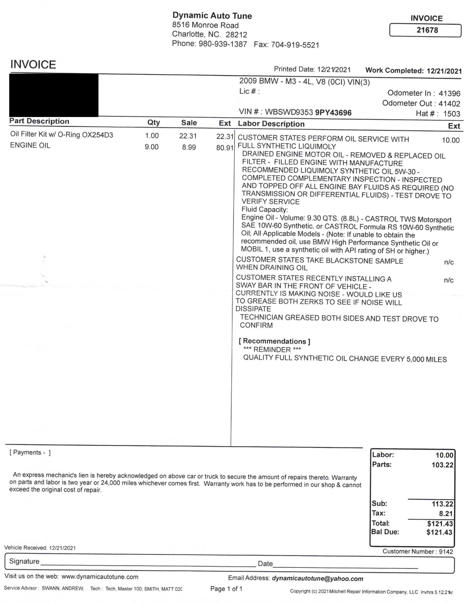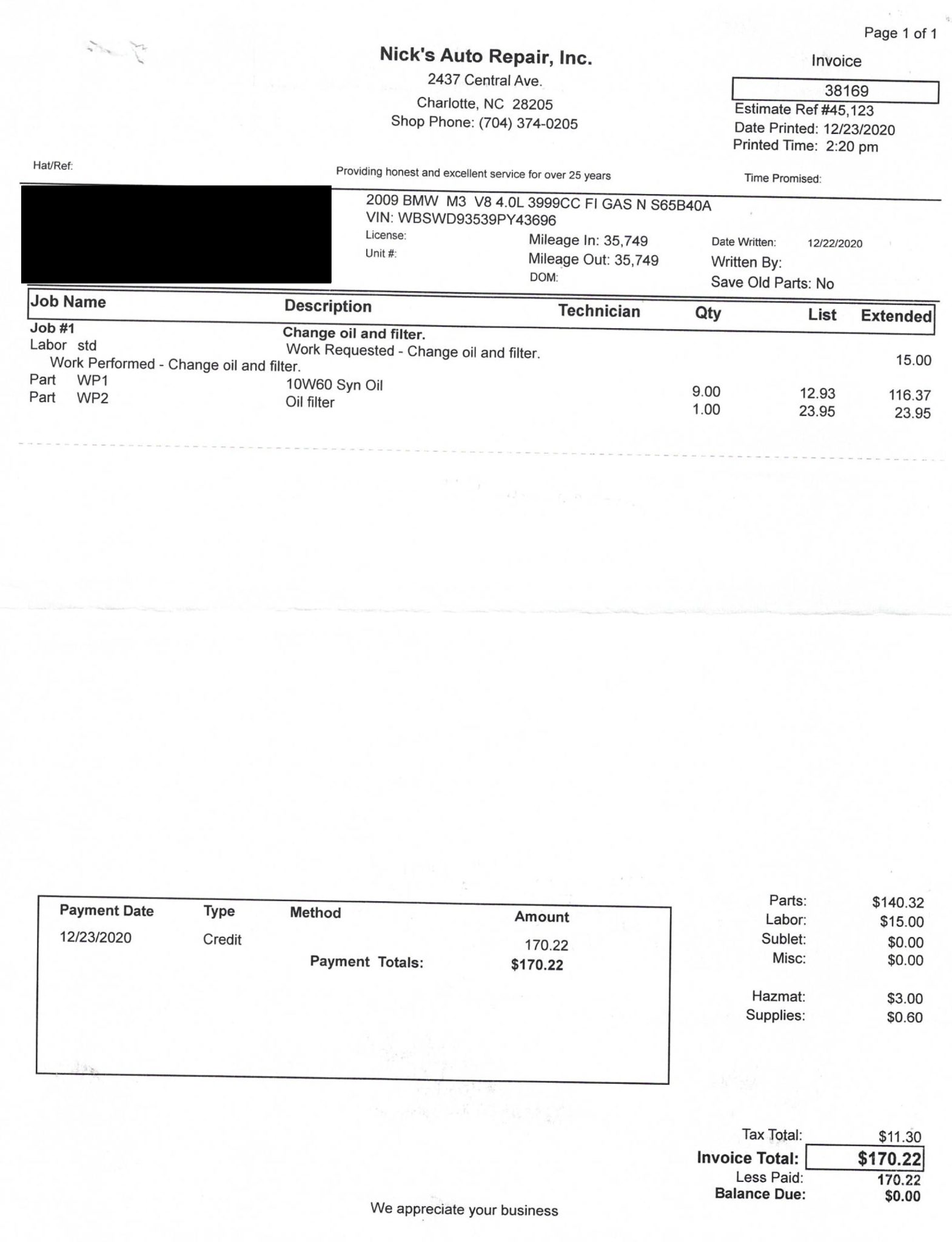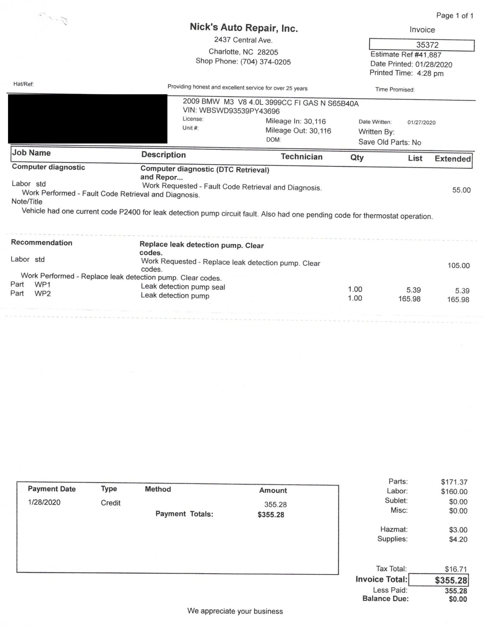 This 2009 BMW M3 coupe was first registered in North Carolina and has remained in the state following the current owner’s acquisition in 2020. Work since then involved installing ARP connecting rod bolts and Bilstein B6 shock absorbers in addition to servicing the transmission and replacing the rod bearings, throttle valve actuators, oil pan gasket, thermostat, DMTL pump, upper timing chain gaskets, valve cover gaskets, spark plugs, and various brake components. Finished in Space Gray Metallic over Black Novillo leather, the car is powered by a 4.0-liter V8 linked with a seven-speed dual-clutch transmission and a limited-slip differential. Further equipment includes 19″ forged Style 220 wheels, a sunroof, xenon headlights, heated front seats, and iDrive with navigation. This E92 M3 has 57k miles and is now offered on dealer consignment with manufacturer’s literature, partial service records, a clean Carfax report, and a clean North Carolina title. The car is finished in Space Gray Metallic (A52) and features Shadowline trim and adaptive xenon headlights as well as rain-sensing wipers, a glass sunroof, a trunk lid spoiler, and quadruple exhaust outlets. The front bumper cover reflectors have been removed and replaced with body-color caps. Forged 19″ Style 220 wheels are wrapped in 245/35 front and 265/35 rear Michelin Pilot Sport A/S 3 tires showing a mixture of 2018 and 2019 date codes. The car features Electronic Damping Control (EDC), and Bilstein B6 Performance shocks were fitted in 2023. Braking is handled by four-wheel vented and cross-drilled discs measuring 14.2″ and 13.8″ front and rear, respectively. The front brake pads, rotors, and sensors were replaced in preparation for the sale, at which time the rear brake pad wear sensor was also changed. The heated power-adjustable front sport seats are upholstered in Black Novillo leather, and Carbon Structure Leather trim accents the dashboard and doors. Amenities include Comfort Access keyless entry, a CD stereo, dual-zone automatic climate control, cruise control, and iDrive with navigation. The right door lock actuator was replaced in May 2025, and wear is noted on the left door panel. The multifunction leather-wrapped steering wheel features paddle shifters along with tri-color stitching and frames an M-branded tachometer, a 200-mph speedometer, a central information display, and gauges for oil temperature and fuel level. The digital odometer indicates 57k miles, approximately 27k of which have been added under current ownership. The 4.0-liter S65 V8 features double-VANOS variable valve timing and was factory rated at 414 horsepower and 295 lb-ft of torque. Service since 2020 involved installing ARP connecting rod bolts and replacing the rod bearings, both throttle valve actuators, oil pan gasket, battery, thermostat, oil level sensor O-ring, oil separator gasket, DMTL pump, valve cover gaskets, upper timing chain gaskets, spark plug tubes, spark plugs, and expansion tank hose. The seller notes there is an oil leak from one of the valve covers. Power is sent to the rear wheels through a seven-speed M-DCT dual-clutch transmission and a Variable M Differential Lock. Service since August 2024 involved changing the transmission fluid and replacing the Mechatronics cover seal, filter, valve body gasket, dual-clutch temperature sensor, wiring harness O-ring, and torque convertor, cooling hose, and oil cooler seals. Manufacturer’s literature, partial service records, and the removed factory front reflectors will be included in the sale. The Carfax report is free of accidents or other reported damage.