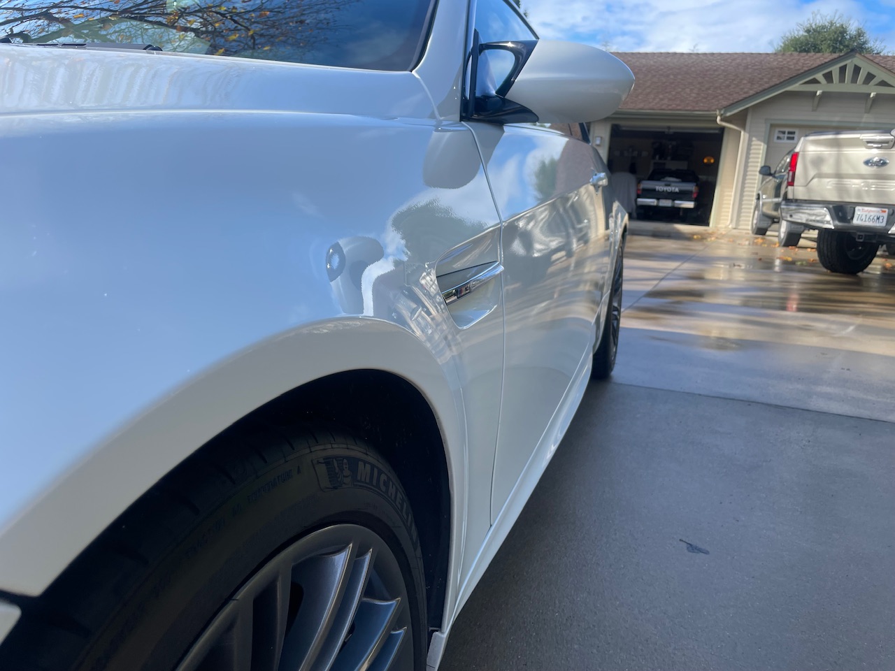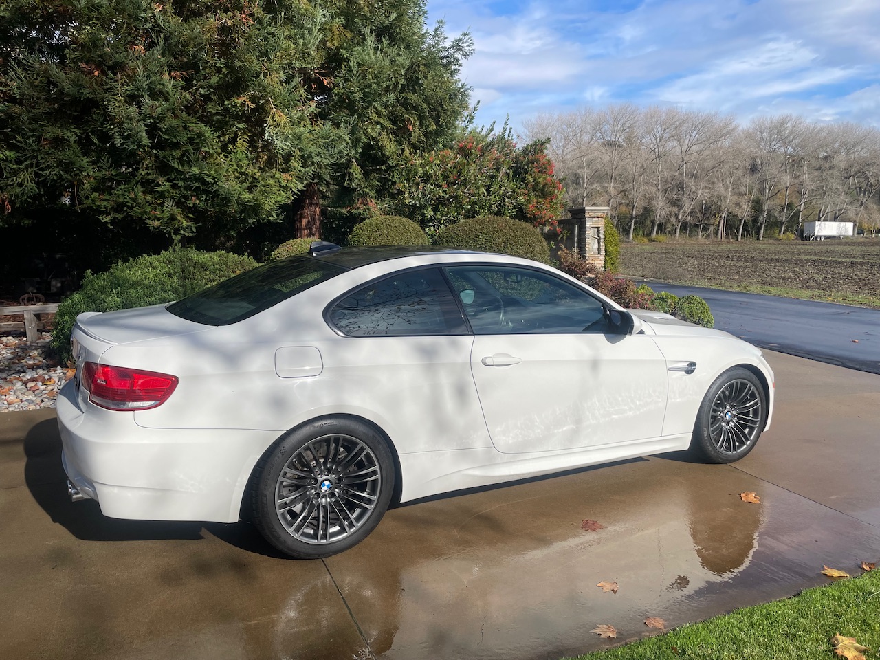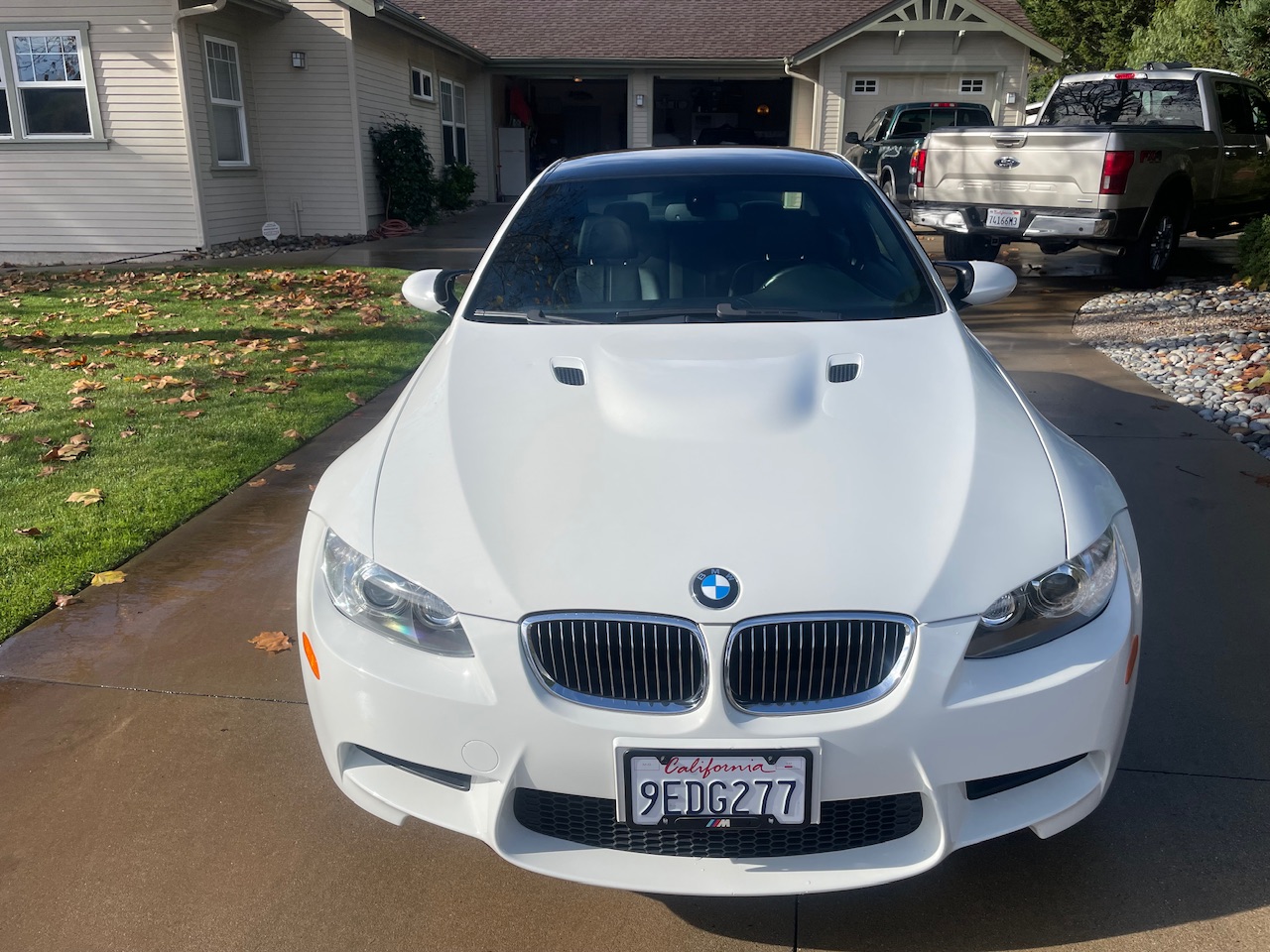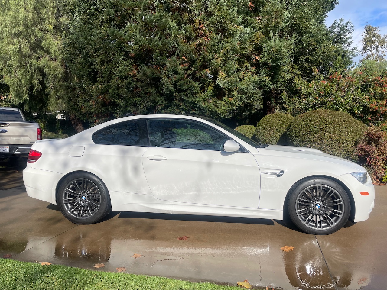 This 2009 BMW M3 coupe was ordered without iDrive and is equipped with a carbon-fiber roof panel, a carbon-fiber Dinan air-intake system, 18″ Style 219 wheels, a limited-slip differential, adaptive xenon headlights, and heated front sport seats. The car spent time in New York, New Jersey, and California before the seller’s December 2022 acquisition, and they have since added approximately 1k of the 42k indicated miles. It is powered by a 4.0-liter S65 V8 paired with a seven-speed dual-clutch transmission and is finished in Alpine White III over anthracite Speed Cloth and black Novillo leather. This E92 M3 is now offered with the owner’s manual, one key, replacement rod bearings and bolts, the removed factory intake, and a clean California title in the seller’s name. The car is finished in Alpine White III and features Shadowline trim and adaptive xenon headlights as well as rain-sensing wipers, a carbon-fiber roof panel, a trunk lid spoiler, and quadruple exhaust outlets. The Carfax report notes that the rear of the car sustained “minor damage” in November 2019 and “minor damage” again in a June 2022 accident with no additional information provided for either occurrence. The seller notes a ding and chips in the hood as well as touched-up chips on the roof. The 18″ Style 219 wheels are mounted with 245/40 front and 265/40 rear Michelin Pilot Sport 4S tires said to have been installed in January 2023. The car features Dynamic Stability Control (DSC). Braking is handled by four-wheel vented and cross-drilled discs measuring 14.2″ and 13.8″ front and rear, respectively. The heated front sport seats are upholstered in anthracite Speed Cloth and black Novillo leather, and Titanium Shadow trim accents the dashboard and doors. This example was ordered without iDrive, and amenities include a CD stereo, dual-zone automatic climate control, and cruise control. The driver’s seat outer bolster upholstery has a crack. The multi-function leather-wrapped steering wheel features paddle shifters along with tri-color stitching and frames an M-branded tachometer, a 200-mph speedometer, a central information display, and auxiliary gauges. The digital odometer indicates 42k miles, approximately 1k of which were added under current ownership. The 4.0-liter S65 V8 features double-VANOS variable valve timing and was factory rated at 414 horsepower and 295 lb-ft of torque and is modified with a Dinan carbon-fiber air-intake system. The oil was most recently changed in November 2023. Power is sent to the rear wheels through a seven-speed M-DCT dual-clutch transmission and a Variable M Differential Lock. Replacement connecting rod bearings and bolts are included in the sale along with the removed factory air-intake system, manufacturer’s literature, and other accessories. The Carfax report notes the aforementioned November 2019 damage and June 2022 accident entries and lists registration history in New York, New Jersey, and California.
