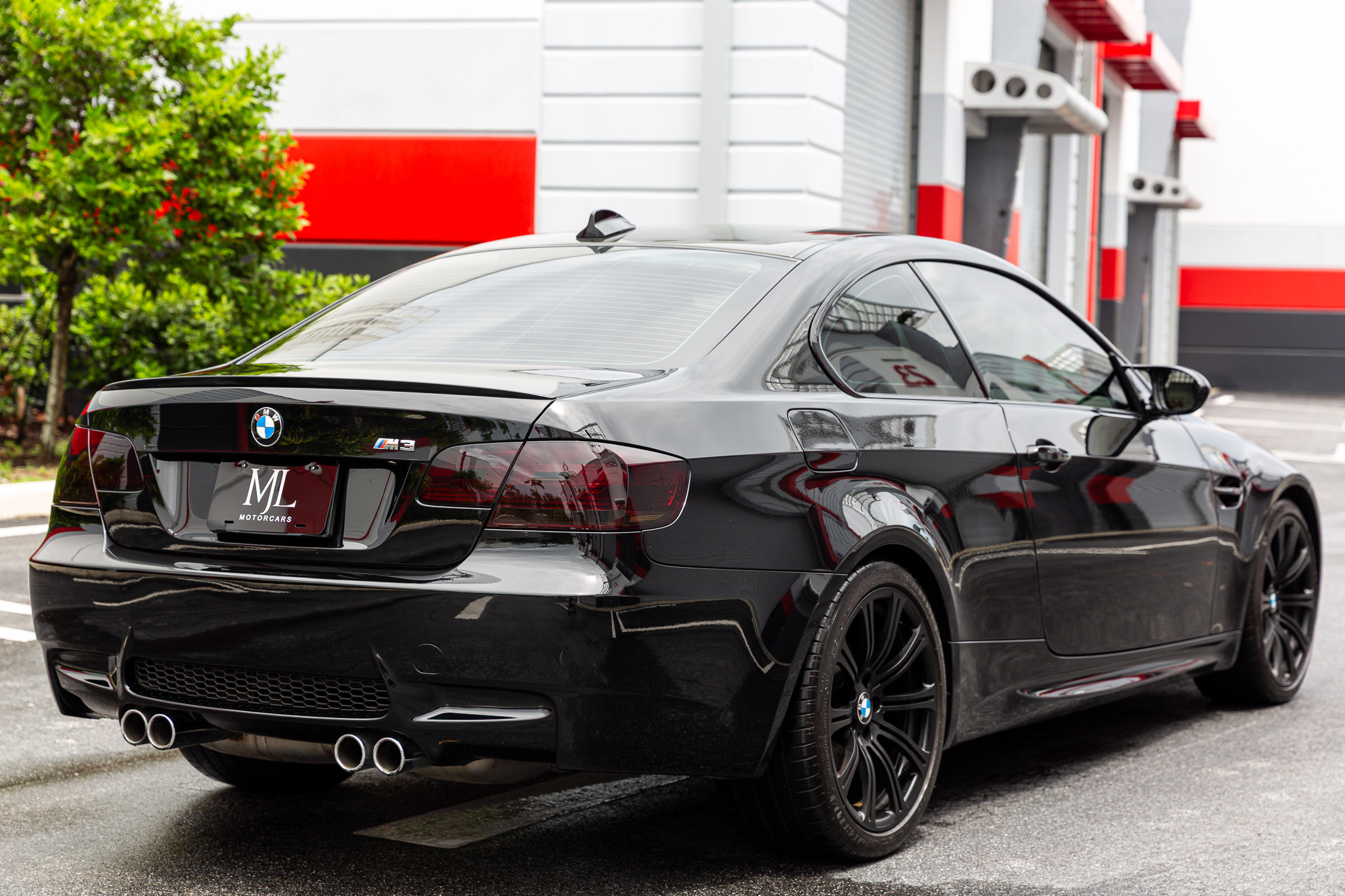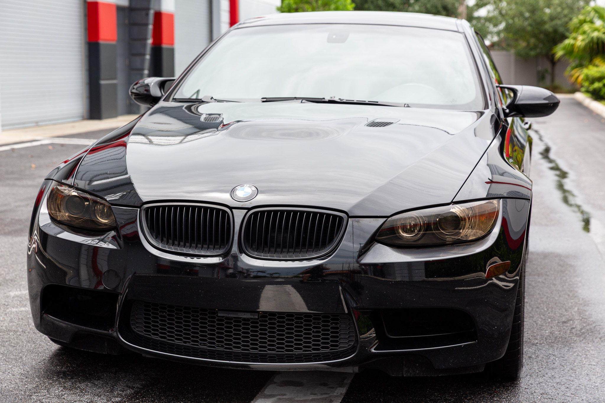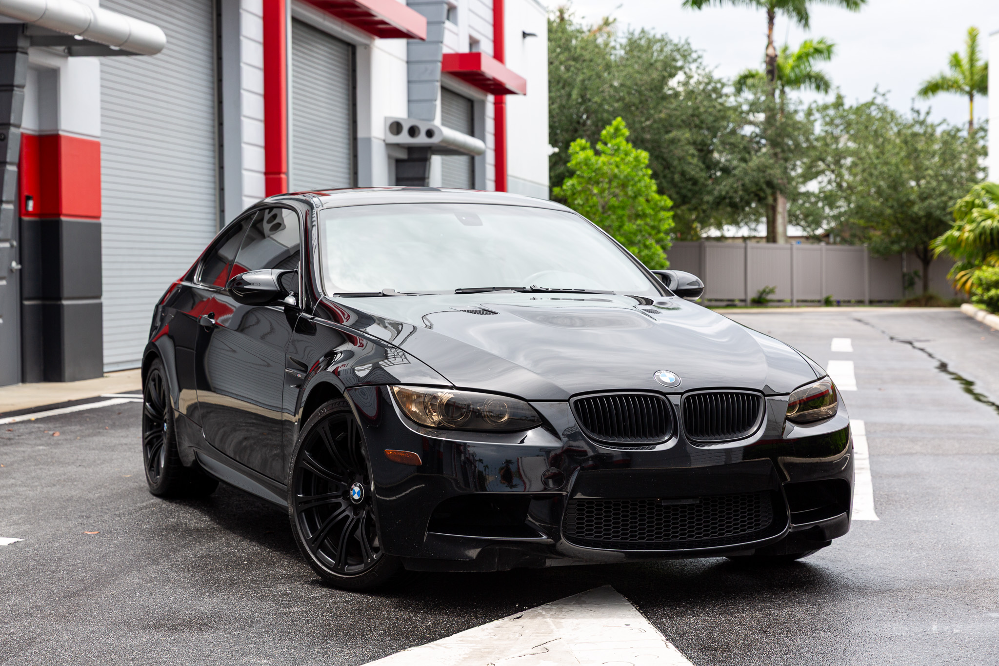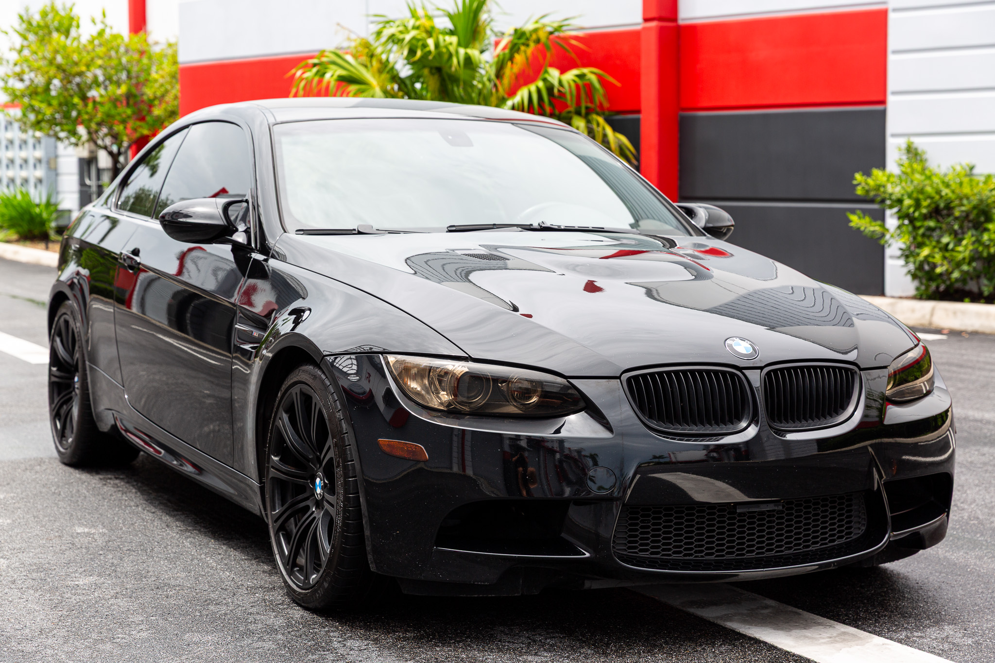 This 2009 BMW M3 is a Jet Black-over-Black coupe powered by a 4.0-liter S65 V8 paired with a six-speed manual transmission. The car has spent time registered in Wisconsin and Illinois and now has 55k miles. It is equipped with a carbon-fiber roof panel, 19″ forged Style 220 wheels, a limited-slip differential, and adaptive xenon headlights. The selling dealer recently acquired the car and had the throttle actuators replaced. This E92 M3 is now offered by the selling dealer in Florida with the owner’s manual, a June 2025 throttle actuator replacement record, WeatherTech floor mats, a clean Carfax report, and a clean Illinois title. The car is finished in Jet Black (668) with Shadowline trim and is outfitted with a carbon-fiber roof panel as well as adaptive xenon headlights, rain-sensing wipers, a trunk lid spoiler, black kidney grilles, and quadruple exhaust outlets. The Carfax report noted windshield repairs in May 2025, and tinted film covers the headlight and taillight lenses. Forged 19″ Style 220 wheels are mounted with Michelin Pilot Sport 4S tires measuring 245/35 up front and 265/35 out back. The car features Dynamic Stability Control (DSC), and braking is handled by four-wheel vented and cross-drilled discs measuring 14.2″ and 13.8″ front and rear, respectively. The heated power-adjustable front Sport seats are upholstered in Black Novillo leather complemented by Brushed Aluminum Shadow trim. The car was ordered without iDrive, and interior details comprise a CD stereo, dual-zone automatic climate control, cruise control, and driver seat memory settings. WeatherTech floor liners are included in the sale. The multifunction leather-wrapped steering wheel features tri-color stitching and frames an M-branded tachometer, a 200-mph speedometer, a central information display, and gauges for oil temperature and fuel level. The digital odometer indicates 55k miles. The 4.0-liter S65 V8 features double-VANOS variable valve timing and was factory rated at 414 horsepower and 295 lb-ft of torque. Records indicate that the throttle actuators were replaced in June 2025, and the seller states that Evolve Automotive components were used. Power is sent to the rear wheels through a six-speed manual transmission and a Variable M Differential Lock. The Carfax report is free of accidents or other reported damage.