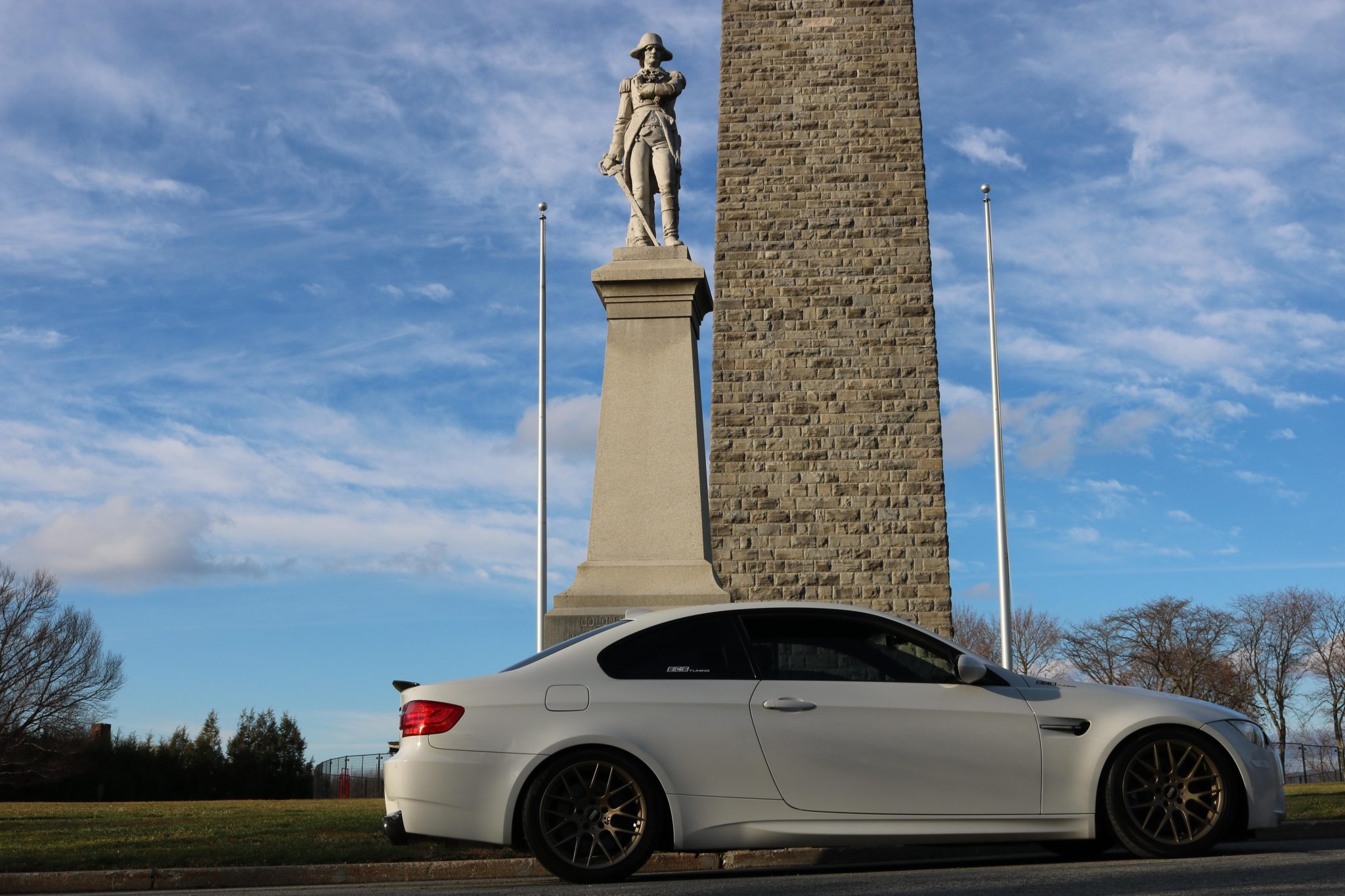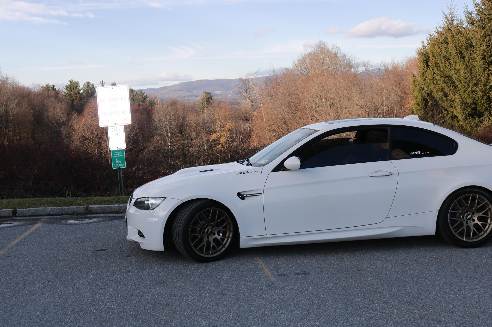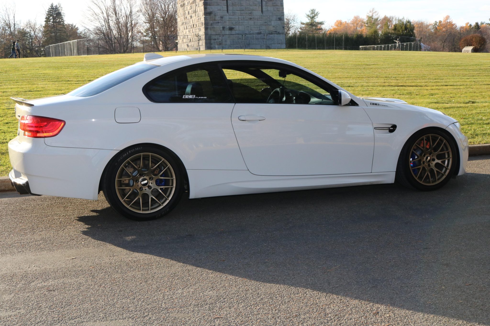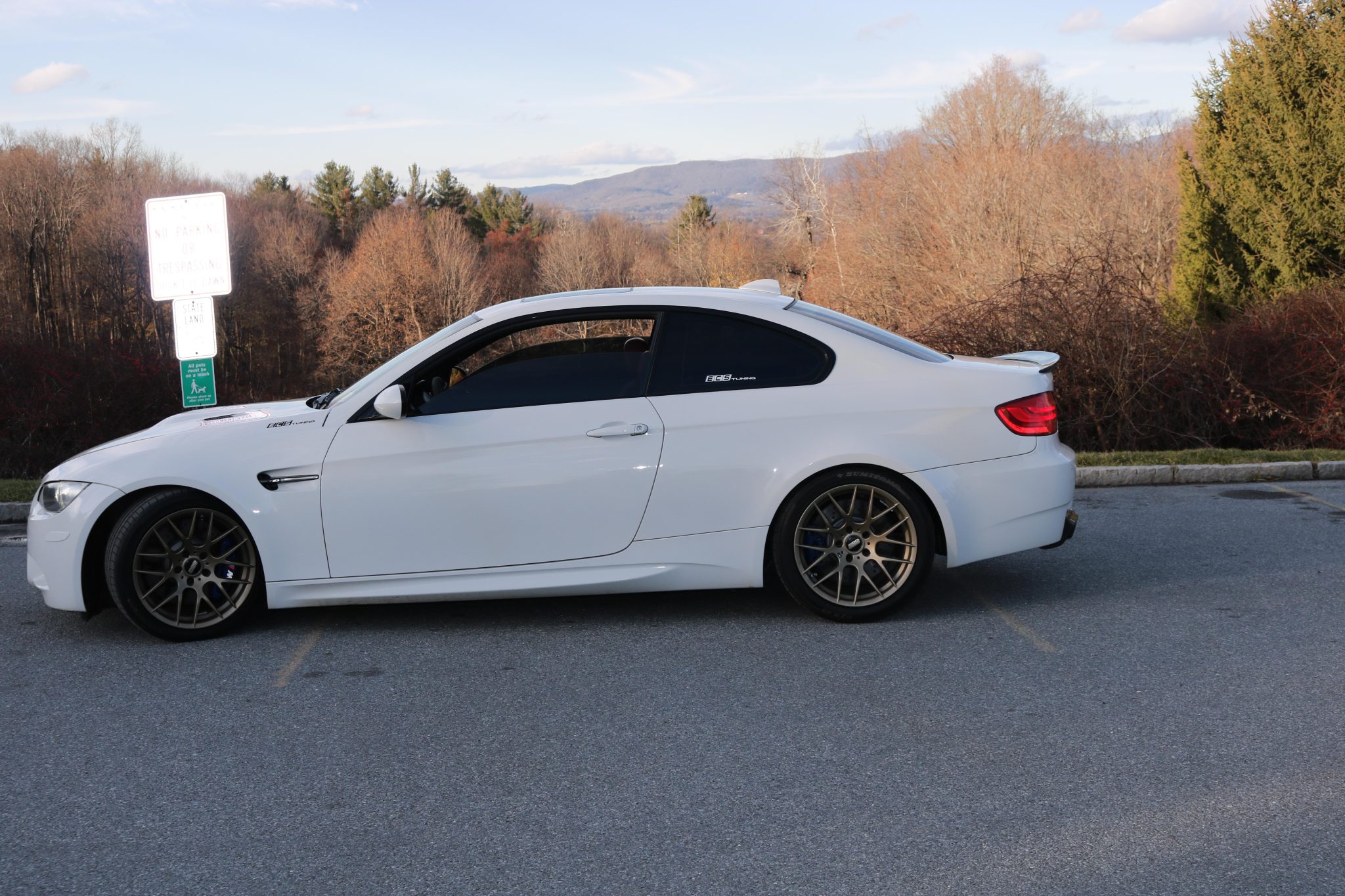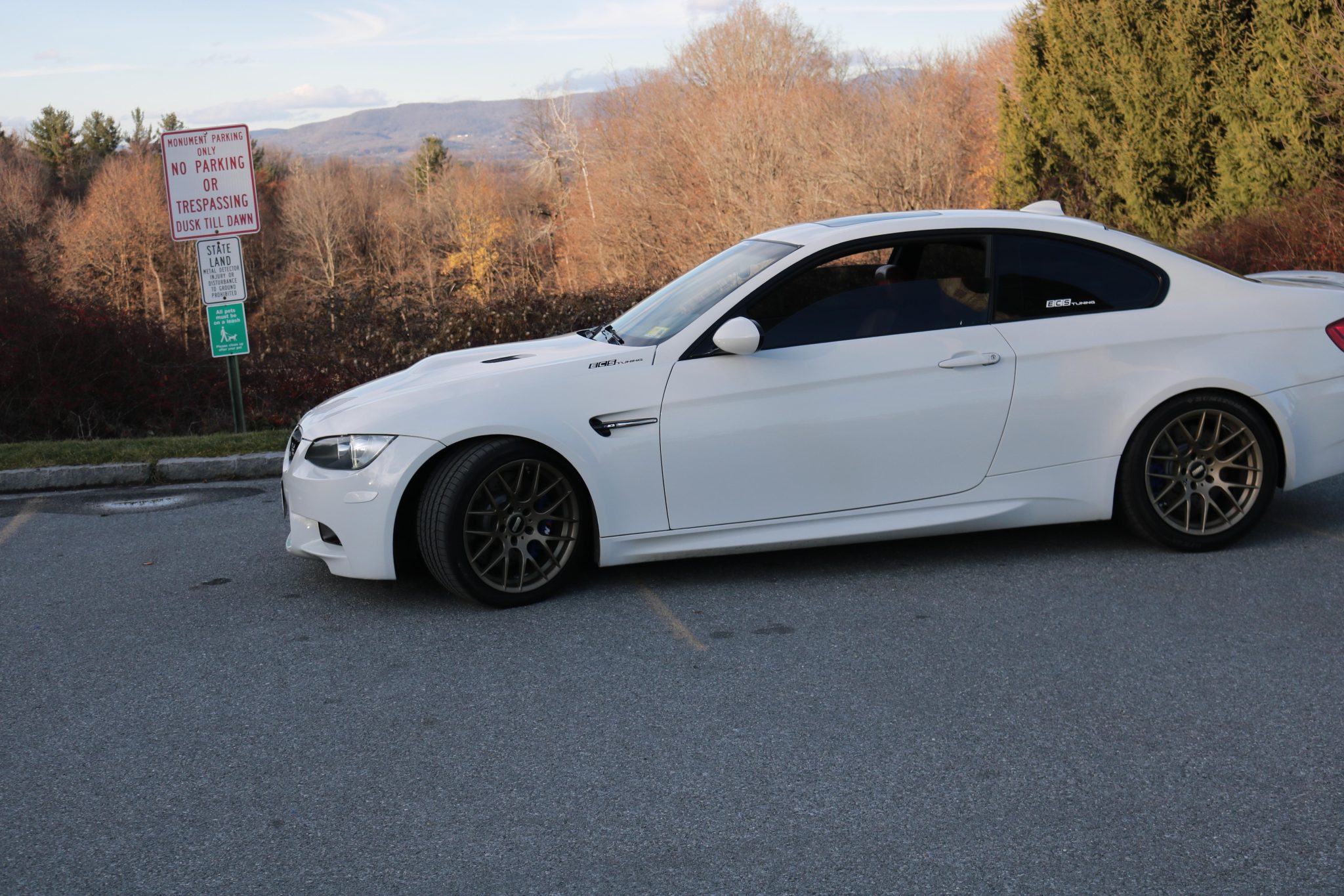 This 2009 BMW M3 coupe is finished in Alpine White over Fox Red Novillo leather and is powered by a 4.0-liter S65 V8 linked with a seven-speed dual-clutch transmission and a limited-slip differential. Modifications include a Valvetronic exhaust, a lowered suspension, 18″ Avant Garde wheels, later-model taillights, and a carbon-fiber rear spoiler and diffuser. Retained factory equipment includes the Premium and Technology packages as well as Electronic Damping Control, xenon headlights, dual-zone automatic climate control, and iDrive with navigation. The car has spent time in Florida, Illinois, and Vermont where the seller purchased it in October 2022, and they have since added approximately 2k of the 95k indicated miles. This E92 M3 is now offered with the owner’s manual, service records, spare parts, a car cover, an accident-free Carfax report, and a clean Vermont title in the seller’s name. The car is finished in Alpine White (300) and features Shadowline trim, a glass sunroof, rear parking sensors, power-folding mirrors, adaptive xenon headlights, and quadruple exhaust outlets. Exterior modifications include a carbon-fiber trunk lid spoiler, black kidney grilles, later-model LED taillights, and white Lux Angel Eyes daytime running lights. The front side reflectors have been covered with body-color trim. The Carfax report notes that the car was repossessed in March 2011, October 2016, and October 2017. The passenger-side lower opening on the front bumper cover is cracked, a touched-up blemish is noted on the hood, and the aftermarket carbon-fiber rear diffuser is misaligned and damaged. Bronze-finished 18×8.5″ front and 18×9.5″ rear Avant Garde M359-style wheels are mounted with 245/40 Sumitomo HTR Z5 front and 265/40 Sumitomo HTR ZIII rear tires. Electronic Damping Control (EDC) and Dynamic Stability Control (DSC) were equipped from the factory, and the car has been lowered. Braking is handled by four-wheel vented and cross-drilled discs measuring 14.2″ and 13.8″ front and rear, respectively. Aftermarket M stickers have been added to the front calipers. The power-adjustable front sport seats are upholstered in Fox Red Novillo leather, and Carbon Structure Leather trim accents the dashboard and doors. Amenities include Comfort Access, dual-zone automatic climate control, cruise control, and iDrive with navigation. A Valentine One radar detector system is installed. The left-front airbag was replaced in 2018 and the blower motor wiring was replaced in 2019. The front seats are worn and the seller notes a broken center console component and an inoperative driver-side seatbelt extender system. The Alcantara-wrapped steering wheel was sourced from Mishimarho and features tri-color stitching as well as paddle shifters with aftermarket carbon-fiber extensions. Instrumentation consists of an M-branded tachometer, a 200-mph speedometer, a central information display, and auxiliary gauges. The digital odometer indicates 95k miles, approximately 2k of which were added under current ownership. The 4.0-liter S65 V8 features double-VANOS variable valve timing and was factory rated at 414 horsepower and 295 lb-ft of torque. Records indicate that VAC-coated rod bearings were installed along with ARP bolts and a replacement belt, pulleys, and engine mounts in March 2019. Power is sent to the rear wheels through a seven-speed M-DCT dual-clutch transmission and a Variable M Differential Lock. A Valvetronic Designs valved exhaust system is installed. The removed factory exhaust system, steering wheel, and 18″ Style 219 wheels are included in the sale along with a car cover and service records. The Carfax report is free of accidents or other reported damage and notes the aforementioned repossession entries.
