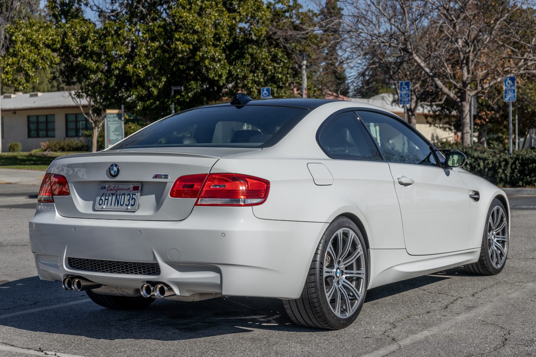 This 2009 BMW M3 coupe remained registered to its original owner in California until it was acquired by the seller on BaT in March 2021. It is finished in Alpine White over Black Novillo leather and is powered by a 4.0-liter V8 paired with a six-speed manual transmission. Equipment includes the Premium and Technology packages as well as an M Performance exhaust system, a limited-slip differential, a carbon-fiber roof panel, carbon-fiber mirror caps, 19″ forged wheels, parking sensors, heated front seats, navigation, and Enhanced Premium Sound. Work under current ownership included performing fluid flushes and replacing the headliner, tires, and valve cover gaskets. This E92 M3 has 87k miles and is offered at no reserve with two window stickers, an owner’s manual, service records dating from 2009, a clean Carfax report, and a clean Virginia title in the seller’s name. The car is finished in Alpine White (300) with Shadowline trim and features a carbon-fiber roof panel. Other exterior details include adaptive xenon headlights, rain-sensing wipers, painted front reflectors, power-folding side mirrors, carbon-fiber mirror caps, factory black chrome-finished fender and kidney grilles, a trunk lid spoiler, rear parking sensors, and quadruple exhaust outlets. The rear bumper cover and support are said to have been replaced following damage in 2015. Exterior imperfections are highlighted in the gallery below. Forged 19″ Style 220 wheels are mounted with 245/35 front and 265/35 rear Continental ExtremeContact DWS06 Plus tires that were installed in September 2023. The car features Electronic Damping Control (EDC). Braking is handled by four-wheel vented and cross-drilled discs measuring 14.2″ and 13.8″ front and rear, respectively. The brake and power steering fluids were flushed in preparation for the sale. The heated and power-adjustable front sport seats are upholstered in Black Novillo leather while Carbon Structure Leather trim accents the dashboard and doors. Amenities include iDrive with navigation, a CD stereo, Enhanced Premium Sound, smartphone integration, Comfort Access keyless entry, BMW Assist, a power rear sunshade, dual-zone automatic climate control, and cruise control. A replacement headliner was installed in October 2024. The seller notes wear on the sun visors. The multi-function leather-wrapped steering wheel features tri-color stitching and frames an M-branded tachometer, a 200-mph speedometer, a central information display, and gauges for oil temperature and fuel level. The digital odometer indicates 87k miles, approximately 3k of which were added under current ownership. The 4.0-liter S65 V8 features double-VANOS variable valve timing and was factory rated at 414 horsepower and 295 lb-ft of torque. The rod bearings were replaced at approximately 70k miles in 2017, the throttle actuators were replaced in 2020, and the valve cover gaskets were replaced in 2023. Work in preparation for the sale included an oil change, a coolant flush, and replacement of the engine and cabin filters. Power is sent to the rear wheels through a six-speed manual transmission and a Variable M Differential Lock. The car is equipped with an M Performance exhaust system. Service records dating from 2009 are included in the sale along with two window stickers, an owner’s manual, and two key fobs. The Carfax report is free of accidents or other reported damage.