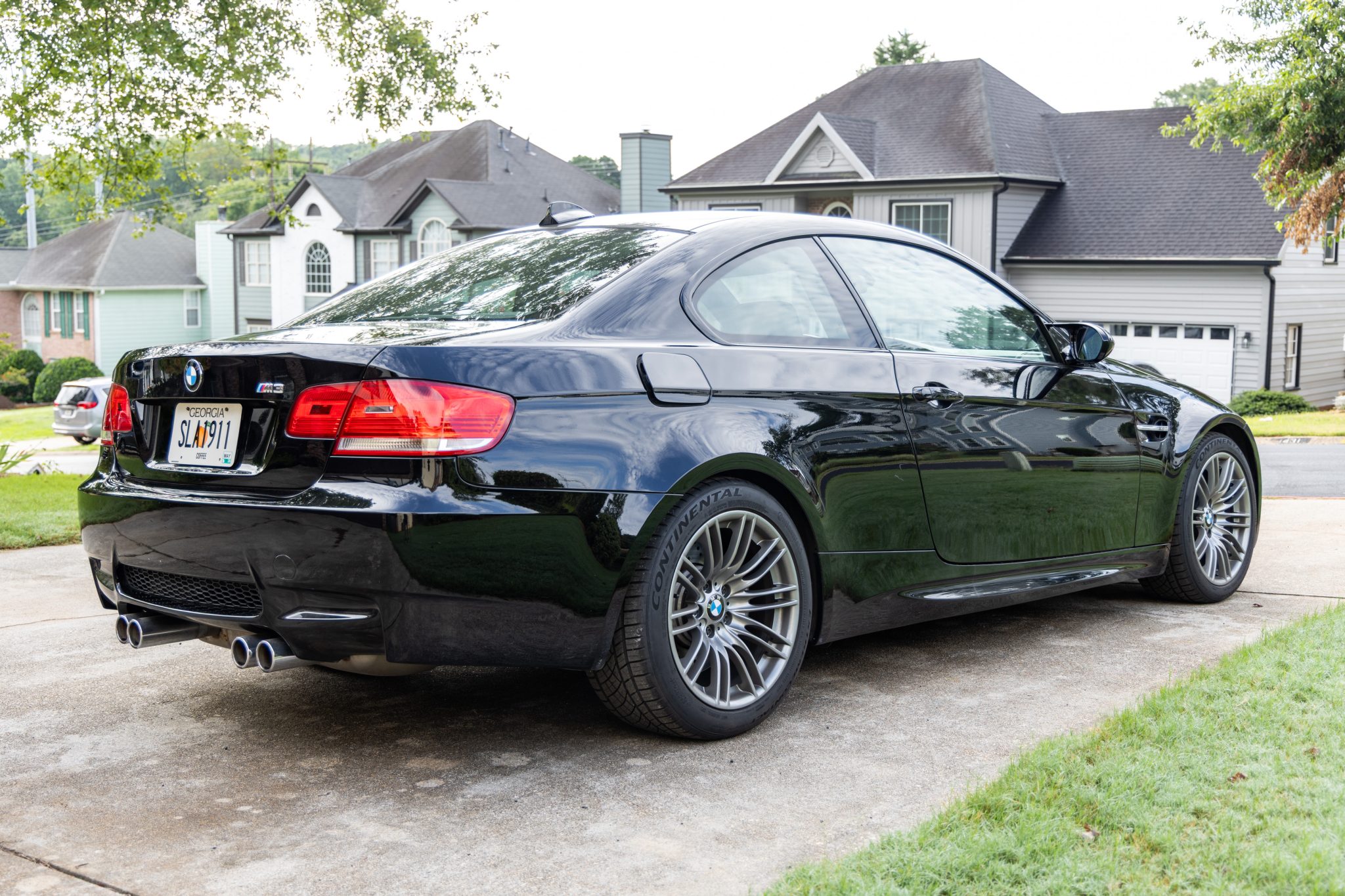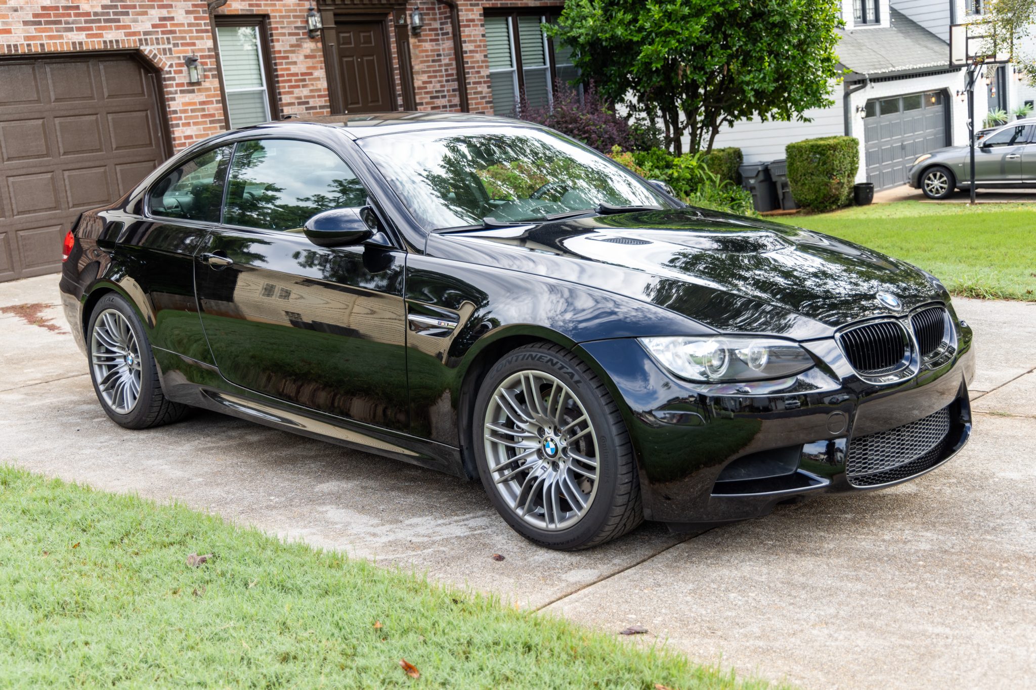 This 2009 BMW M3 coupe was optioned with the Premium, Technology, and Cold Weather packages and is powered by a 4.0-liter V8 paired with a six-speed manual transmission. Finished in Jet Black over matching Novillo leather upholstery, the car is equipped with 18″ Style 219M wheels, Electronic Damping Control, a limited-slip differential, adaptive xenon headlights, a carbon-fiber roof panel, auto-dimming mirrors, heated front seats, dual-zone automatic climate control, a CD stereo, iDrive infotainment, and cruise control. Registration history includes Massachusetts, New York, Florida, and Georgia, and the seller purchased the car in June 2025. This E92 M3 has 57k miles and is offered with owner’s manuals, a Carfax report, and a rebuilt Georgia title in the seller’s name. The car is finished in Jet Black (668) and features Shadowline trim and adaptive xenon headlights with retractable washers as well as rain-sensing wipers, power-folding side mirrors, a carbon-fiber roof panel, and quadruple exhaust outlets. A November entry on the Carfax report notes minor damage to the front and front-right areas of the car, and a November 2024 entry notes damage to the front and left side along with the vehicle being towed. Satin Chrome-finished 18″ Style 219M wheels are mounted with 245/40 front and 265/40 rear Continental ExtremeContact DWS 06 Plus tires. The car features Dynamic Stability Control (DSC) and Electronic Damping Control with three selectable drive modes. Braking is handled by four-wheel vented and cross-drilled discs measuring 14.2″ and 13.8″ front and rear, respectively. The heated and power-adjustable front sport seats are upholstered in Black Novillo leather, and Carbon Leather trim accents the cabin. Other appointments include dual-zone automatic climate control, BMW Assist, Voice Command, Comfort Access, an auto-dimming rearview mirror, a CD stereo, iDrive infotainment with navigation, and cruise control. The multifunction leather-wrapped steering wheel features tri-color stitching and frames an M-branded tachometer, a 200-mph speedometer, a central information display, and gauges for oil temperature and fuel level. The digital odometer indicates 57k miles, approximately 120 of which were added under current ownership. The 4.0-liter S65 V8 features double-VANOS variable valve timing and was factory rated at 414 horsepower and 295 lb-ft of torque. An aftermarket open-style intake filter has been fitted. Per the seller, the connecting-rod bearings were replaced at 54k miles. Power is sent to the rear wheels through a six-speed manual transmission and a Variable M Differential Lock. Owner’s manuals will accompany the vehicle. The Carfax report notes the aforementioned 2020 and 2024 accidents. An insurance company declared the car a “total loss vehicle” in February 2025, and salvage and rebuilt titles were subsequently issued. The vehicle’s Georgia title carries a “rebuilt” brand.