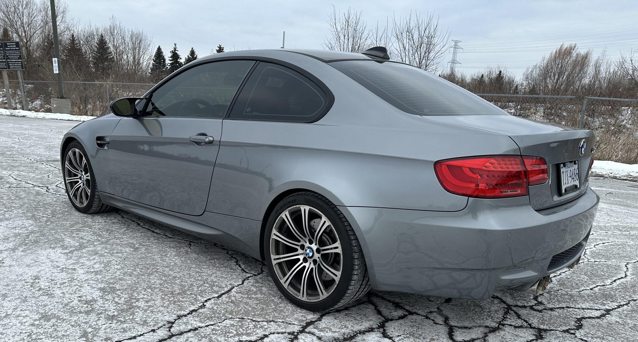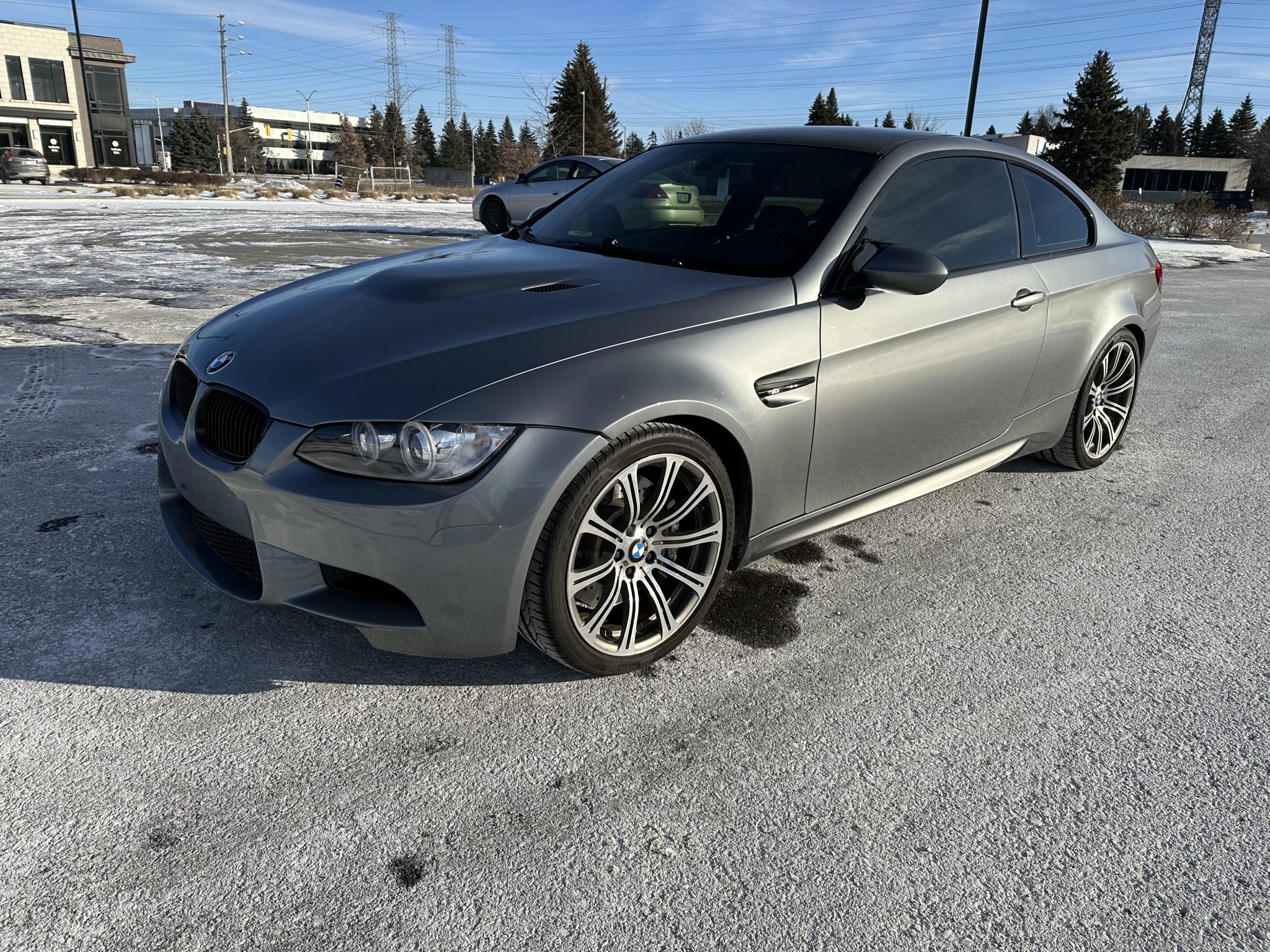 This 2009 BMW M3 coupe is powered by a 4.0-liter V8 paired with a seven-speed dual-clutch transmission and is finished in Space Gray Metallic over black Novillo leather. Equipment includes the Premium and Technology Packages, a carbon-fiber roof panel, 19″ forged Style 220 wheels, a limited-slip differential, heated front seats, navigation, dual-zone automatic climate control, and cruise control. It was acquired by the seller in 2024 following registration history in California, New Mexico, and Virginia, and work performed under current ownership has included replacing the spark plugs, fuel injectors, valve cover gaskets, water pump, thermostat, idler pulley, starter, idle control valve, alternator, and differential seals. This E92 M3 is offered at no reserve with spare parts, a clean Carfax report, and a clean Virginia title in the seller’s name. The car is finished in Space Gray Metallic (A52) and features Shadowline trim and a carbon-fiber roof panel. Additional exterior details include ‘Halo’ ring headlights, rain-sensing wipers, and quadruple exhaust outlets. The front bumper cover, hood, and fenders have been refinished, per the seller, who notes clearcoat damage on the roof. Close-up photos of exterior paint chips are provided in the gallery below. Forged 19″ Style 220 wheels have blemishes and are mounted with a mixed set of Falken and Pirelli tires. The car features Electronic Damping Control (EDC). Braking is handled by four-wheel vented and cross-drilled discs measuring 14.2″ and 13.8″ front and rear, respectively. The seller states that the springs, shocks, and end links were replaced in November 2024. The heated power-adjustable front sport seats are upholstered in black Novillo leather, and Carbon Structure Leather trim accents the dashboard and doors. Amenities include iDrive with navigation, Comfort Access keyless entry, a CD stereo, dual-zone automatic climate control, and cruise control. The headliner is sagging. The multi-function leather-wrapped steering wheel features paddle shifters, carbon-fiber trim, and red stitching, and it frames an M-branded tachometer, a 200-mph speedometer, a central information display, and gauges for oil temperature and fuel level. The digital odometer indicates 141k miles, approximately 2k of which were added under current ownership. The 4.0-liter S65 V8 features double-VANOS variable valve timing and was factory-rated at 414 horsepower and 295 lb-ft of torque. Work performed in 2024 has included replacing the spark plugs, fuel injectors, valve cover gaskets, water pump, thermostat, idler pulley, power steering pulley, starter, idle control valve, and alternator. A January 2024 Blackstone Laboratories oil analysis report is provided in the gallery below. Power is sent to the rear wheels through a seven-speed M-DCT dual-clutch transmission and a Variable M Differential Lock. The differential seals were replaced in September 2024, and an aftermarket exhaust system has been added. The Carfax report is free of accidents or other reported damage.