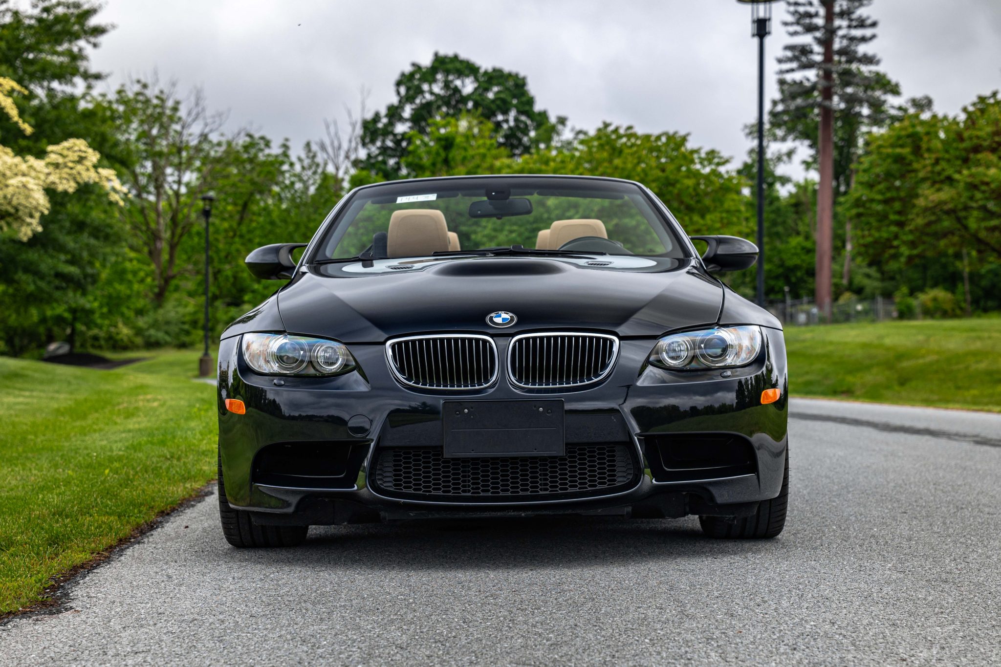 This 2009 BMW M3 convertible remained under the care of its original owner in Texas until 2025, and it now has 12k miles. Powered by a 4.0-liter V8 paired with a seven-speed dual-clutch transmission, the car is finished in Jerez Black Metallic over Bamboo Beige Novillo leather upholstery. Equipment includes 19″ forged Style 220 wheels, a limited-slip differential, xenon headlights, a retractable hardtop, parking sensors, heated front seats, navigation, dual-zone automatic climate control, and cruise control. Acquired by the selling dealer in 2025, this E93 M3 is offered with a clean Carfax report and a clean Pennsylvania title. The car is finished in Jerez Black Metallic (A73) and features a retractable hardtop and adaptive xenon headlights as well as rain-sensing wipers, power-folding side mirrors, rear parking sensors, and quadruple exhaust outlets. Close-up photographs of the exterior finish and trim are shown in the gallery below. Forged 19″ Style 220 wheels are mounted with Michelin Pilot Sport tires. The car features Electronic Damping Control (EDC), and braking is handled by four-wheel vented and cross-drilled discs measuring 14.2″ and 13.8″ front and rear, respectively. The heated power-adjustable front sport seats are upholstered in Bamboo Beige Novillo leather, and wood trim accents the dashboard and doors. Amenities include iDrive with navigation, Comfort Access keyless entry, a CD stereo, dual-zone automatic climate control, and cruise control. The multifunction leather-wrapped steering wheel features paddle shifters along with tri-color stitching and frames an M-branded tachometer, a 200-mph speedometer, a central information display, and gauges for oil temperature and fuel level. The digital odometer indicates 12k miles. The 4.0-liter S65 V8 features double-VANOS variable valve timing and was factory rated at 414 horsepower and 295 lb-ft of torque. Power is sent to the rear wheels through a seven-speed M-DCT dual-clutch transmission and a Variable M Differential Lock. The Carfax report is free of accidents or other reported damage.