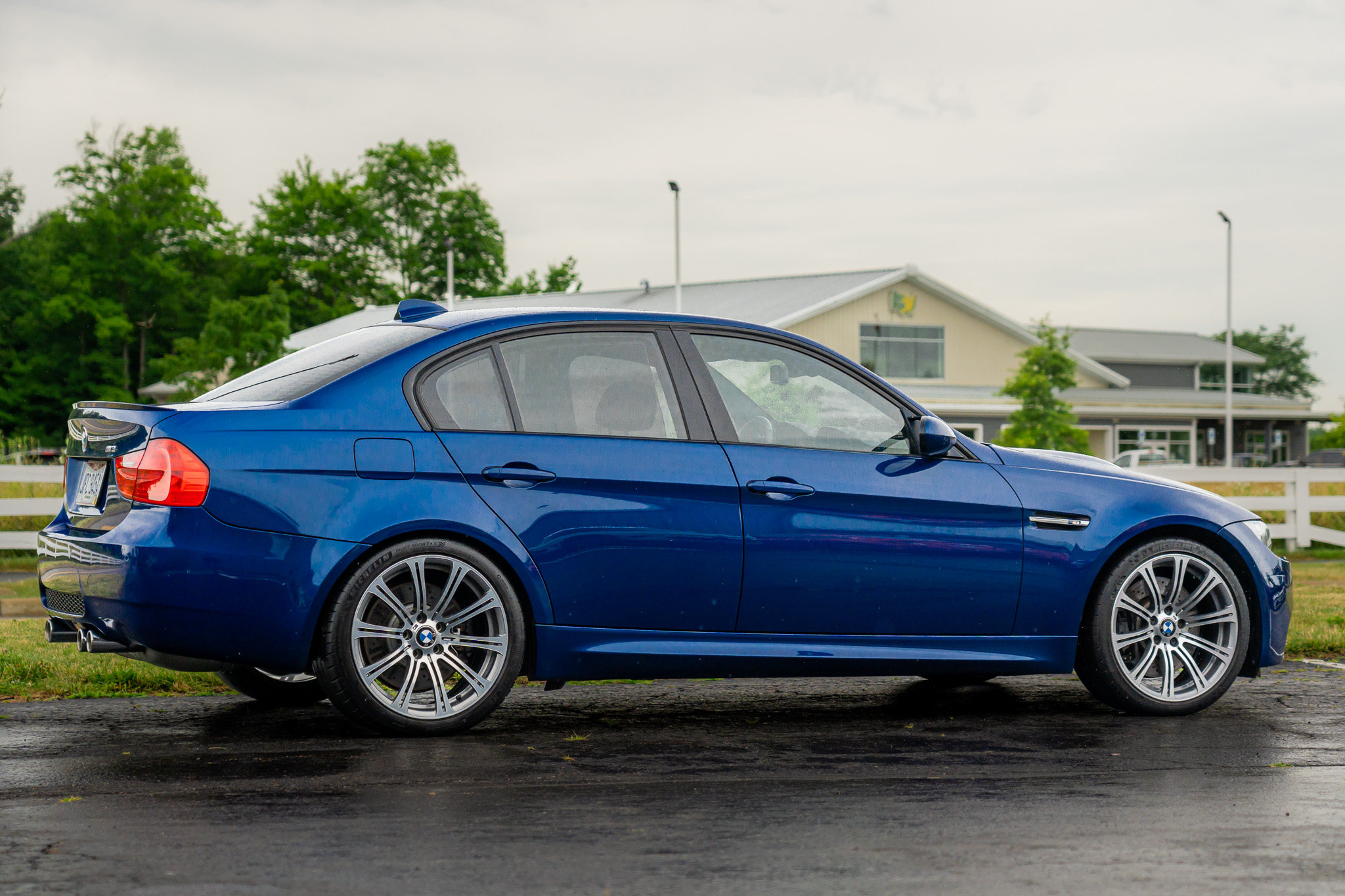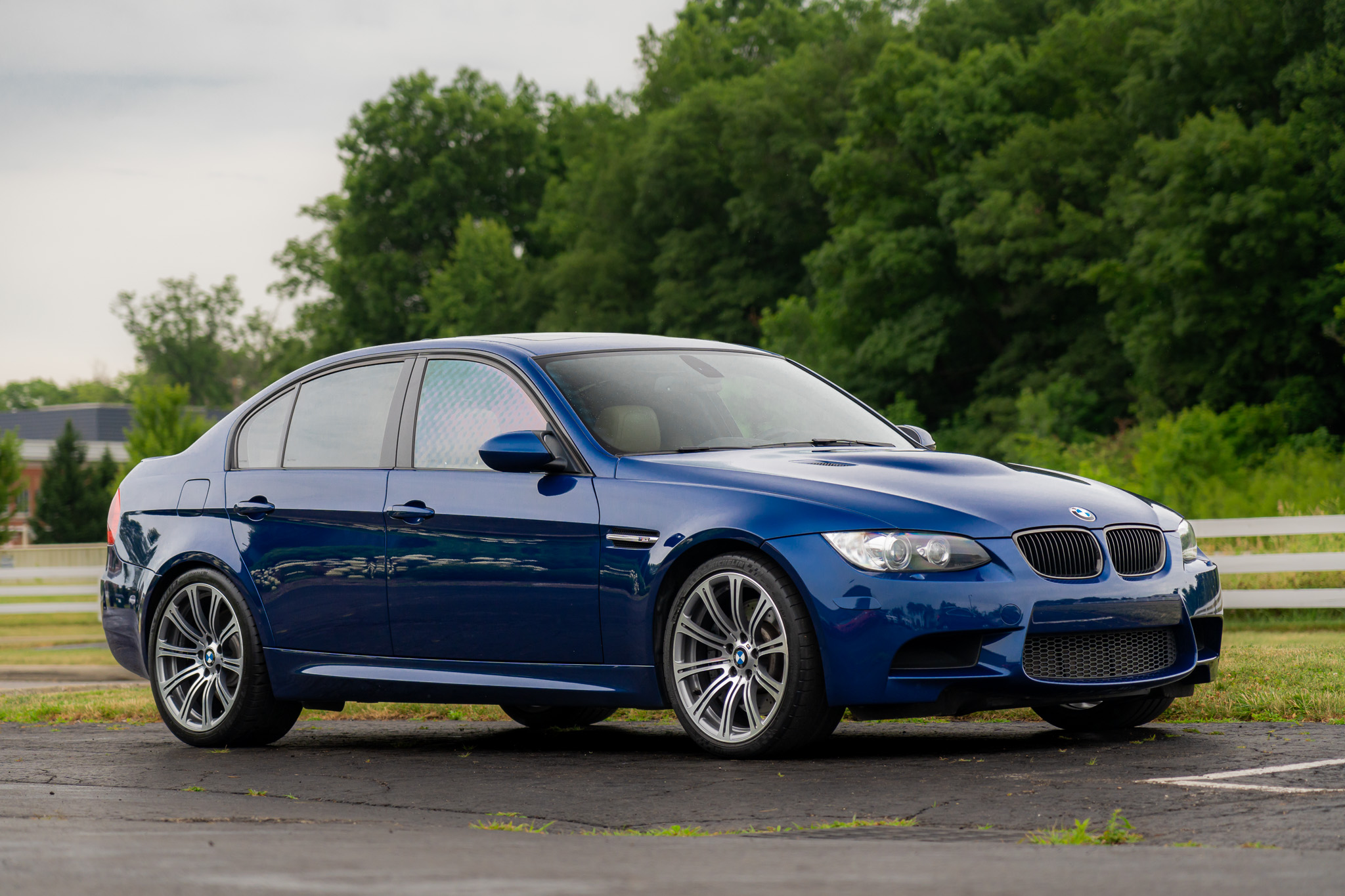 This 2010 BMW M3 sedan is powered by a 4.0-liter V8 paired with a seven-speed dual-clutch transmission and is finished in Le Mans Blue Metallic over Bamboo Beige Novillo leather. Equipment includes the Cold Weather Package, 19″ forged Style 220 wheels, a limited-slip differential, xenon headlights, parking sensors, heated front seats, dual-zone automatic climate control, navigation, and cruise control. The car spent time in Quebec, Ohio, and Pennsylvania before the seller acquired it in 2021. This E90 M3 has 88k miles and is offered at no reserve with service records and a clean Ohio title in the seller’s name. The car is finished in Le Mans Blue Metallic and features Shadowline trim and adaptive xenon headlights as well as rain-sensing wipers, a glass sunroof, a trunk lid spoiler, rear parking sensors, and quadruple exhaust outlets. The seller states that the front-left fender and bumper were damaged and subsequently replaced in 2022, and the incident is listed on the Carfax report as “minor damage.” An insurance estimate for the repairs can be viewed in the image gallery below, which also contains close-up photos of exterior blemishes. Forged 19″ Style 220 wheels wear 245/35 front and 265/35 rear Michelin Pilot Sport 4S tires, the rears of which were replaced in May 2022. The car features Dynamic Stability Control (DSC). Braking is handled by four-wheel vented and cross-drilled discs measuring 14.2″ and 13.8″ front and rear, respectively. The heated power-adjustable front sport seats are upholstered in Bamboo Beige Novillo leather, and Carbon Structure Leather trim accents the dashboard and doors. Amenities include a CD stereo, a power rear sunshade, dual-zone automatic climate control, navigation, M3-branded floor mats, and cruise control. The multi-function leather-wrapped steering wheel features paddle shifters along with tri-color stitching and frames an M-branded tachometer, a 200-mph speedometer, a central information display, and gauges for oil temperature and fuel level. The digital odometer indicates 88k miles, approximately 16k of which were added under current ownership. The steering wheel trim was replaced in November 2023. The 4.0-liter S65 V8 features double-VANOS variable valve timing and was factory rated at 414 horsepower and 295 lb-ft of torque. Upgraded throttle actuators were installed under current ownership along with replacement of the battery and an oil change in late 2023. Repairs to the DM-TL pump wiring were carried out in May 2024. Power is sent to the rear wheels through a seven-speed M-DCT dual-clutch transmission and a Variable M Differential Lock. Additional photos of the underside are available in the gallery below. The Carfax report shows the aforementioned damage entry and lists registration history in Quebec, Ohio, and Pennsylvania.