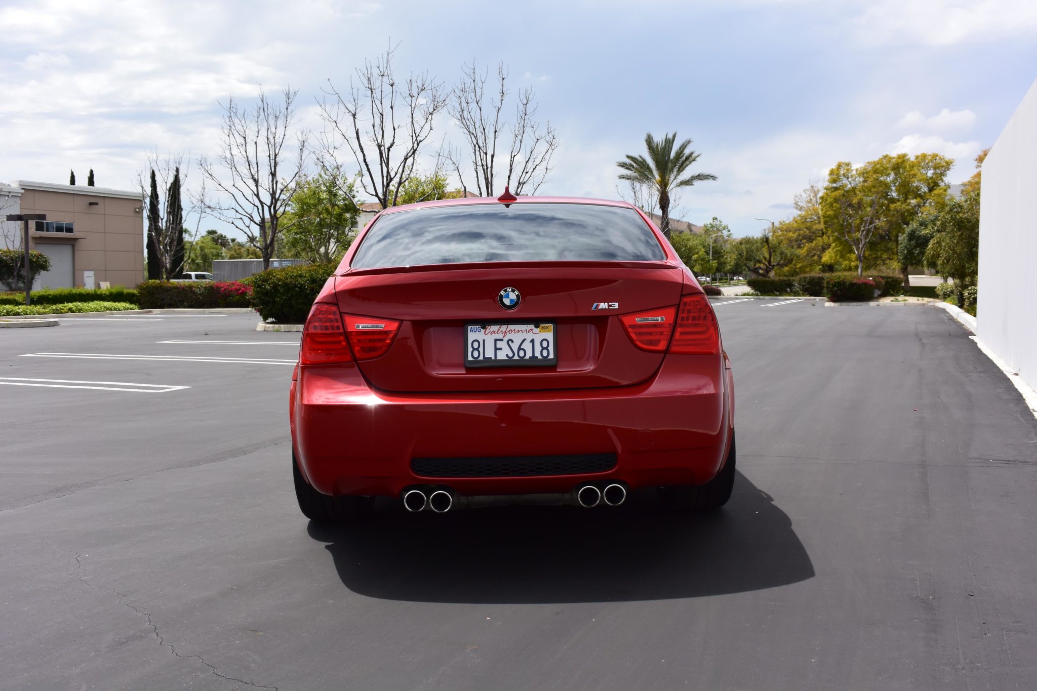 This 2010 BMW M3 Sedan was originally delivered to Autobahn Motorcars of Fort Worth and remained registered in Texas before being acquired by the seller in California in 2019. Now showing 25k miles, the car is powered by a 4.0-liter S65 V8 paired with a seven-speed dual-clutch transmission and is finished in Melbourne Red Metallic over a black leather interior. Paint protection film and ceramic window tint have been applied, while factory equipment includes electronic damping control, an Active-M differential, and adaptive xenon headlights. This E90 M3 is now offered for sale with an owner’s manual, factory booklets, a window sticker, service records, a clean Carfax report, and a clean California title in the seller’s name. The exterior is finished in Melbourne Red Metallic (A75) with Shadowline trim and features M3-specific bodywork, including widened fender arches. Ceramic tint has been applied to the windows, and paint protection film covers the front bumper, hood, headlights, fenders, and rocker panels. Scratches on the driver-side rear door and quarter panel were repaired and refinished in 2011. Paint chips are pointed out by the seller in the image gallery below. Factory 18″ Style 219M wheels are finished in Ferric Gray and wear Michelin Pilot Sport tires that show date codes from 2009. The interior is upholstered in Black Novillo leather with rubber mats lining the footwells and brushed aluminum trim on the dash and door panels. The car was optioned without a navigation system and came from the factory with a sunroof, power seats with adjustable lumbar, and a premium audio system, the latter of which has been upgraded with speakers and subwoofers from Bavarian Soundwerks. The seller notes coding changes for convenience features and states that the M-Dynamic Mode has been retrofitted and that the transmission tune has also been coded to European-spec. A 200-mph speedometer and a tachometer with an 8,400-rpm redline sit behind a leather-wrapped steering wheel with paddle shifters. Over 25k miles are shown on the digital odometer, approximately 5k of which have been added by the seller. The 4.o-liter S65 V8 produced 414 horsepower at 8,300 rpm and 295 lb-ft of torque at 3,900 rpm when new, which is sent to the rear wheels through a seven-speed dual-clutch transmission. A service spreadsheet is provided in the image gallery, and highlights include replacement of the vacuum pump and battery in 2018 as well as an oil change in December 2019. A recall for the positive battery terminal was reportedly addressed in September 2019. Additional photos of the underside are also provided in the image gallery. The original window sticker shows factory options, EPA-rated fuel economy, and a total retail price of $64,800. The April 2020 Carfax report lists no accidents or other damage and displays registration in Texas and California through its most recent entry in September 2019.