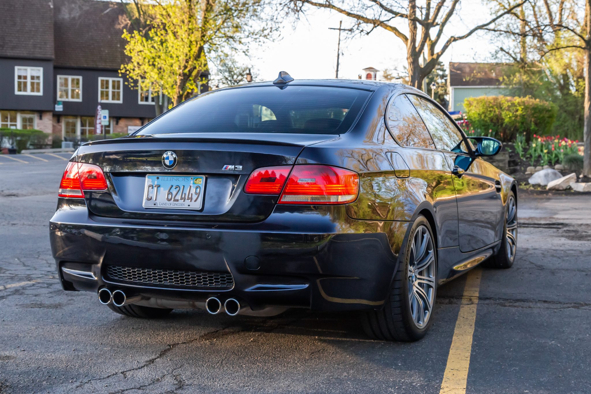 This 2010 BMW M3 coupe is powered by a 4.0-liter V8 paired with a six-speed manual transmission and is finished in Jerez Black Metallic over black Novillo leather. Equipment includes the Cold Weather and Technology packages as well as 19″ Style 220 wheels, a limited-slip differential, a sunroof, Electronic Damping Control, heated front sport seats, dual-zone automatic climate control, Anthracite Sycamore Wood trim, and iDrive with navigation. The seller acquired the car in May 2021 and has since added approximately 2k of the under 34k indicated miles. This E92 M3 is now offered with the owner’s manual, service records, a clean Carfax report, and a clean Illinois title in the seller’s name. The car is finished in Jerez Black Metallic and features Shadowline trim and adaptive xenon headlights with washers as well as rain-sensing wipers, a glass sunroof, a trunk lid spoiler, rear parking sensors, and quadruple exhaust outlets. The seller notes imperfections in the finish as well as scrapes on the underside of the front air dam. The 19″ Style 220 wheels are mounted with 245/35 front and 265/35 rear Continental ExtremeContact Sport tires installed in July 2021 at 32k miles. Multiple wheels have blemishes. The car features Electronic Damping Control (EDC) adaptive suspension as well as Dynamic Stability Control (DSC). Braking is handled by four-wheel vented and cross-drilled discs measuring 14.2″ and 13.8″ front and rear, respectively. The heated power-adjustable front sport seats are upholstered in black Novillo leather, and Anthracite Sycamore Wood trim accents the dashboard and doors. Amenities include iDrive with navigation as well as Comfort Access keyless entry, a CD stereo, a power rear window sunshade, and dual-zone automatic climate control. The multi-function leather-wrapped steering wheel features tri-color stitching and frames an M-branded tachometer, a 200-mph speedometer, a central information display, and gauges for oil temperature and fuel level. The digital odometer indicates under 34k miles, approximately 2k of which were added under current ownership. The 4.0-liter S65 V8 features double-VANOS variable valve timing and was factory rated at 414 horsepower and 295 lb-ft of torque. Power is sent to the rear wheels through a six-speed manual transmission and a Variable M Differential Lock. Blackstone Laboratories oil reports are included in the sale along with service records and owner’s manuals. The Carfax report is free of accidents or other reported damage.