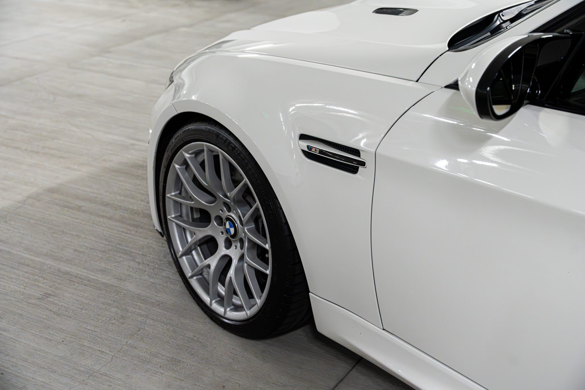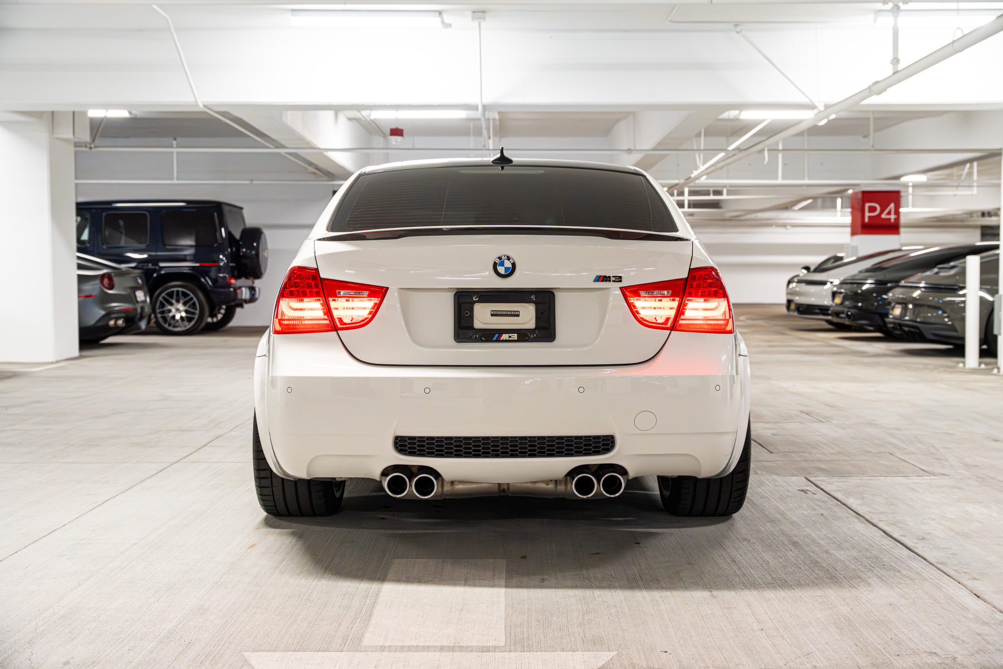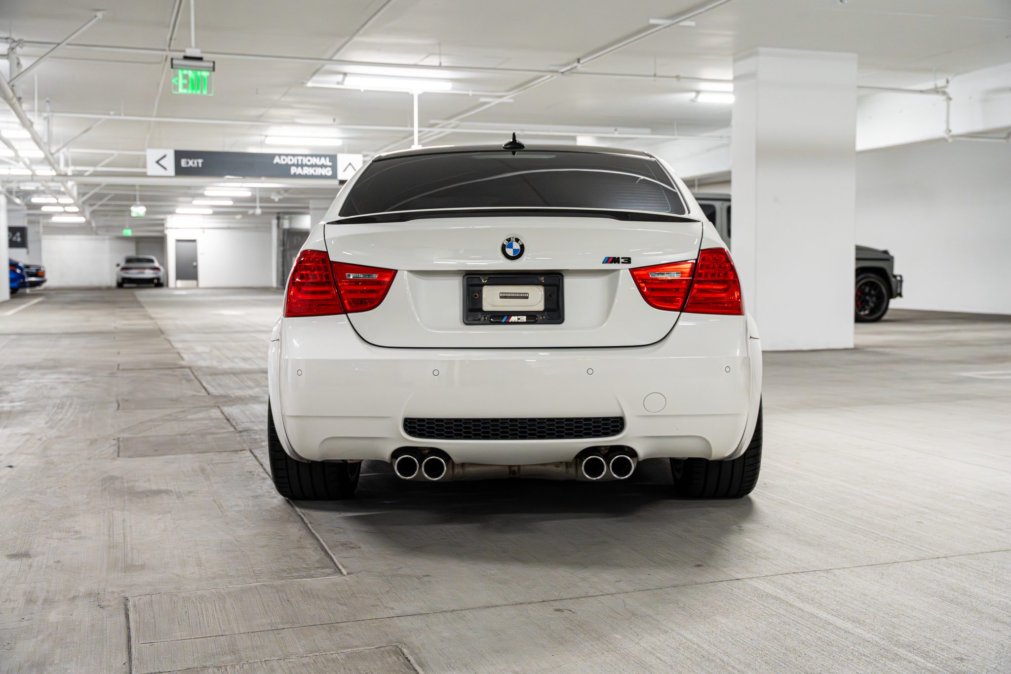 This 2011 BMW M3 sedan is powered by a 4.0-liter V8 paired with a six-speed manual transmission and is finished in Alpine White over black Novillo leather. It is equipped with the Competition, Convenience, and Premium 2 packages along with iND Distribution carbon-fiber roof, OSSdesigns headlights, ESS Tuning engine management software, and a BMW Performance steering wheel. Additional features include 19″ Style 359 wheels, iDrive with navigation, keyless entry, dual-zone automatic climate control, and carbon-fiber interior trim. The car was acquired by the selling dealer on BaT in October 2024 and now has 51k miles. This E90 M3 is now offered in California with a window sticker, an owner’s manual, spare parts, a clean Carfax report, and a clean Louisiana title. The car is finished in Alpine White (300), and exterior modifications include a BMW Performance carbon-fiber rear spoiler and front splitters along with gloss-black kidney grilles, OSSdesigns headlights, and tinted windows. An iND Distribution carbon-fiber roof has been installed along with iND hood vents and body-color side markers. Rock chips are present on the front end, and there are three holes in the lower front bumper cover from a previously installed lip spoiler. The 19″ Style 359 wheels are mounted with Michelin Pilot Sport 4S tires. Competition Package equipment includes a lowered ride height compared to the standard M3 as well as retuned Electronic Damping Control (EDC) and Dynamic Stability Control (DSC). Braking is handled by four-wheel vented and cross-drilled discs measuring 14.2″ and 13.8″ front and rear, respectively. The power-adjustable front sport seats are upholstered in Black Novillo leather. Carbon-fiber trim accents the interior, and amenities include iDrive with navigation, Comfort Access keyless entry, BMW Assist, a CD stereo, dual-zone automatic climate control, and cruise control. The carbon-fiber trim to the left of the steering wheel is cracked. The flat-bottom BMW Performance steering wheel features a centering stripe and frames an M-branded tachometer, a 200-mph speedometer, a central information display, and gauges for oil temperature and fuel level. The digital odometer indicates 51k miles, a handful of which were added under current ownership. The 4.0-liter S65 V8 features double-VANOS variable valve timing and was factory rated at 414 horsepower and 295 lb-ft of torque. Power is sent to the rear wheels through a six-speed manual transmission and a Variable M Differential Lock. ESS Tuning engine management software is said to have been installed under previous ownership. The intake air filter cover is missing. The window sticker lists initial delivery to Peake BMW of Kenner, Louisiana, along with factory equipment, colors, options, and a total suggested retail price of $68,700. The Carfax report is free of accidents or other reported damage.
