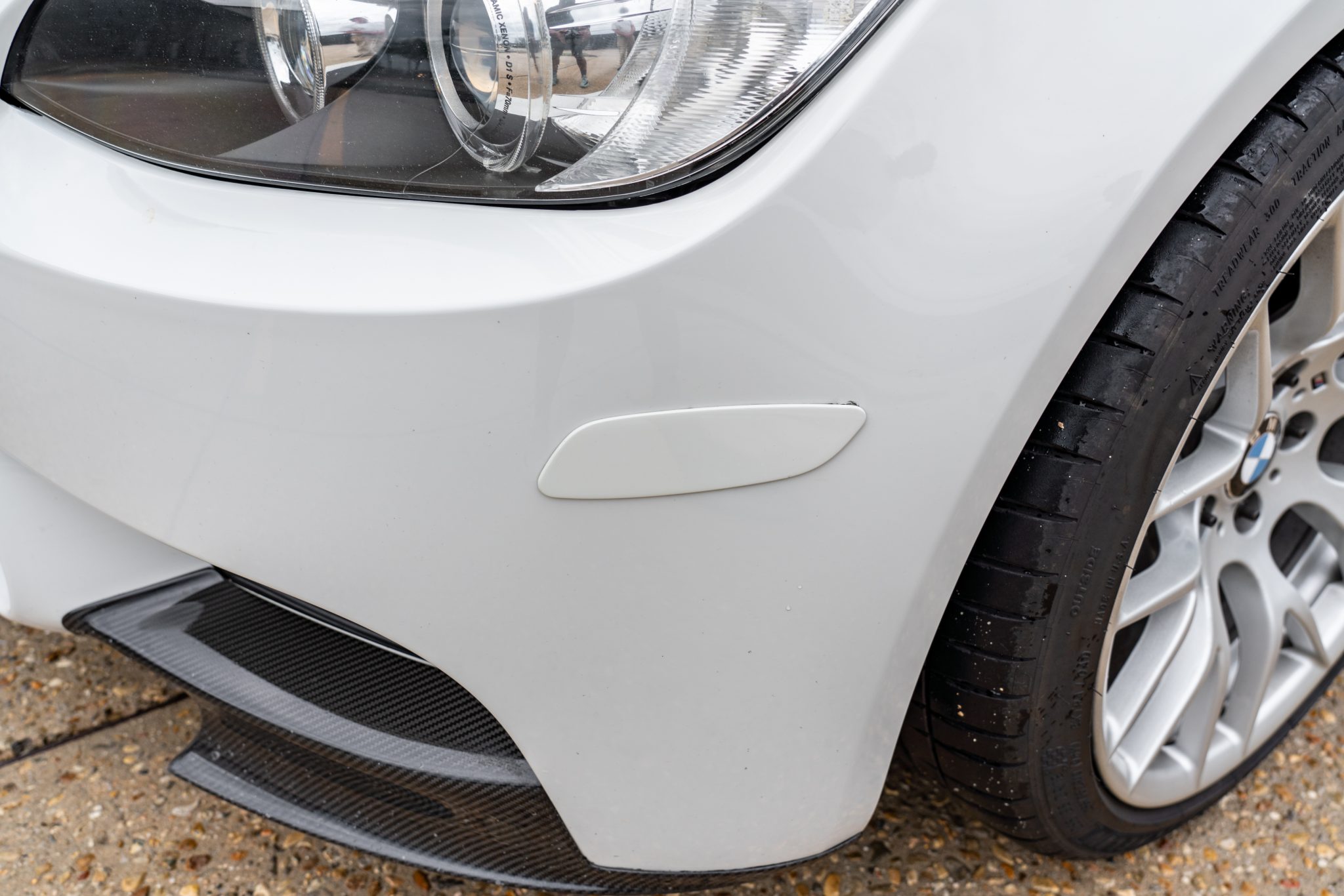 This 2011 BMW M3 sedan is equipped with the Competition Package and spent time in North Carolina and Louisiana before the seller’s December 2017 acquisition, and it now has 42k miles. The car is powered by a 4.0-liter V8 paired with a six-speed manual transmission and is finished in Alpine White III over black leather and speed cloth. Equipment includes 19″ Style 359 wheels, a limited-slip differential, a slick top, xenon headlights, parking sensors, dual-zone automatic climate control, and cruise control. Modifications include a Macht Schnell air-intake system, wheel spacers, and LED headlight halo rings. This E90 M3 is now offered with service records, a clean Carfax report, and a clean Louisiana title in the seller’s name. The car is finished in Alpine White III and features Shadowline trim and adaptive xenon headlights as well as rain-sensing wipers, a trunk lid spoiler, rear parking sensors, and quadruple exhaust outlets. Aftermarket LED headlight halo rings have been added, and noted exterior imperfections include stone chips on the carbon-fiber front splitters as well as blemishes on the rear bumper. The 19″ Style 359 wheels are mounted with 255/35 front and 275/35 rear Michelin Pilot Sport 4S tires reportedly installed in April 2022. The seller states that 5mm front and 12mm rear wheel spacers are fitted, and Competition Package equipment includes a lowered ride height compared to the standard M3 as well as retuned Electronic Damping Control (EDC) and Dynamic Stability Control (DSC). Braking is handled by four-wheel vented and cross-drilled discs measuring 14.2″ and 13.8″ front and rear, respectively. Work completed in September 2021 reportedly included replacing the front brake rotors, front and rear brake pads, and wheel speed sensors. The front manually-adjustable sport seats are upholstered in black leather with speed cloth centers while Titanium Shadow trim accents the dashboard and doors. Amenities include a CD stereo, a power rear sunshade, dual-zone automatic climate control, and cruise control. Records indicate that left-front airbag and blower motor wiring recalls were performed in September 2018. The seller notes scratches on the right-rear seat bottom. The multi-function leather-wrapped steering wheel features tri-color stitching and frames an M-branded tachometer, a 200-mph speedometer, a central information display, and gauges for oil temperature and fuel level. The digital odometer indicates 42k miles, approximately 9k of which were added under current ownership. The 4.0-liter S65 V8 features double-VANOS variable valve timing and was factory rated at 414 horsepower and 295 lb-ft of torque. A Macht Schnell air-intake system is fitted, and records indicate that a positive battery cable recall was performed in September 2019. Power is sent to the rear wheels through a six-speed manual transmission and a Variable M Differential Lock. The Carfax report shows no accidents or other damage and lists registration history in North Carolina and Louisiana.