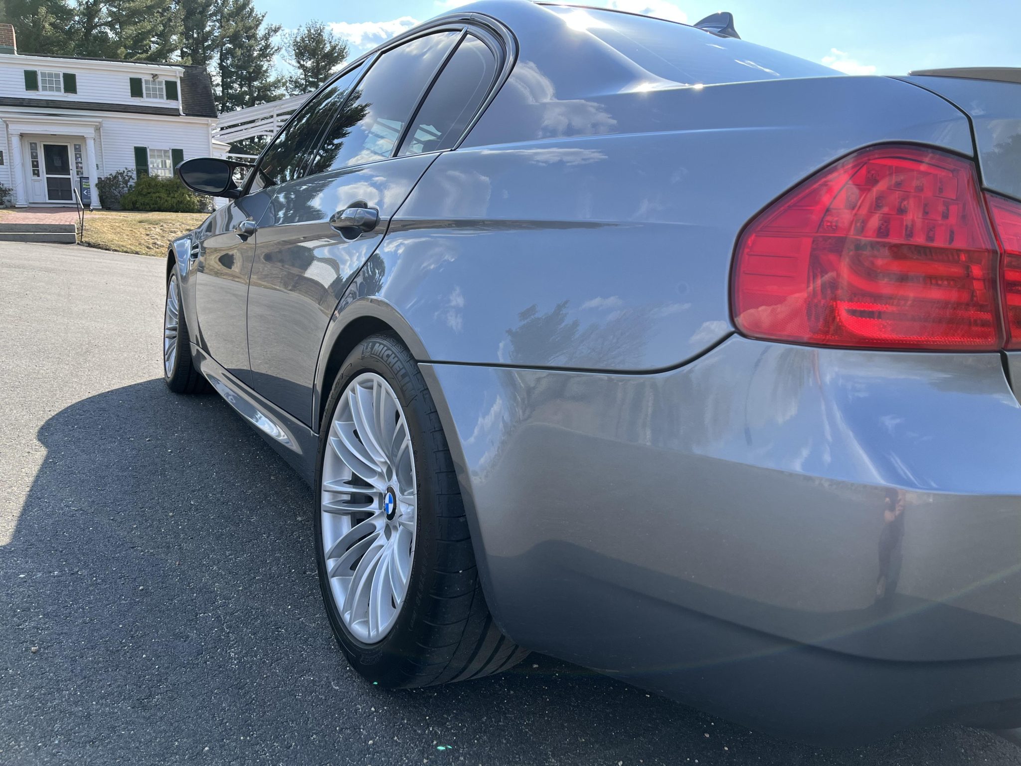 This 2011 BMW M3 sedan is powered by a 4.0-liter V8 paired with a six-speed manual transmission and is finished in Space Grey Metallic over black Novillo leather. Equipment includes the Premium Package, 18″ Style 219 wheels, a limited-slip differential, adaptive xenon headlights, heated front seats, dual-zone automatic climate control, and cruise control. The car was acquired by the seller in 2020, and service performed under current ownership has included a replacement oil pan gasket, rod bearings, oil suction tube seals, engine mounts, and differential pinion and axle seals. This E90 M3 has 36k miles and is now offered with service records, a clean Carfax report, and a clean Massachusetts title in the seller’s name. The car is finished in Space Grey Metallic and features Shadowline trim and adaptive xenon headlights as well as rain-sensing wipers, a glass sunroof, a trunk lid spoiler, tinted windows, and quadruple exhaust outlets. Photos showing a chip on the windshield, cracks on the front spoiler, finish imperfections, and paint meter readings are included in the gallery. The 18″ Style 219 wheels are wrapped in Michelin Pilot Sport tires measuring 245/40 up front and 265/40 out back. The car features Dynamic Stability Control (DSC), and braking is handled by four-wheel vented and cross-drilled discs measuring 14.2″ and 13.8″ front and rear, respectively. The heated power-adjustable sport seats are upholstered in black Novillo leather, and Titanium Shadow trim accents the dashboard, center console, and doors. Amenities include a CD stereo, dual-zone automatic climate control, and cruise control. Wear is visible on the driver seat’s bolster. The multi-function leather-wrapped steering wheel features tri-color stitching and frames an M-branded tachometer, a 200-mph speedometer, a central information display, and gauges for coolant temperature and fuel level. The digital odometer indicates 36k miles, approximately 7k of which were added under current ownership. The 4.0-liter S65 V8 features double-VANOS variable valve timing and was factory rated at 414 horsepower and 295 lb-ft of torque. The rod bearings, oil pan gasket, oil suction tube seals, and engine mounts were replaced by EuroTech Motorsports of Natick, Massachusetts, in August 2020. Power is sent to the rear wheels through a six-speed manual transmission and a Variable M Differential Lock. Replacement pinion and axle seals were fitted in July 2021, and the differential fluid was changed at that time. The Carfax report is free of accidents or other damage and shows registration history in New Mexico, Colorado, California, and Massachusetts.