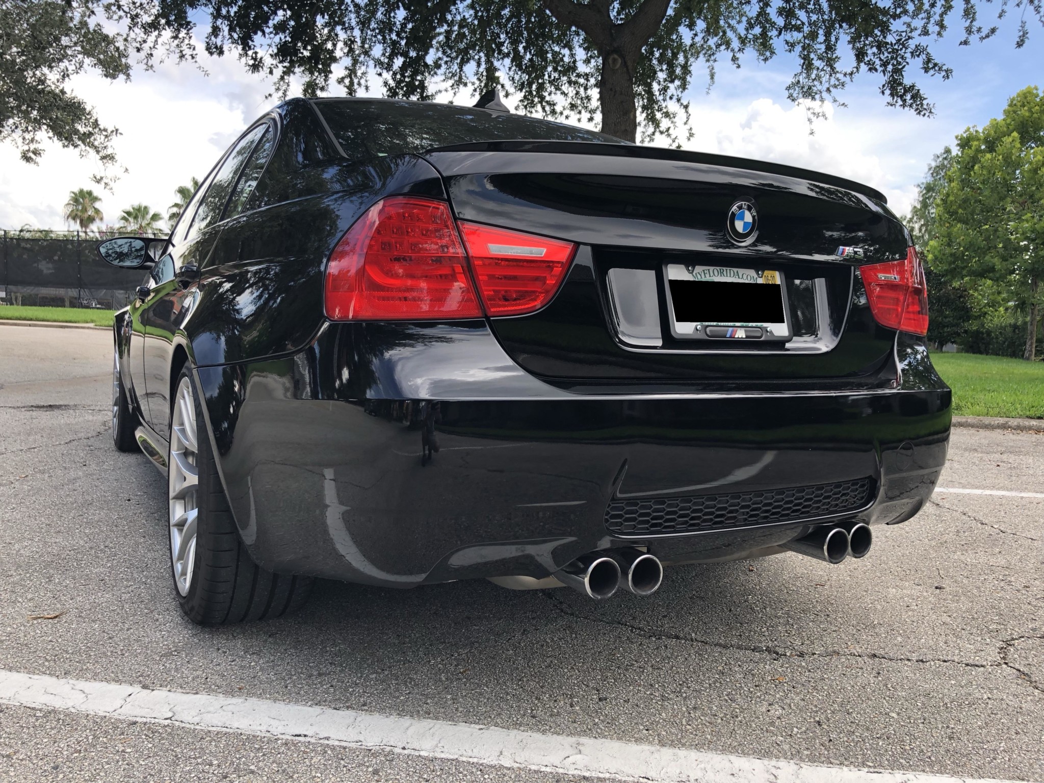 This 2011 BMW M3 sedan has the Competition Package and is finished in black on black. It was sold new at Grand Blanc Motorcars in Michigan, and the car was relocated to Florida upon the seller’s acquisition in 2016. Its 4.0-liter V8 is paired with a six-speed manual gearbox and a variable limited-slip differential. The factory Competition Package, offered only for the 2011 model year, lowers the suspension by 10 millimeters, adds 19″ wheels, and reprograms the electronic damping and stability control systems. Other factory equipment includes adaptive xenon headlights, a sunroof, and a navigation system, while BimmerWorld stainless-steel brake lines have been added. The seller reportedly changed the oil in February 2019 and has added 8k miles of the 28k shown on the odometer. This E90 M3 sedan is now offered with service records, a fitted BMW car cover, an accident-free Carfax report, and a clean Florida title in the seller’s name. The exterior is finished in Jet Black (668, Schwartz 2) and features a glass sunroof and a rear spoiler. The seller notes a ding on the rear bumper, a rock chip in the windshield, and other imperfections, close-up images of which can be viewed in the gallery below. The Carfax report shows no accidents or other damage and indicates that the windshield was replaced in 2014. The Competition Package (S7MAA) was a $2,500 factory option offered only for the 2011 model year, which lowered the suspension by 10 millimeters, added 19″ Style 359M wheels with greater offset for a wider track, and reprogrammed the electronic damping and stability control systems. This car’s Michelin Pilot Super Sport tires are sized 245/35 up front and 265/35 at the rear. The seller notes curb rash on the wheels, which can be seen up close in the gallery. The black leather (NCSW) interior features power-adjustable sport seats, dual-zone automatic climate control, navigation, and a hi-fi stereo with USB audio interface. The interior also includes a leather-wrapped M Sport steering wheel, carbon-fiber trim, and floor mats with the M3 logo. The odometer indicates just over 28k miles, approximately 8k of which the seller has added over three years. The 4.0-liter S65 V8 engine sends power to the rear wheels through a six-speed manual gearbox and a Variable M Differential Lock. Factory-rated output when new was 414 horsepower at 8,300 rpm and 295 lb-ft of torque at 3,900 rpm. An inspection performed in May 2019 found the following issues, which have not been addressed: A printout and screenshots of the inspection results are viewable in the gallery. A video showing the engine during a cold start can be viewed here. BimmerWorld insulated stainless-steel brake lines have been installed. The seller reportedly has performed three oil changes and flushed the transmission and differential fluids during the course of his ownership. The previous owner is said to have provided receipts for replacement of a coolant-temperature sensor and a window-lock switch. The Carfax report is free of accidents and shows three owners with registrations in Michigan, New Jersey, New York, Pennsylvania, and Florida. Two unaddressed recalls, further detailed in the full report presented below, involve the driver’s airbag and the blower motor. The video above shows the car accelerating and driving down the road.